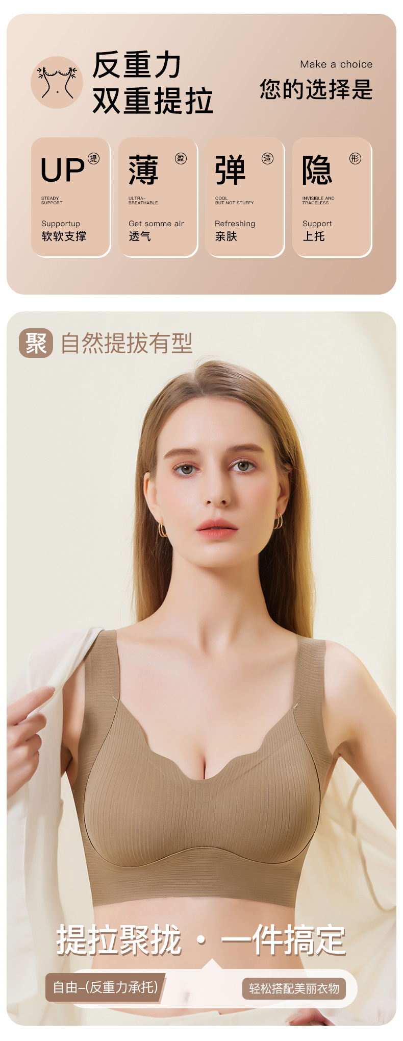 Traceless Push-up Small Bra Women's Beautiful Back Anti-surging Non-rimless Underwear Naked-good Litching Knitted Vest Cup스토어 가기