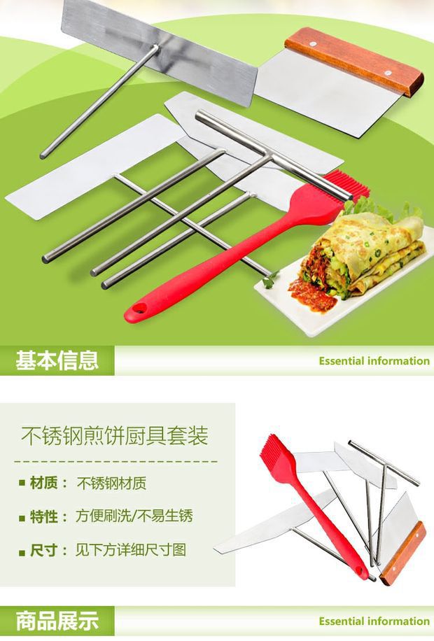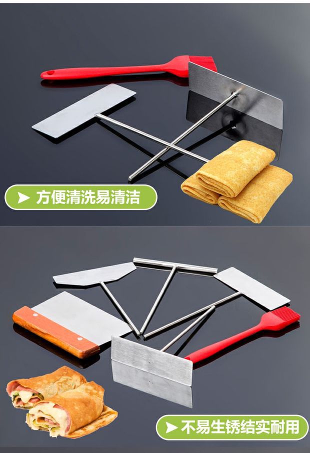 不锈钢煎饼耙子鏊子摊煎饼煎饼锅刮板煎铲油刷鸡蛋饼煎饼果子工具