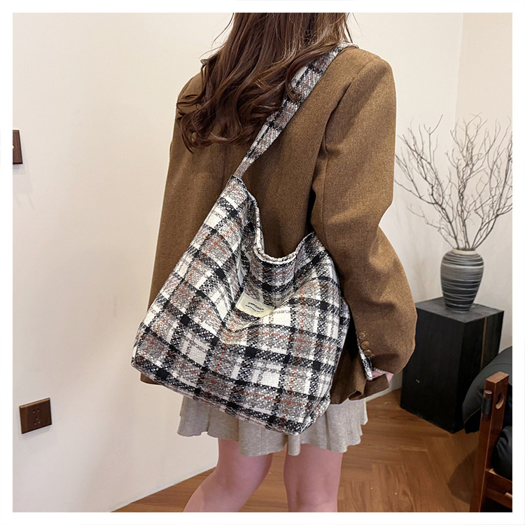 국경 간 대외 무역 인기있는 숄더백 여성 가방 가을과 겨울 올 매치 새로운 패션 도매 울 체크 무늬 메신저 가방스토어 가기