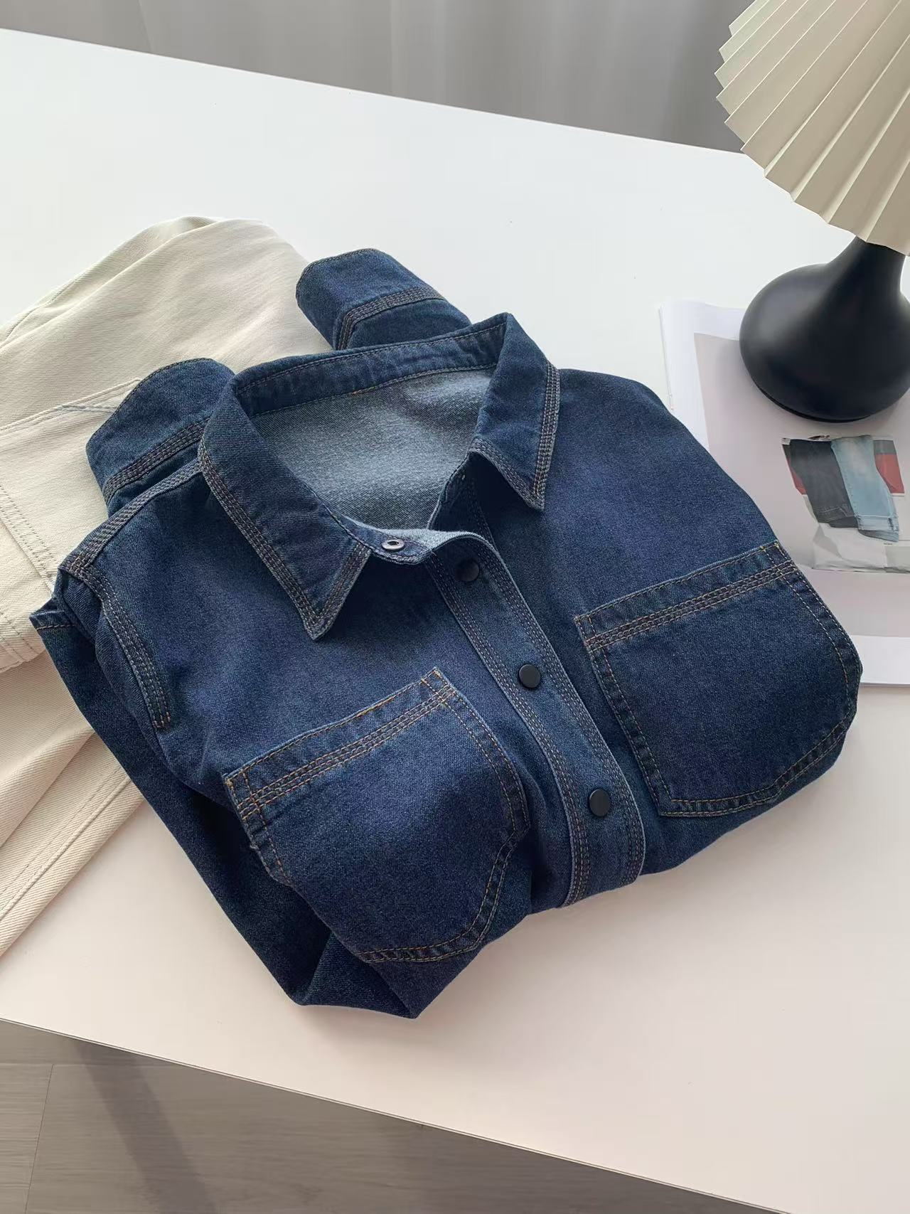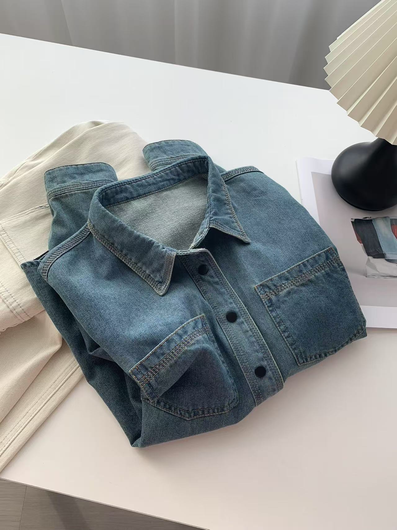 좋은 판매 ~ 한 팬 레트로 샌딩 데님 셔츠 여성용 긴 소매 2025 봄 새로운 한국 느슨한 디자인 탑스토어 가기