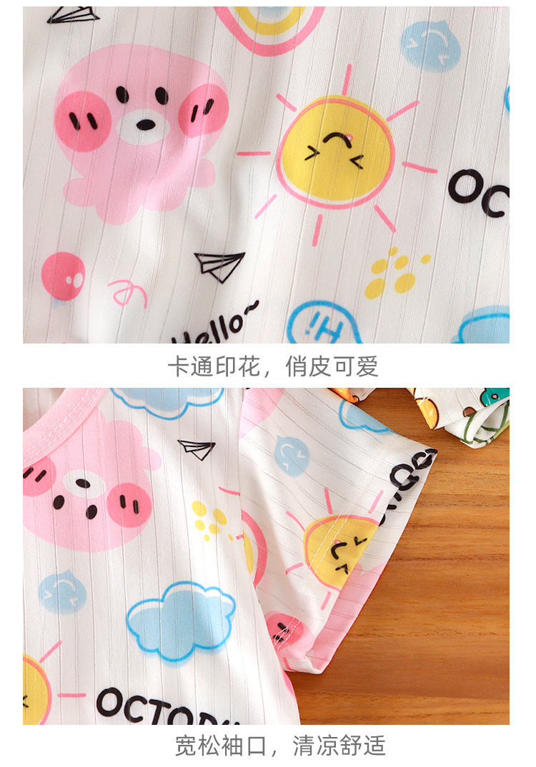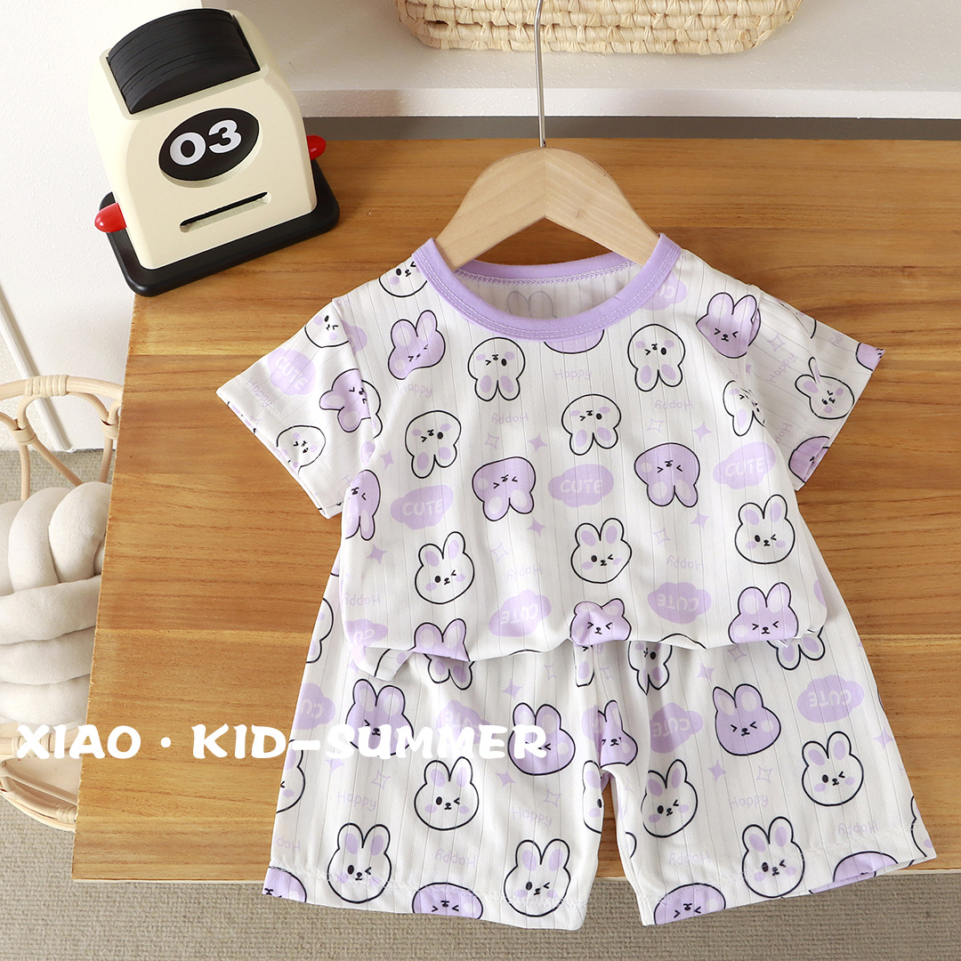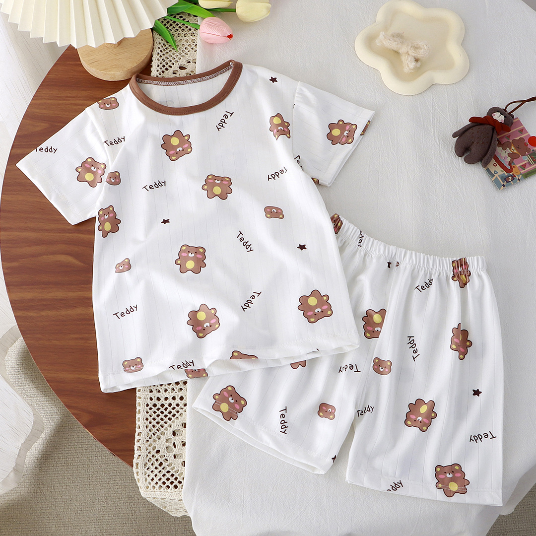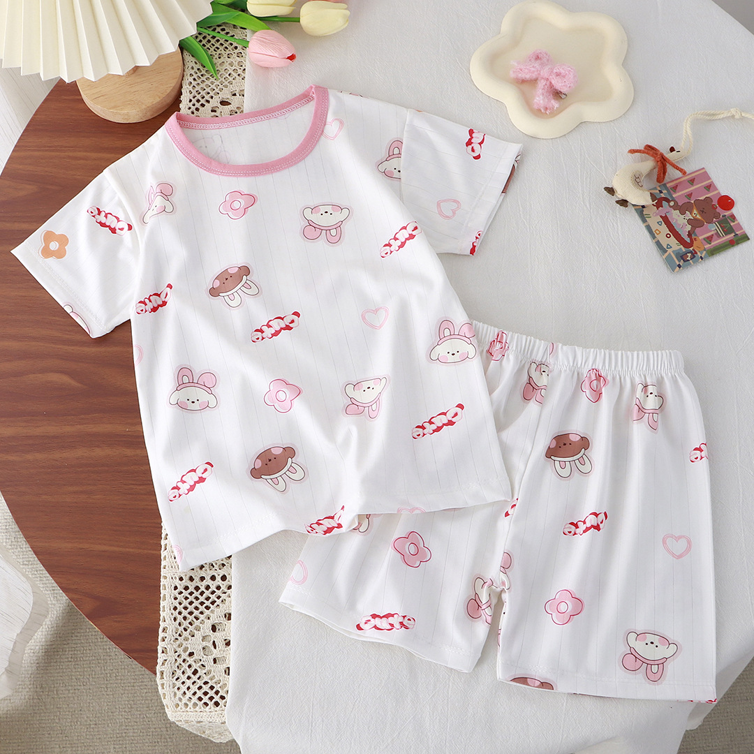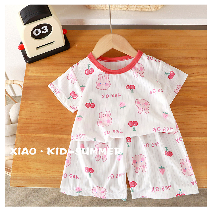 어린이 여름 반팔 세트 남성과 여성의 아기 에어컨 의류 잠옷 얇은 반팔 홈 의류 투피스 도매