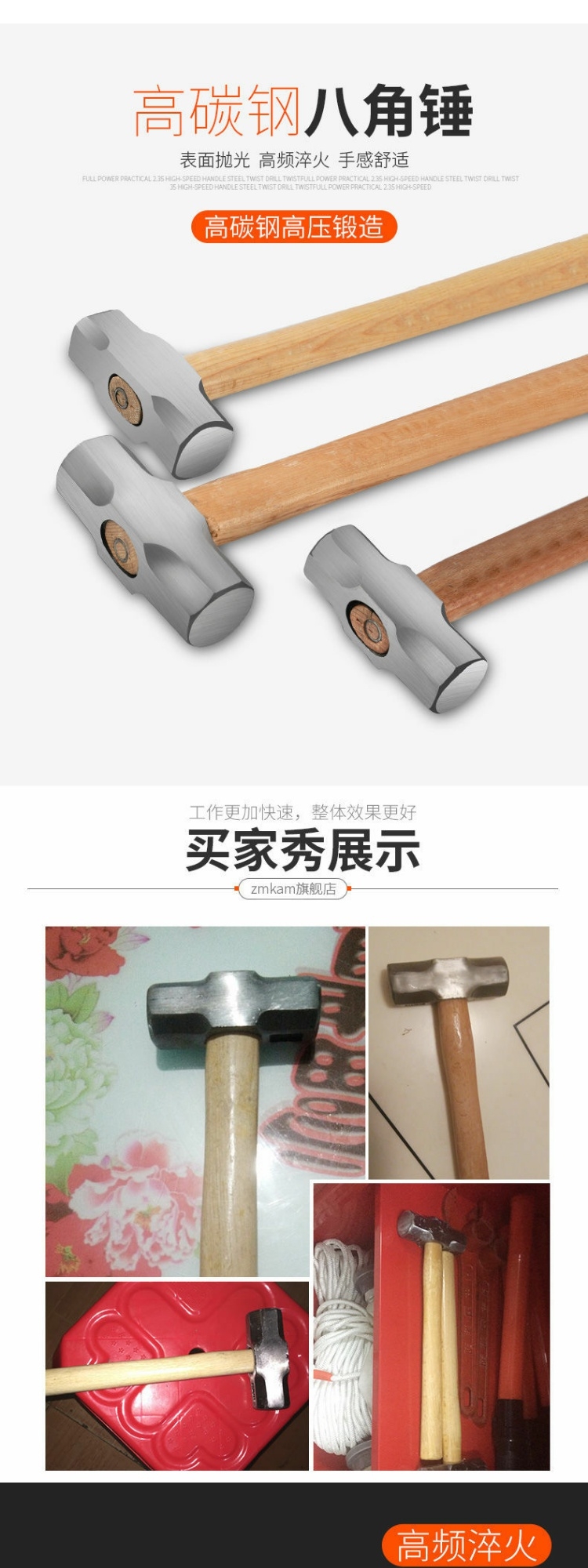 팔각형 해머 스퀘어 헤드 나무 손잡이 무거운 의무 벽 스매싱 벽 철거 건물 해머 도구 다기능 마스터 워크 통합 해머스토어 가기