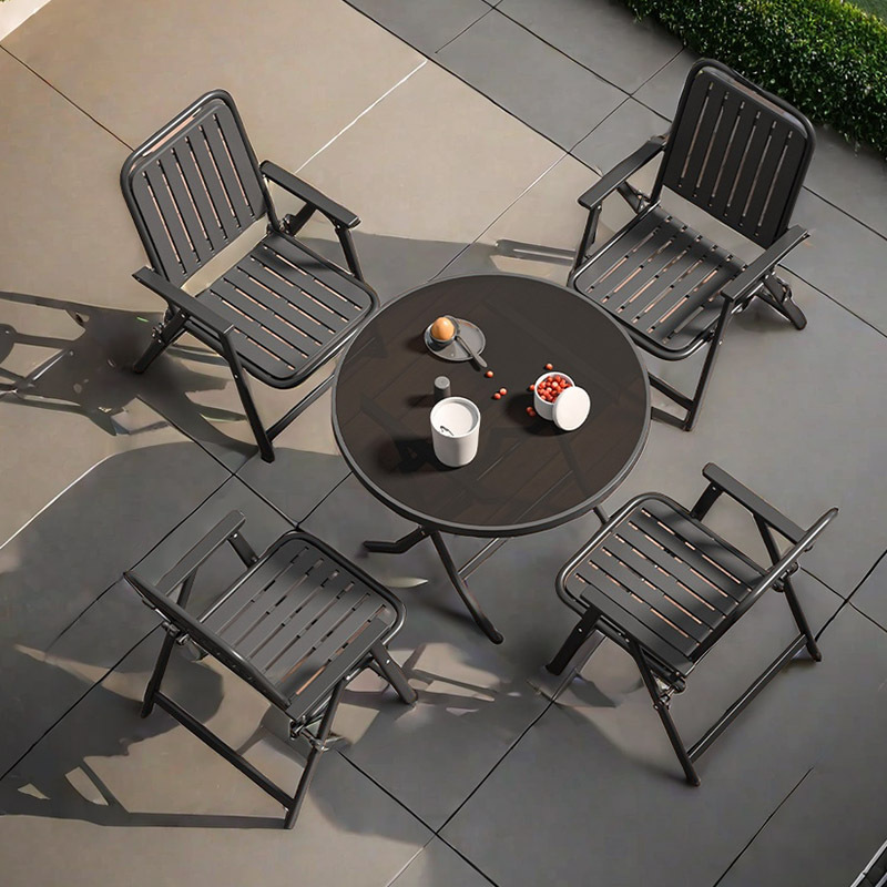 • 클래식 블랙 - 4개의 수직 패턴 접이식 의자 + 80CM 검정색 접이식 원형 테이블 두꺼운 플랫 튜브