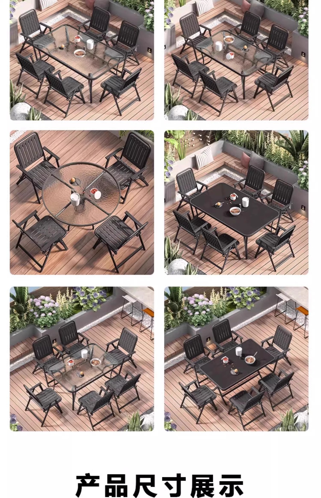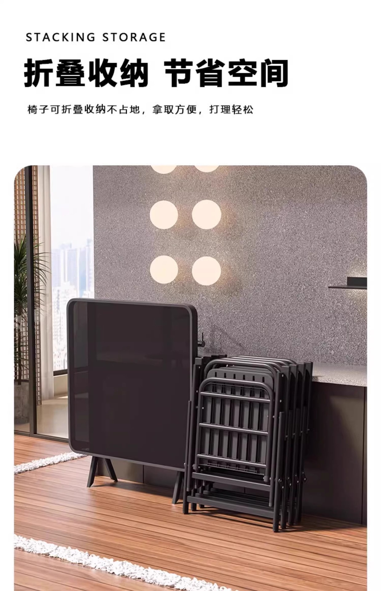 • 클래식 블랙-6 수직 패턴 접이식 의자 + 120*80CM 조립 긴 테이블 두꺼운 플랫 튜브