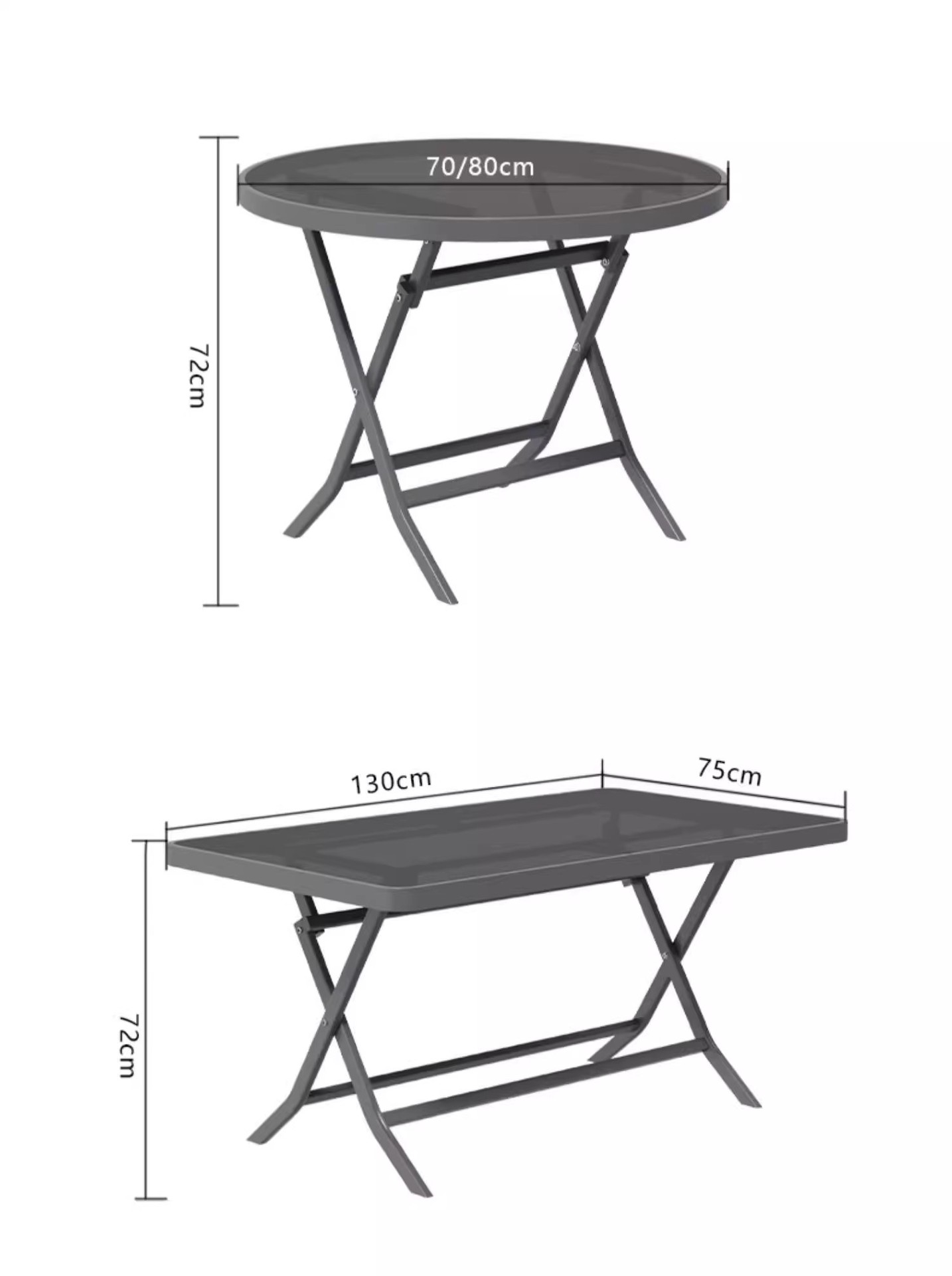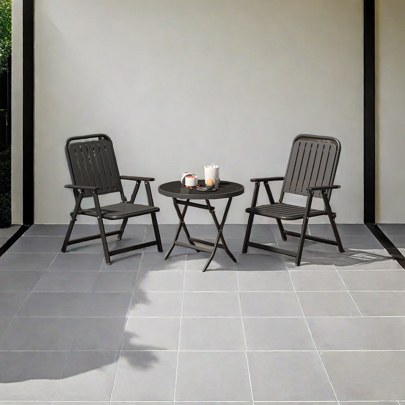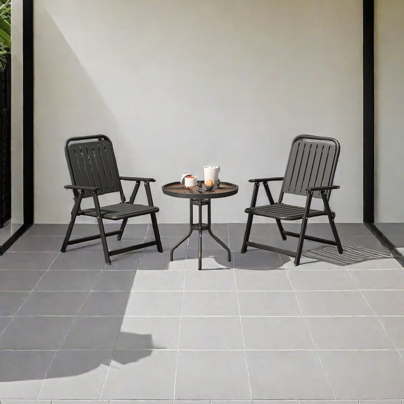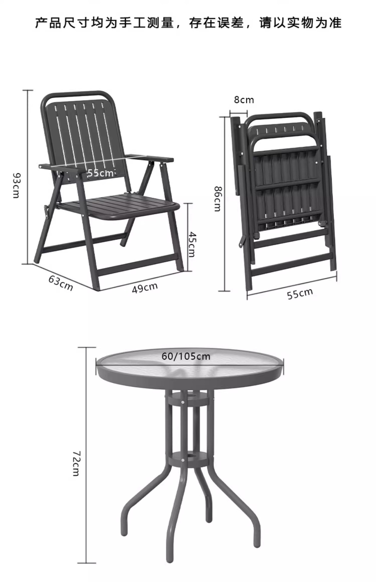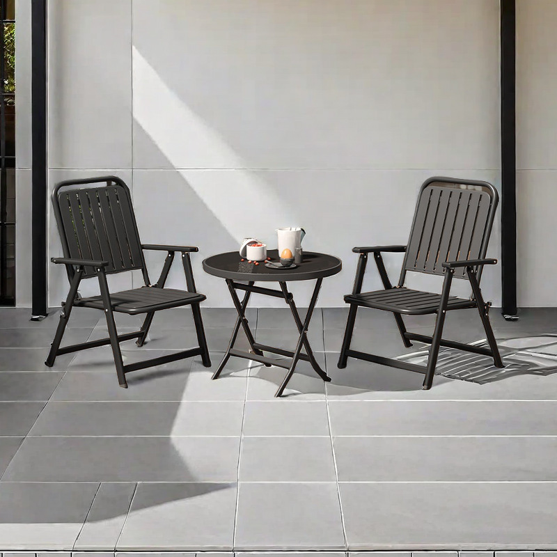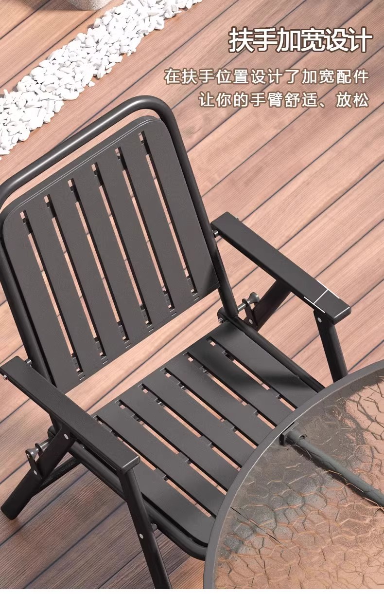 • 클래식 블랙-2 수직 패턴 접이식 의자 + 80CM 접이식 원형 테이블 두꺼운 플랫 튜브