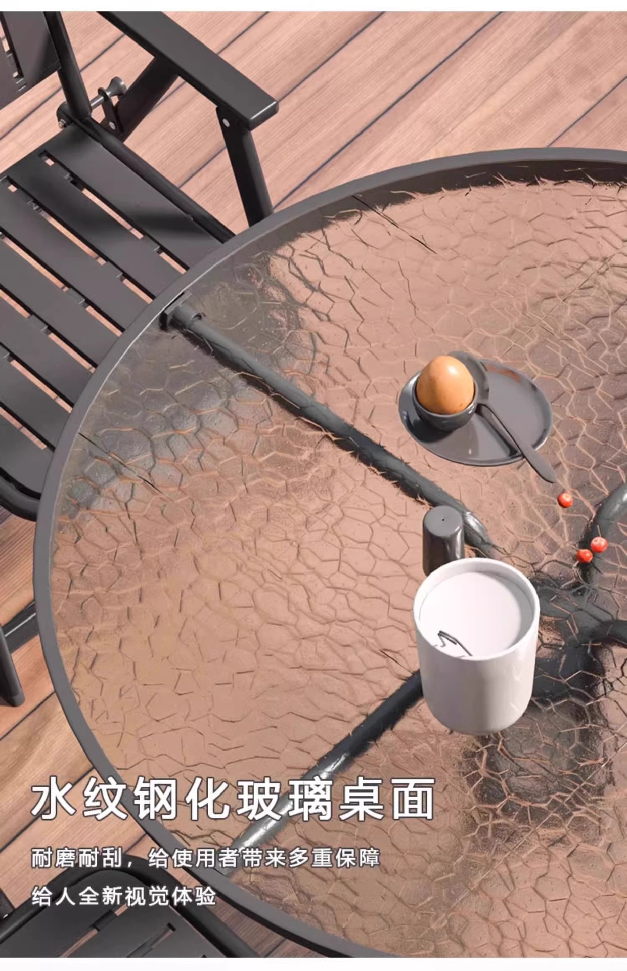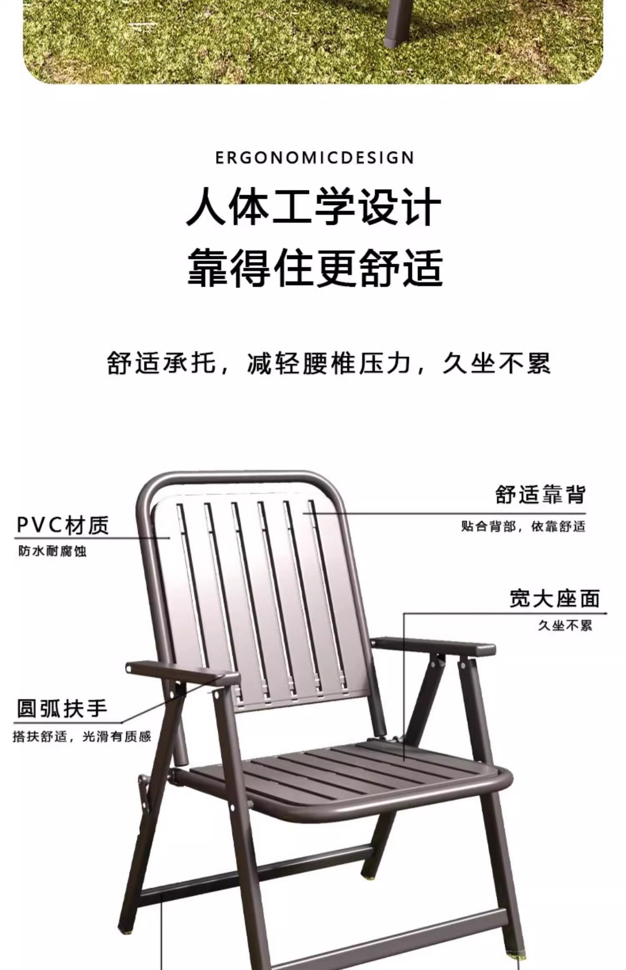 • 브라운-2 수직 패턴 접이식 의자 + 60CM 물 패턴 조립 원형 테이블 두꺼운 플랫 튜브