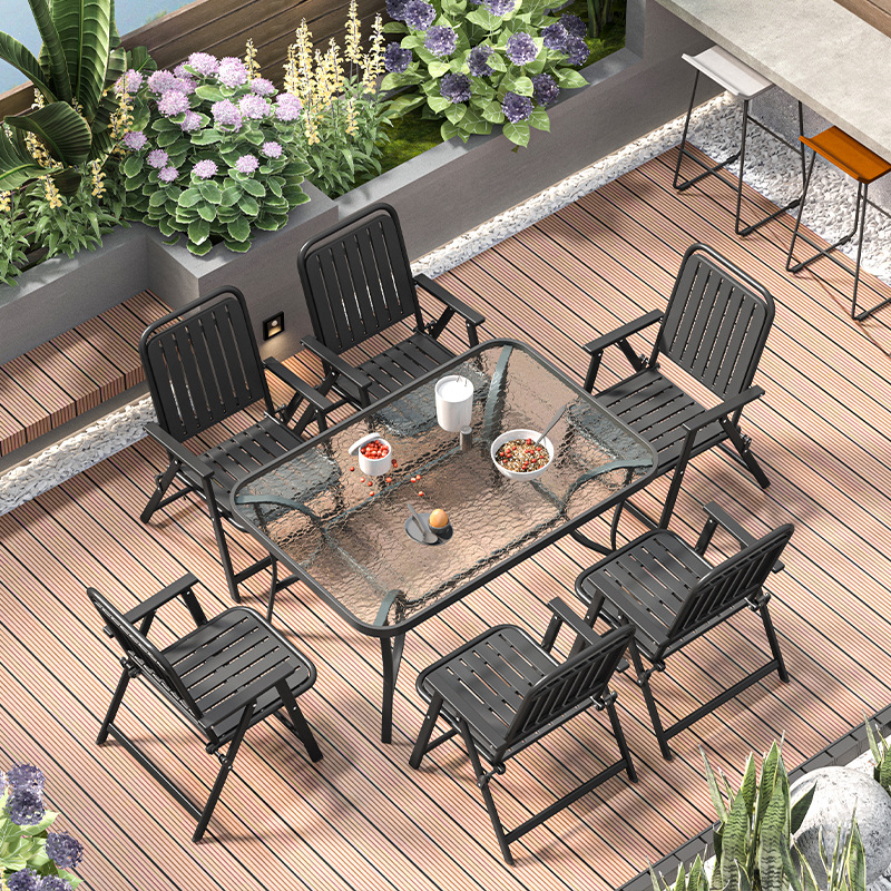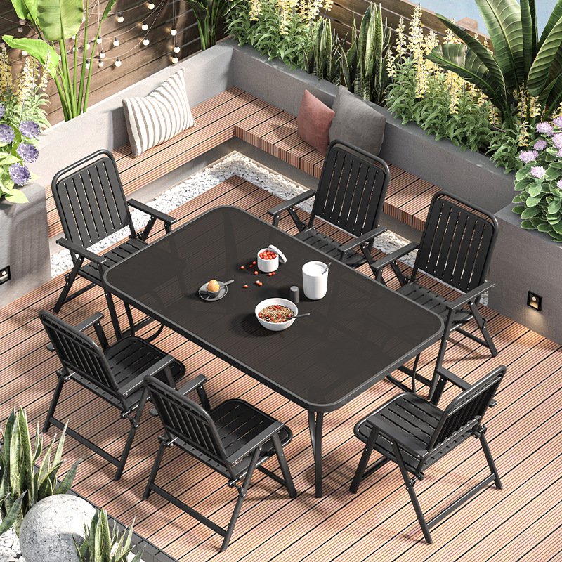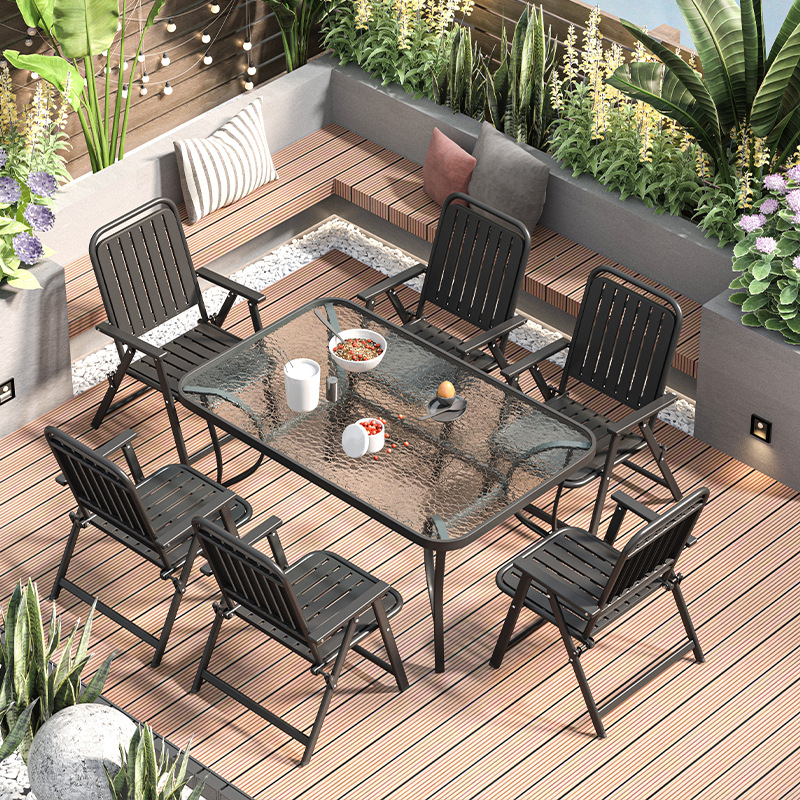 • 클래식 블랙-6 수직 패턴 접이식 의자 + 130*75CM 조립 긴 테이블 두꺼운 플랫 튜브