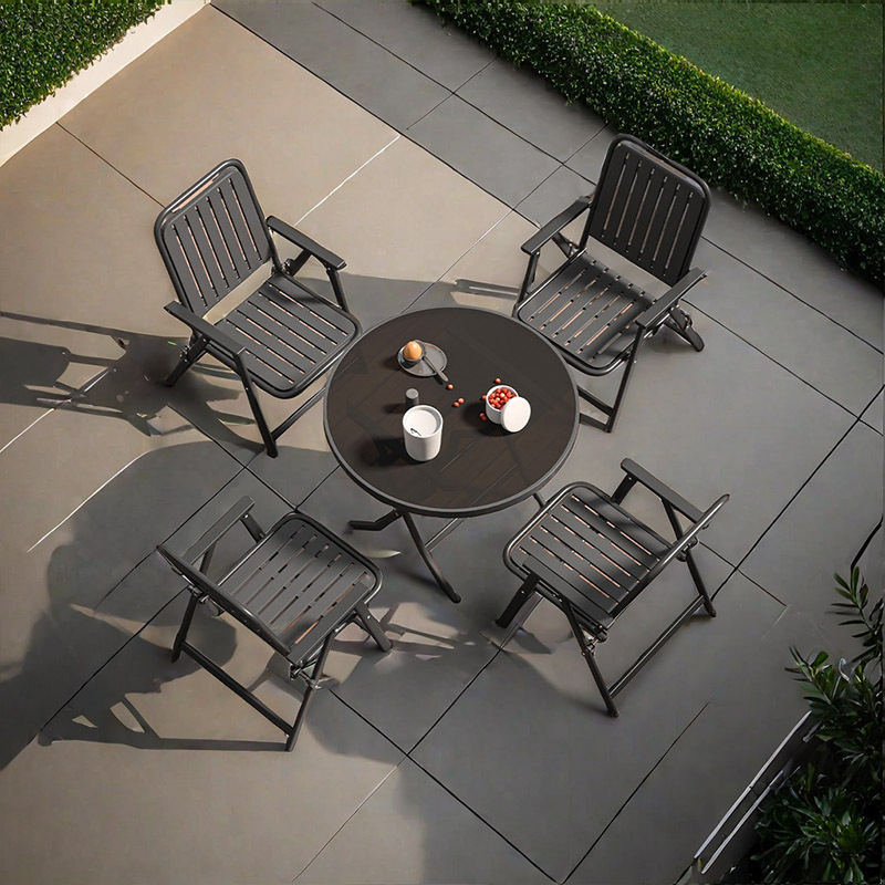 • 클래식 블랙 - 세로 패턴 접이식 의자 4개 + 60CM 접이식 원형 테이블 두꺼운 플랫 튜브