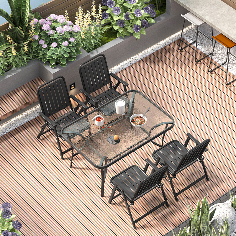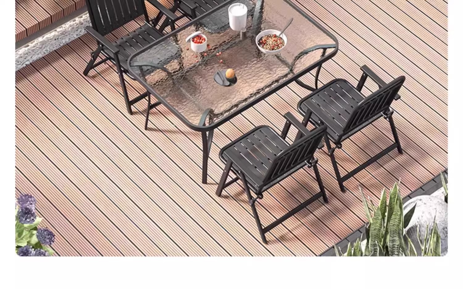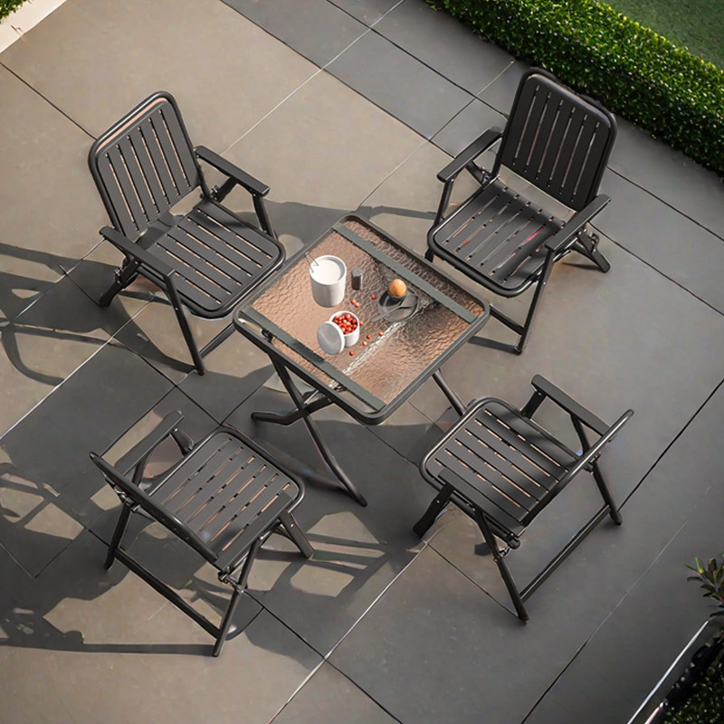• 브라운 - 세로 패턴 접이식 의자 4개 + 80CM 물 패턴 접이식 사각 테이블 두꺼운 플랫 튜브