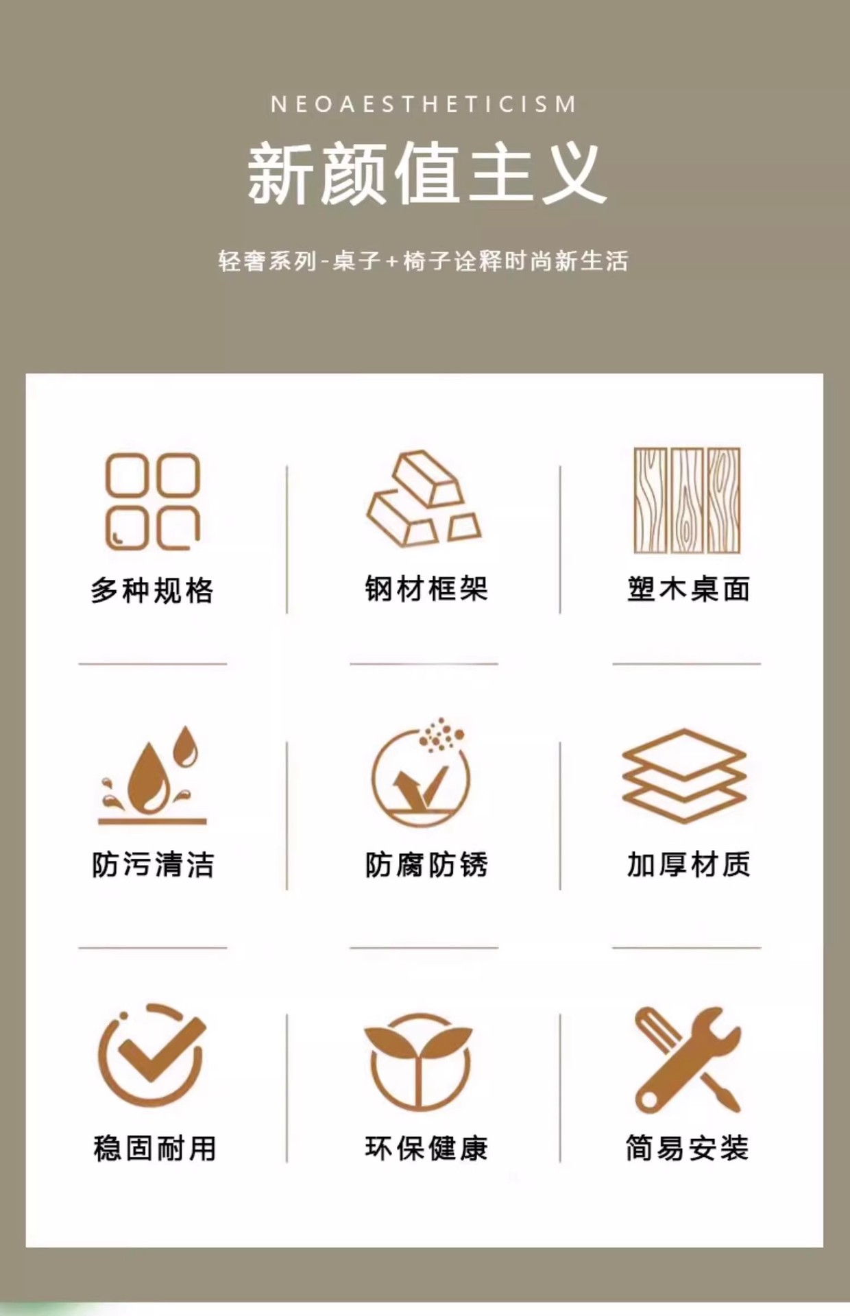 • 브라운 - 6개의 수직 패턴 접이식 의자 + 120*80CM 물 패턴 조립 긴 테이블 두꺼운 플랫 튜브