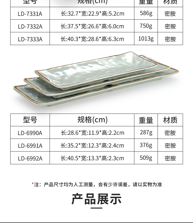 멜라민 접시 차가운 접시 냄비 가게 상업 공 반찬 접시 모방 도자기 레스토랑 긴 접시 간식 접시 바베큐 접시스토어 가기