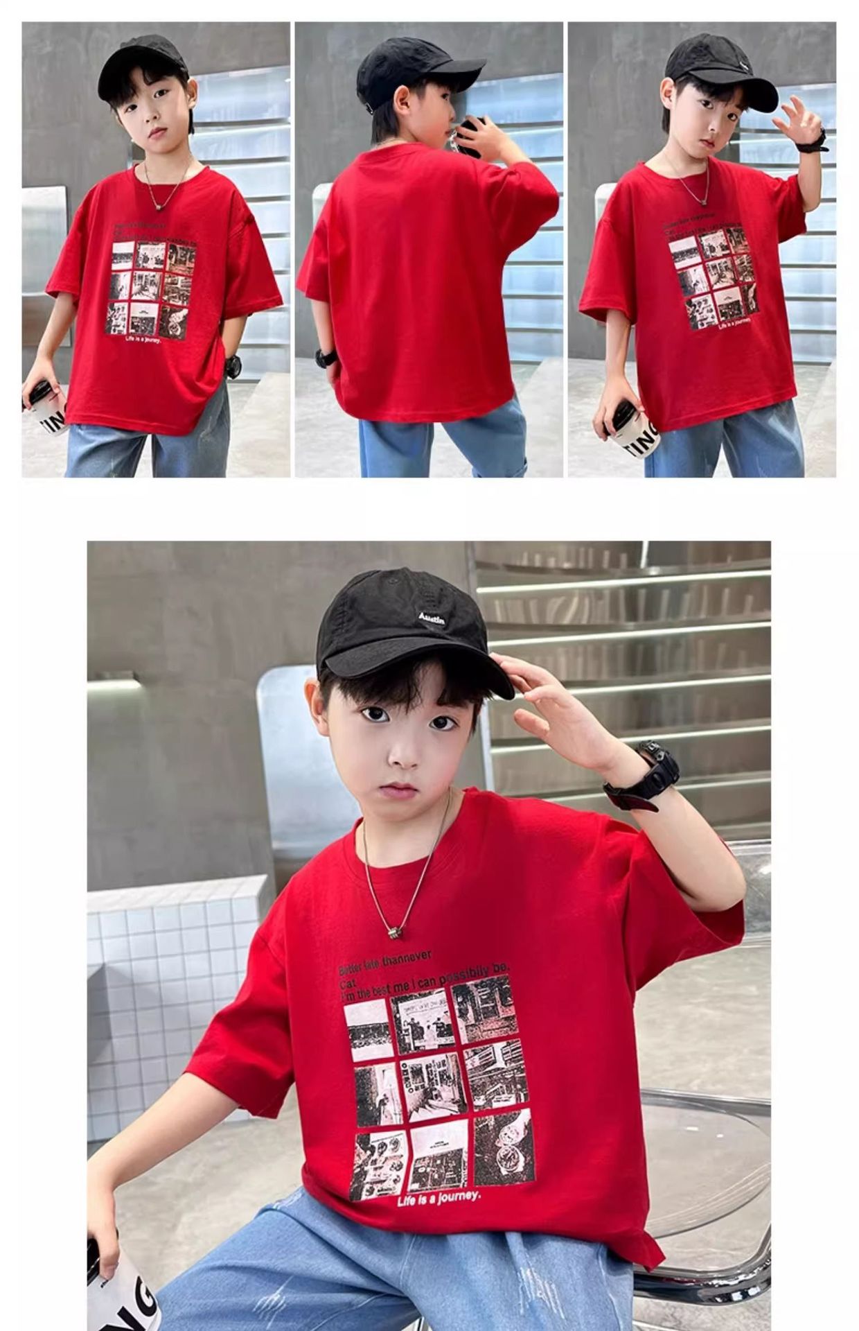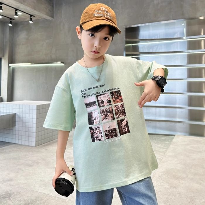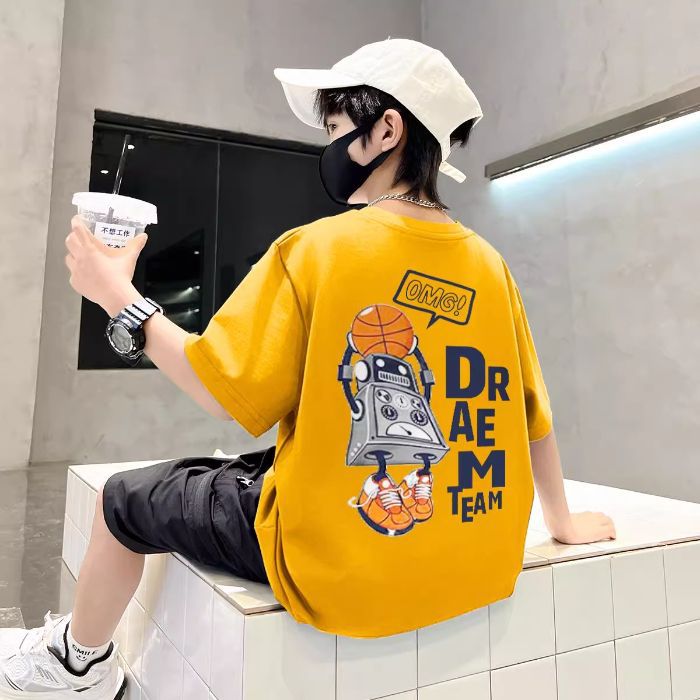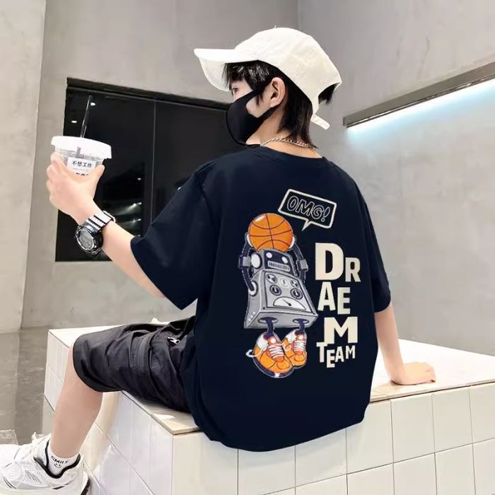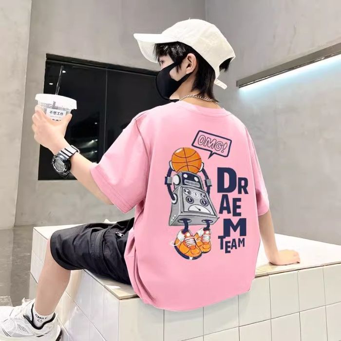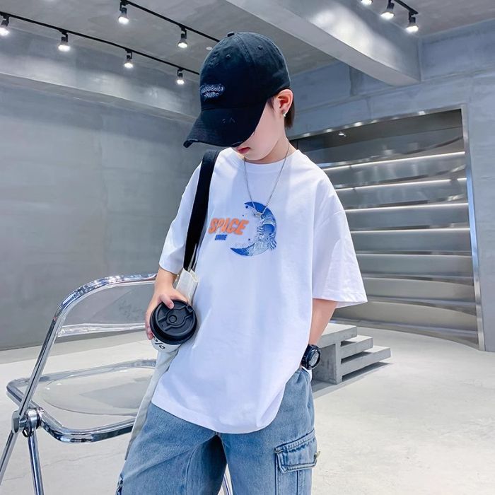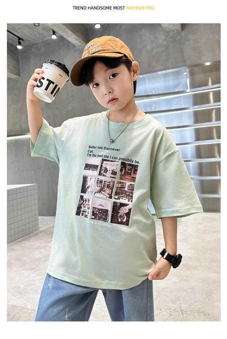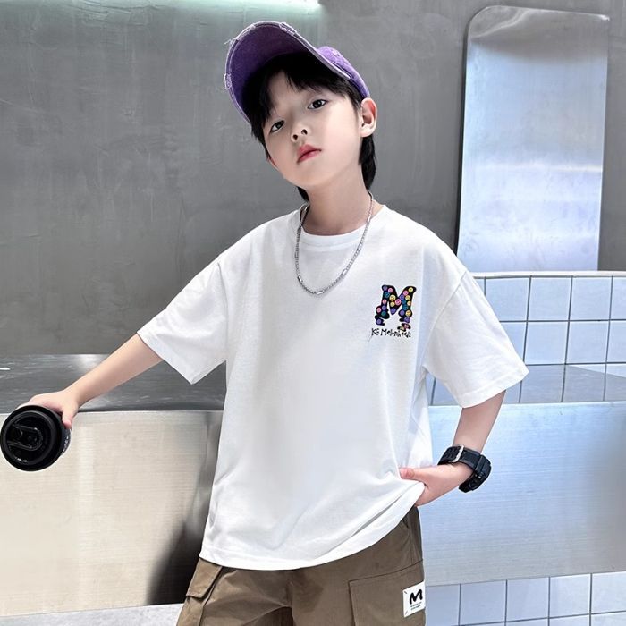 아동복 남아 반팔 순면 티셔츠 2026년 신상 여름 멋진 중대형 아동 스트리트룩 트렌디 상의