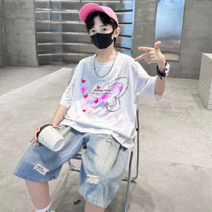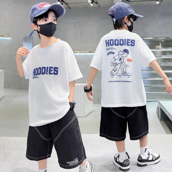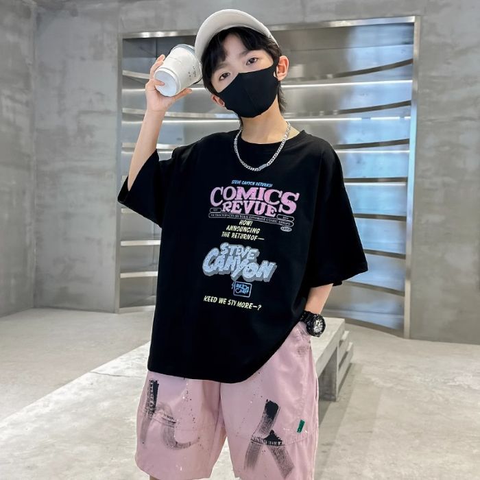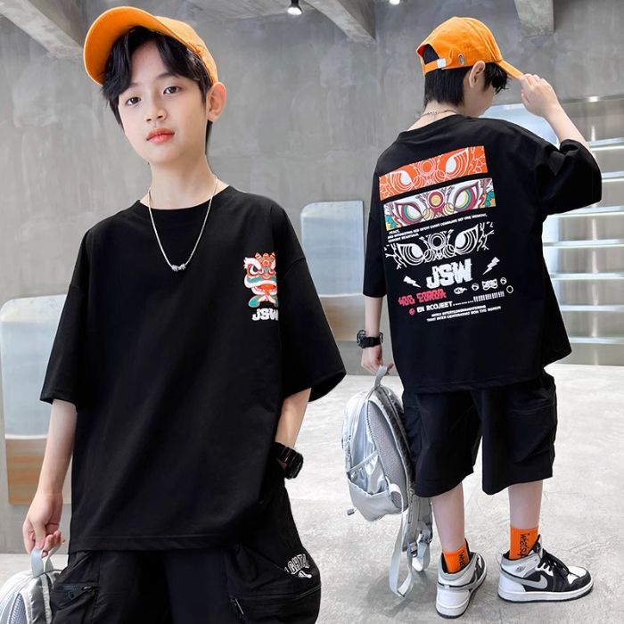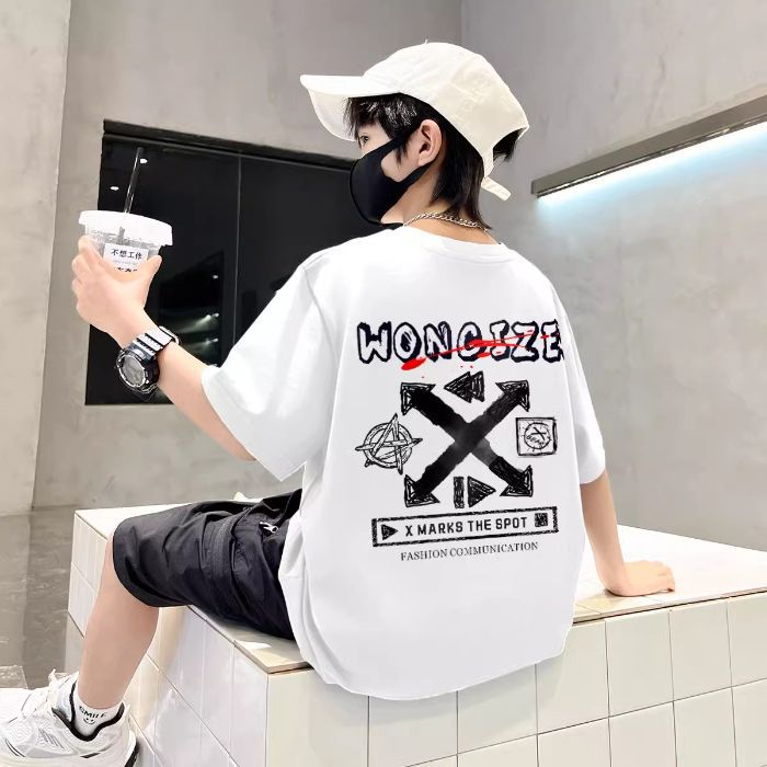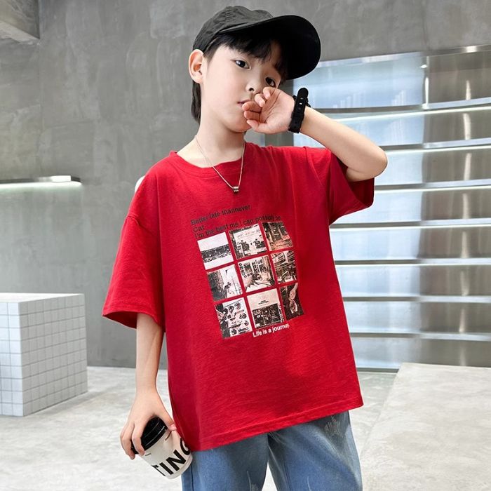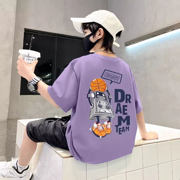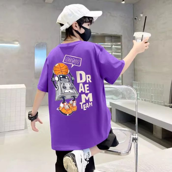 아동복 남아 반팔 순면 티셔츠 2026년 신상 여름 멋진 중대형 아동 스트리트룩 트렌디 상의