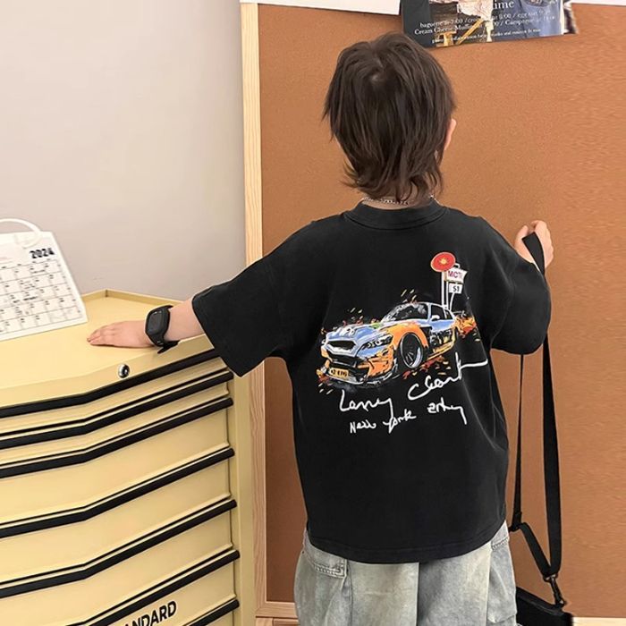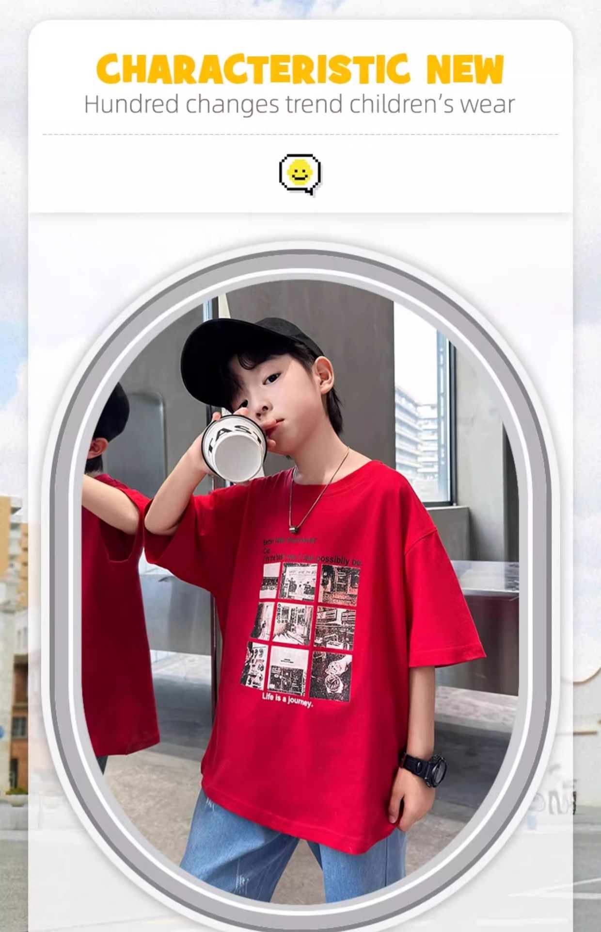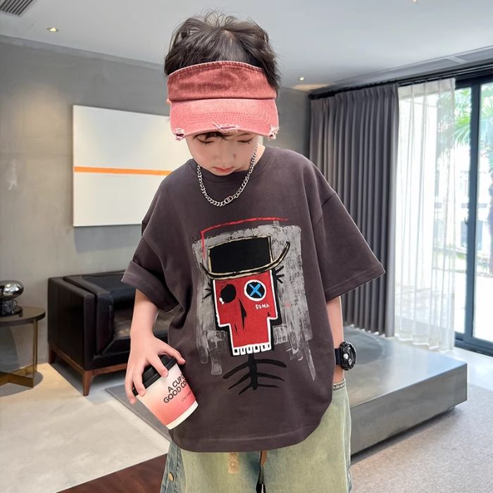 아동복 남아 반팔 순면 티셔츠 2026년 신상 여름 멋진 중대형 아동 스트리트룩 트렌디 상의스토어 가기