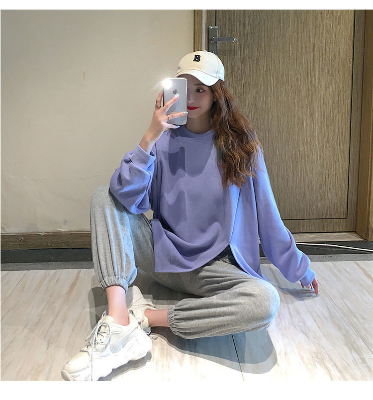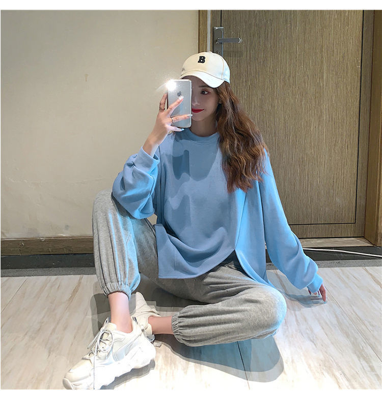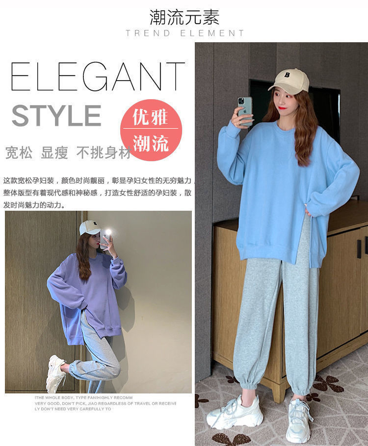 임산부의 가을 출산 의류 봄 및 가을 세트 새로운 패션 외출 운동복 느슨한 플러스 사이즈 스포츠 레저 투피스 세트