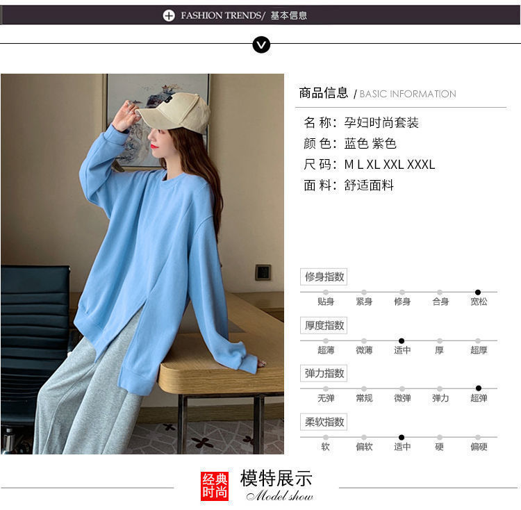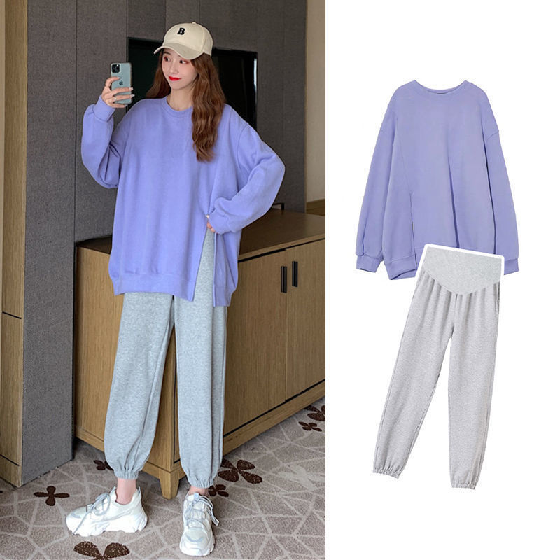 임산부의 가을 출산 의류 봄 및 가을 세트 새로운 패션 외출 운동복 느슨한 플러스 사이즈 스포츠 레저 투피스 세트스토어 가기