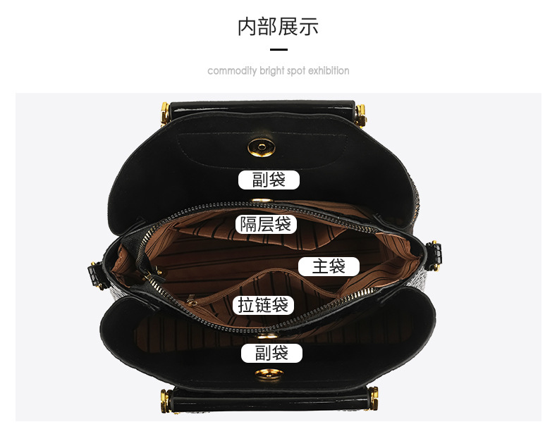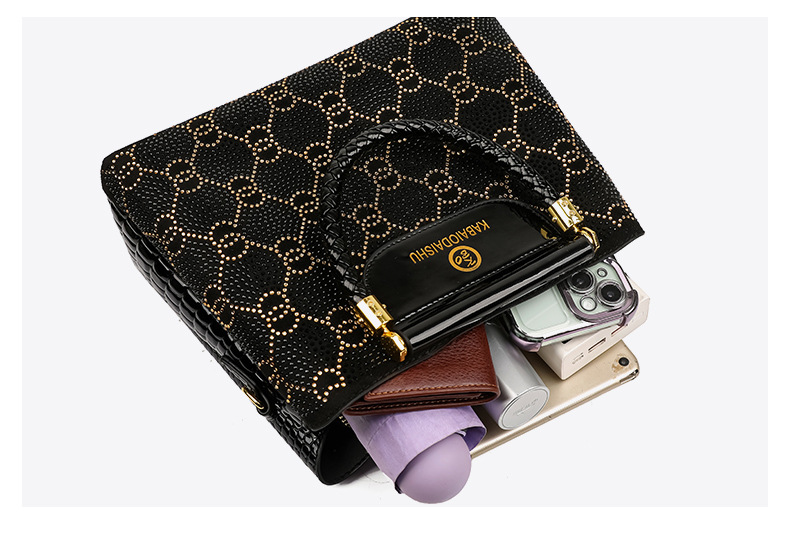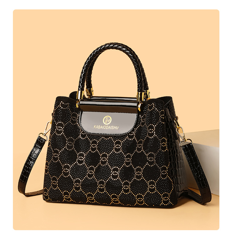 가을 새로운 라이브 간단한 휴대용 어깨 크로스 바디 백 3 층 대용량 크로스 보더 풀 다이아몬드 여성용 가방