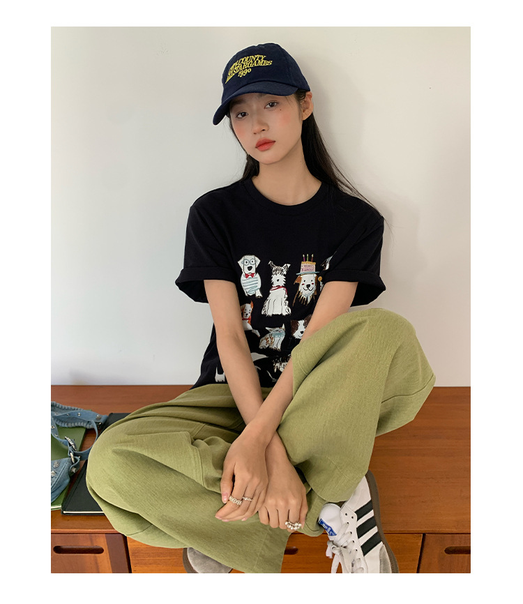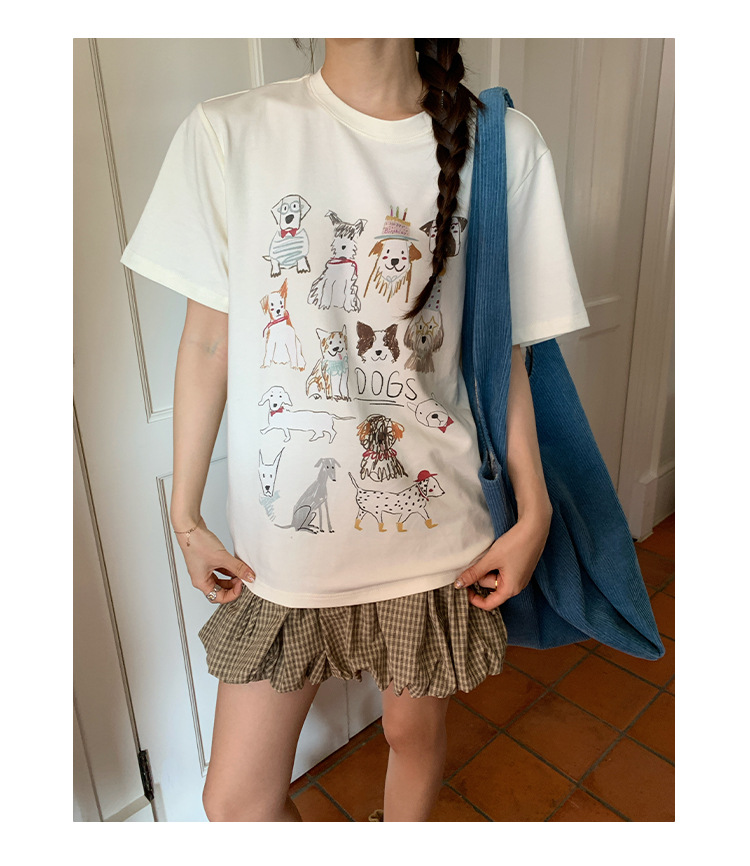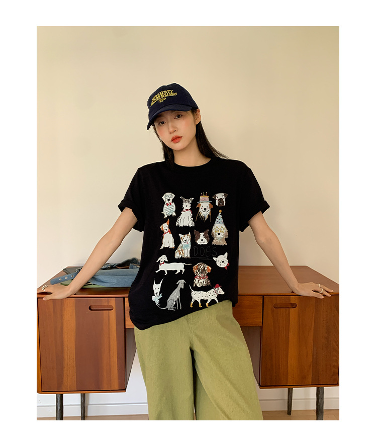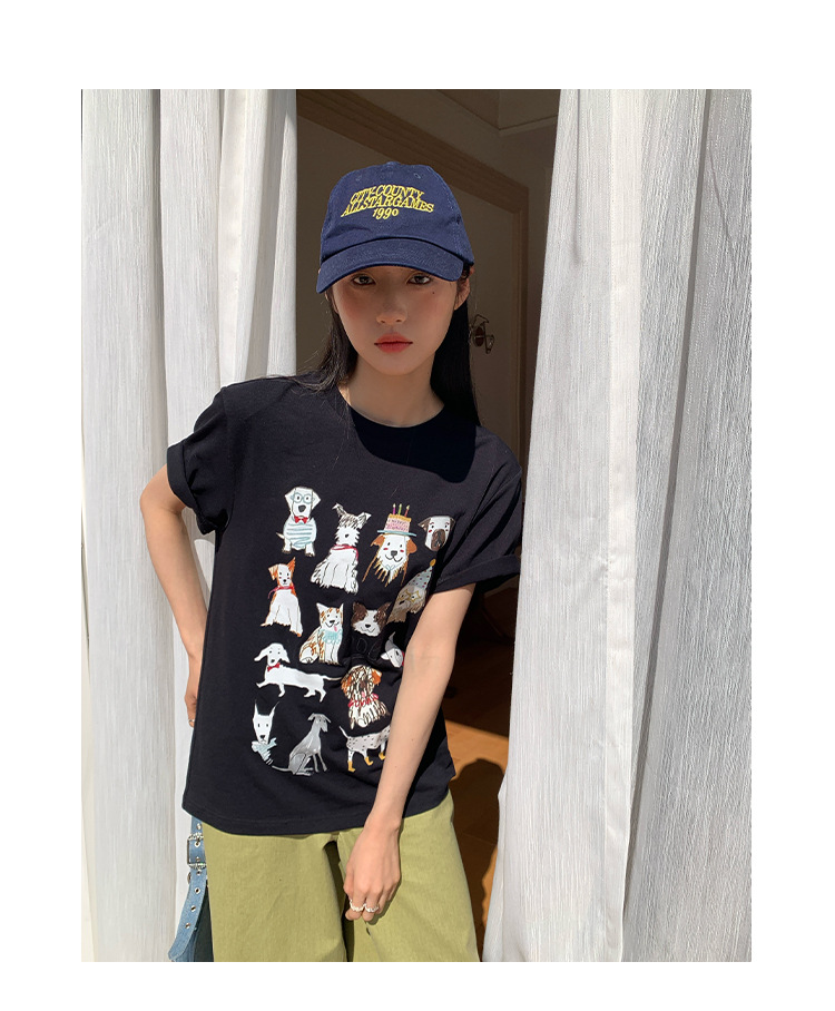 Interpretation of Beauty NEWOPEN 2025 이른 봄 만화 프린트 느슨한 한국 스타일 라운드 넥 소녀 반팔 티셔츠 C3173스토어 가기