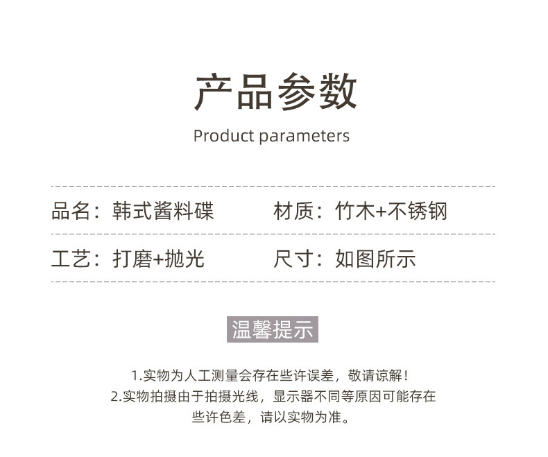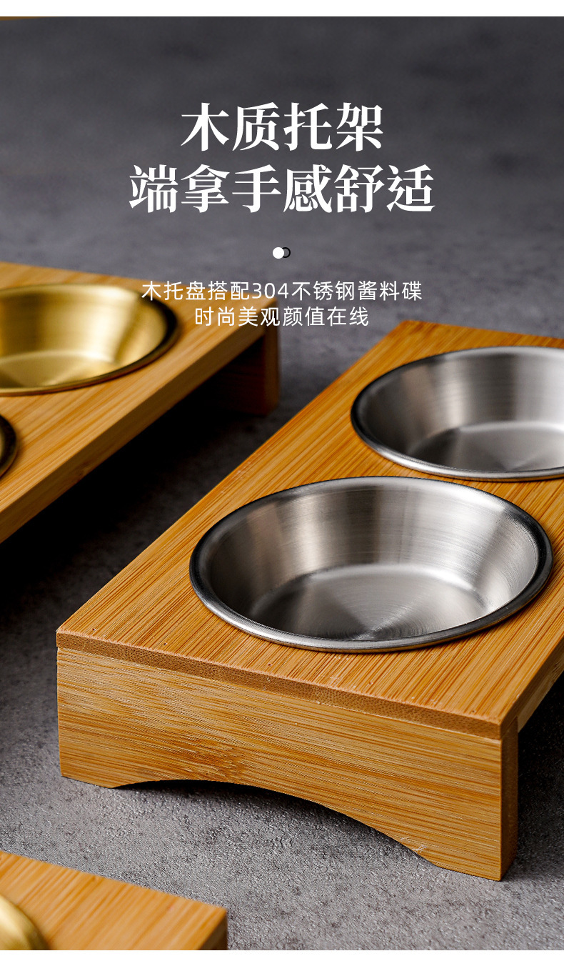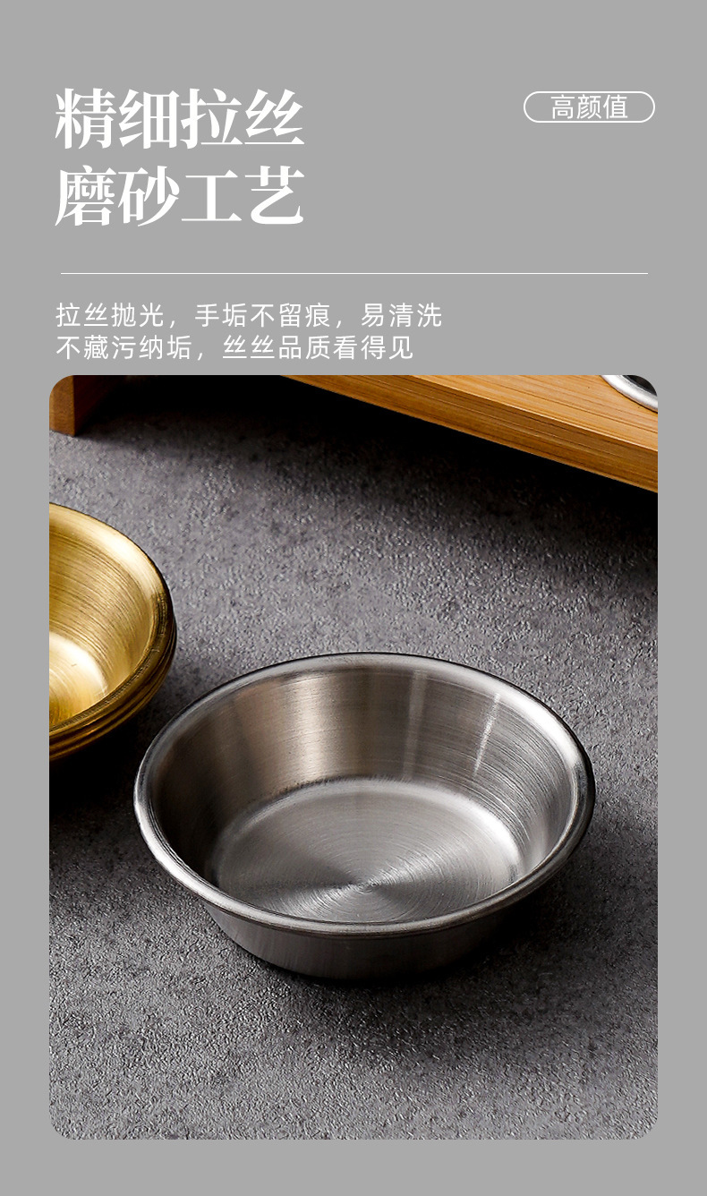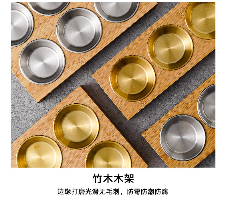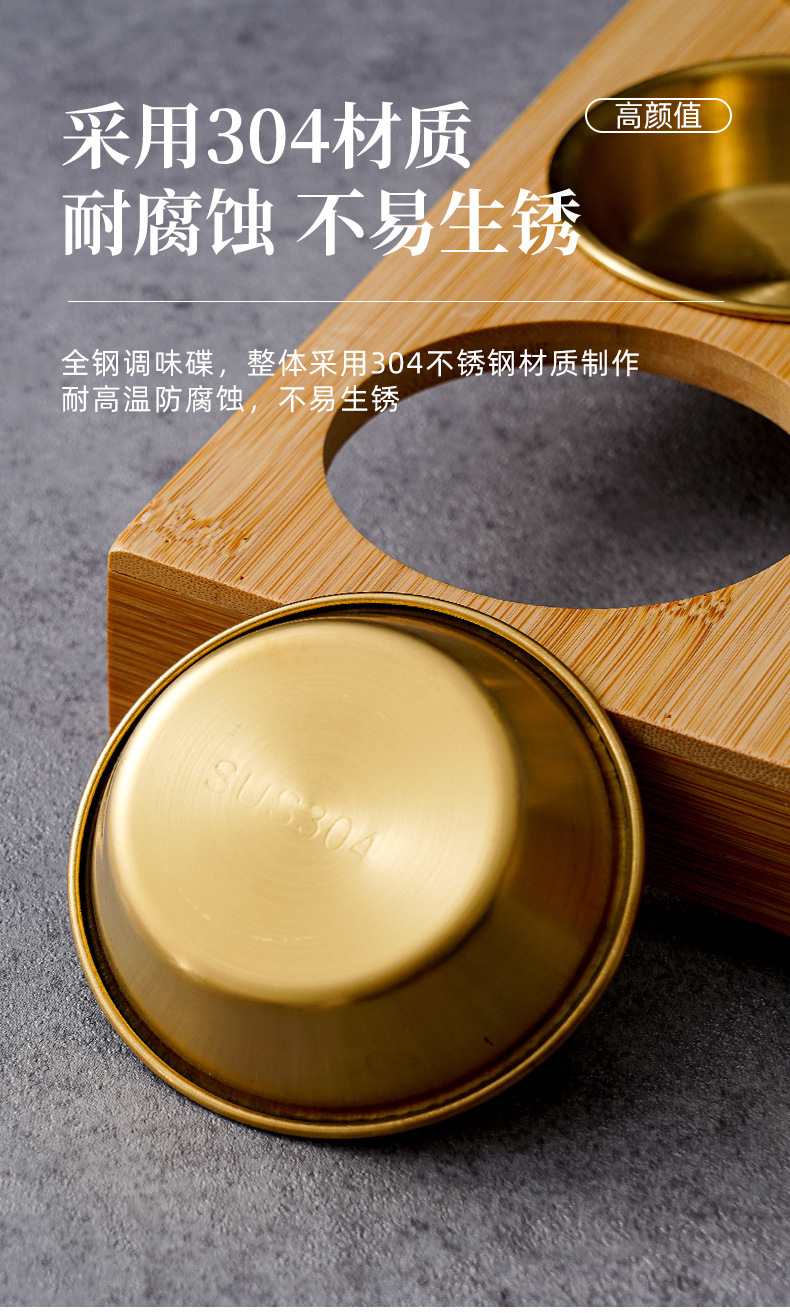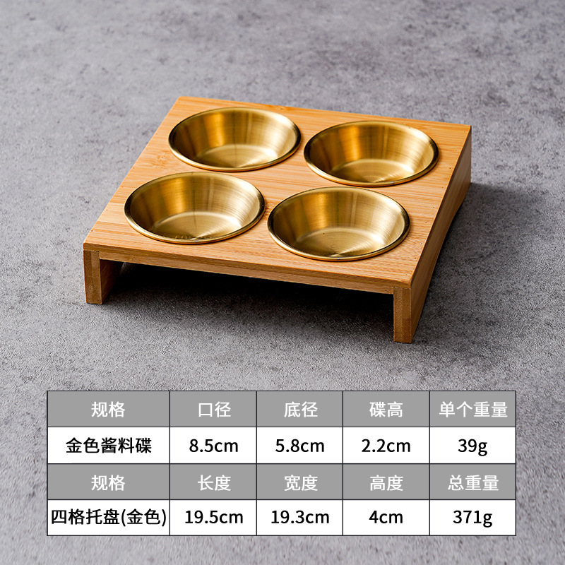 국경 간 창조적 조미료 304 스테인레스 스틸 풍미 접시 한식 바베큐 냄비 차가운 접시 칸막이와 나무 트레이 디핑 접시스토어 가기