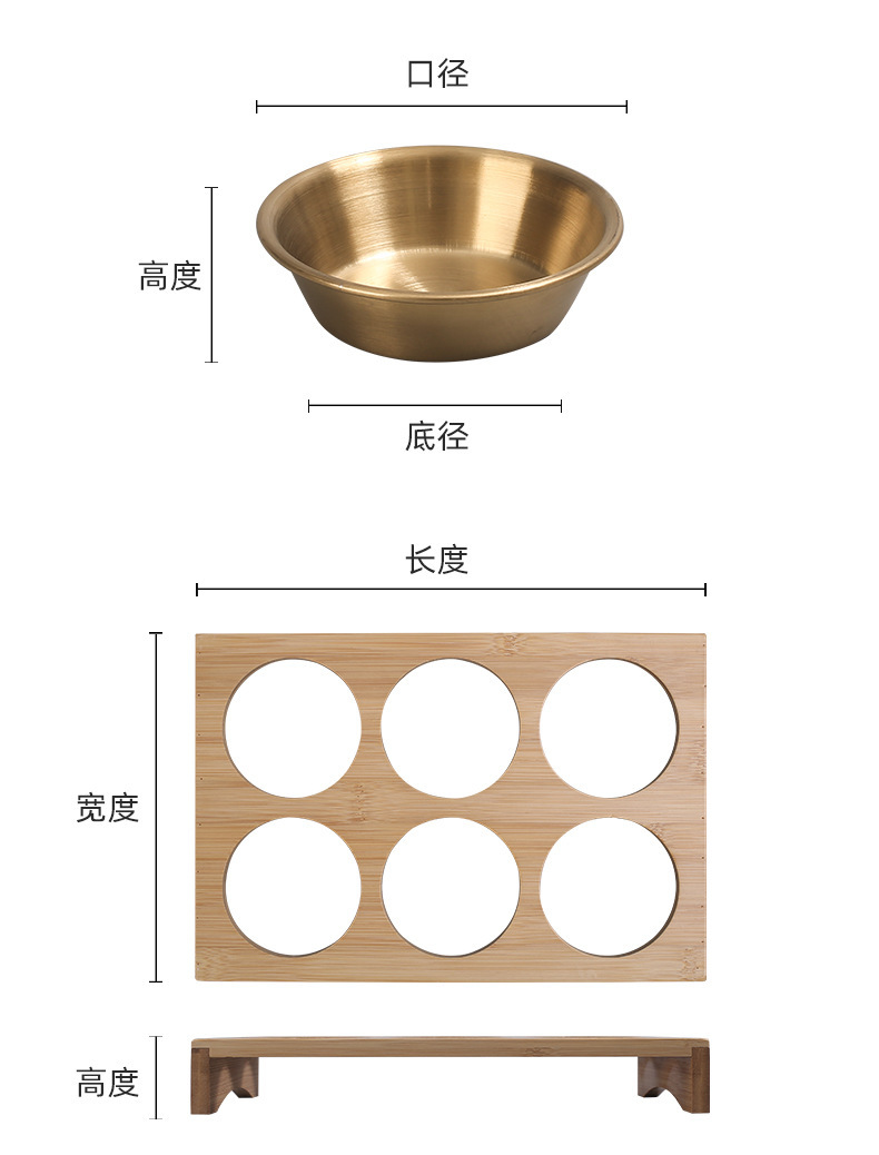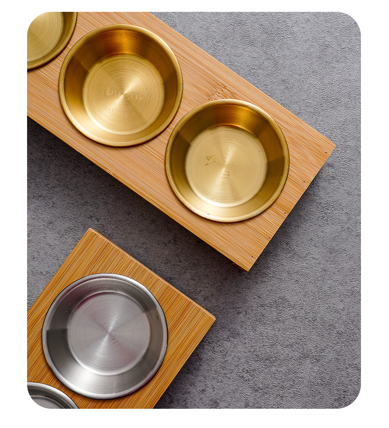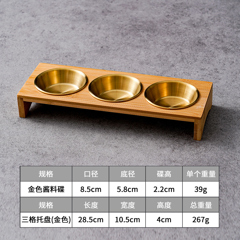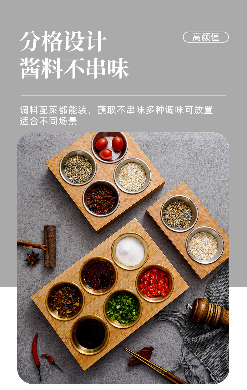 국경 간 창조적 조미료 304 스테인레스 스틸 풍미 접시 한식 바베큐 냄비 차가운 접시 칸막이와 나무 트레이 디핑 접시