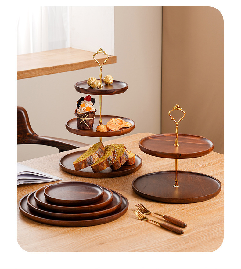 인기 복고풍 아카시아 나무 케이크 트레이 가정용 거실 디저트 트레이 디저트 진열대 나무 높은 받침대 과일 트레이