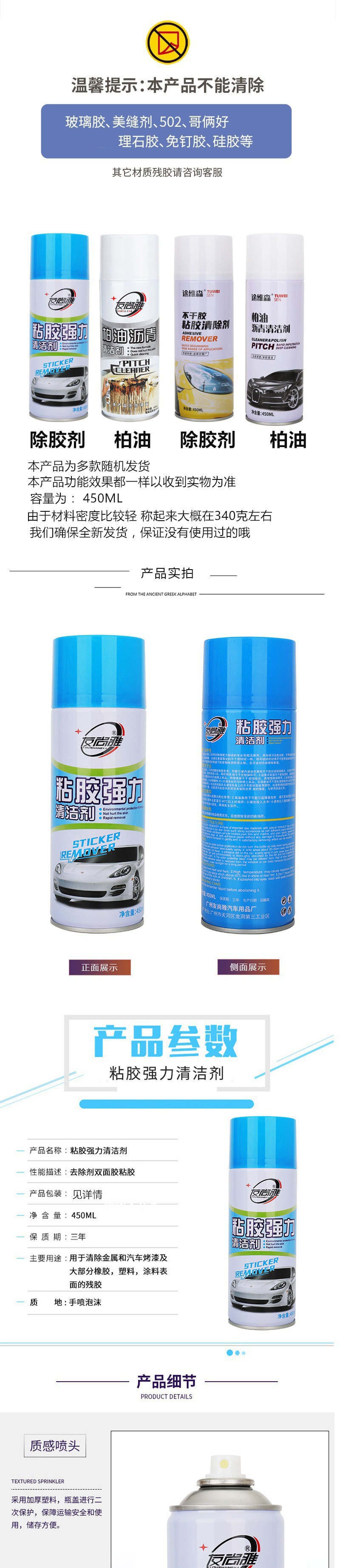 • 접착제 제거 450ML 표준 버전(1병) + 삽