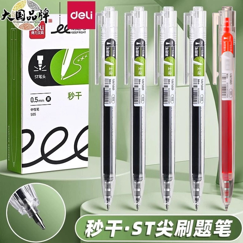 델리 S05 프레스 젤 펜 ST 헤드 학생 빠른 드라이 브러시 펜 높은 컬러 값 블랙 펜 레드 펜 사무실