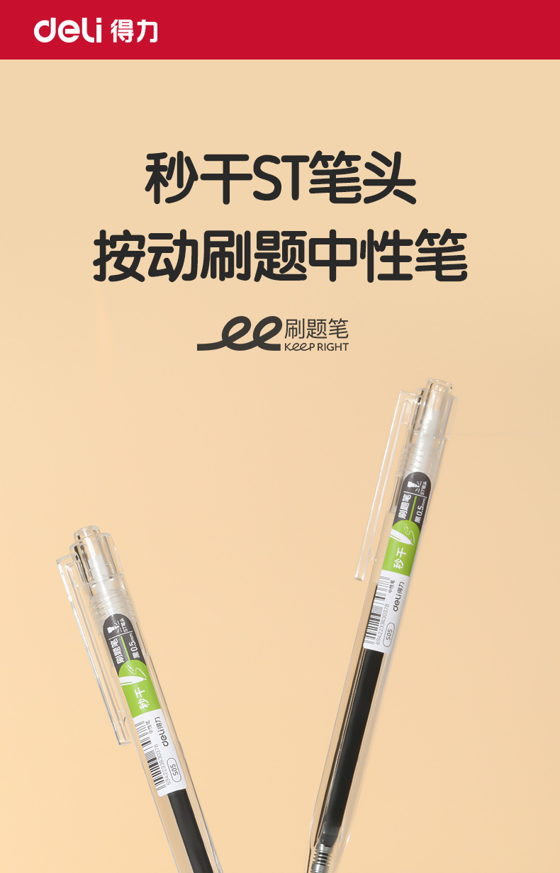델리 S05 프레스 젤 펜 ST 헤드 학생 빠른 드라이 브러시 펜 높은 컬러 값 블랙 펜 레드 펜 사무실스토어 가기