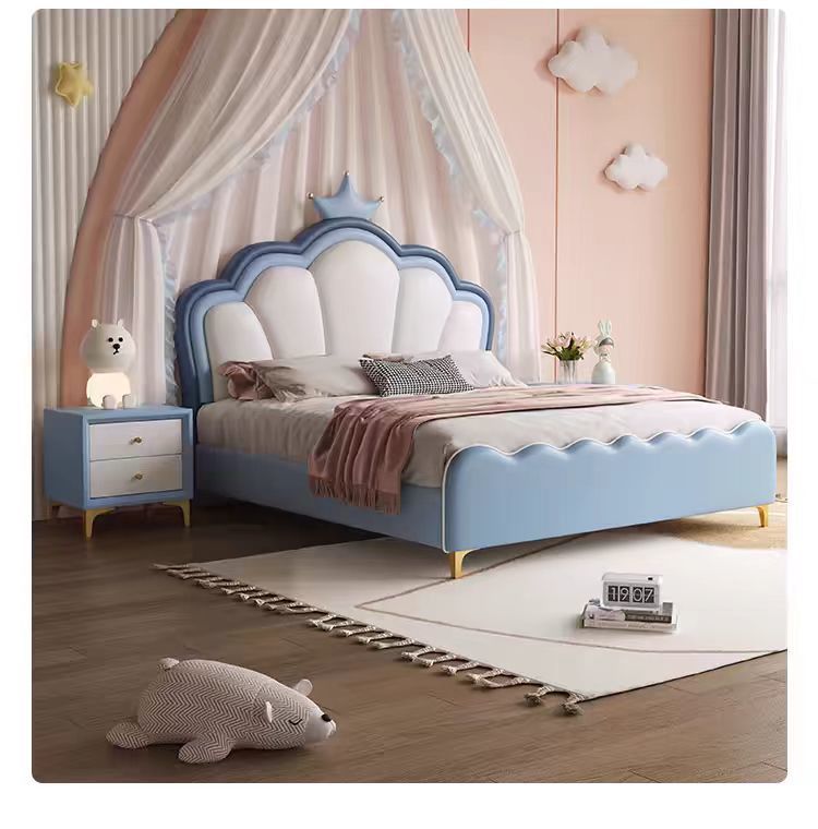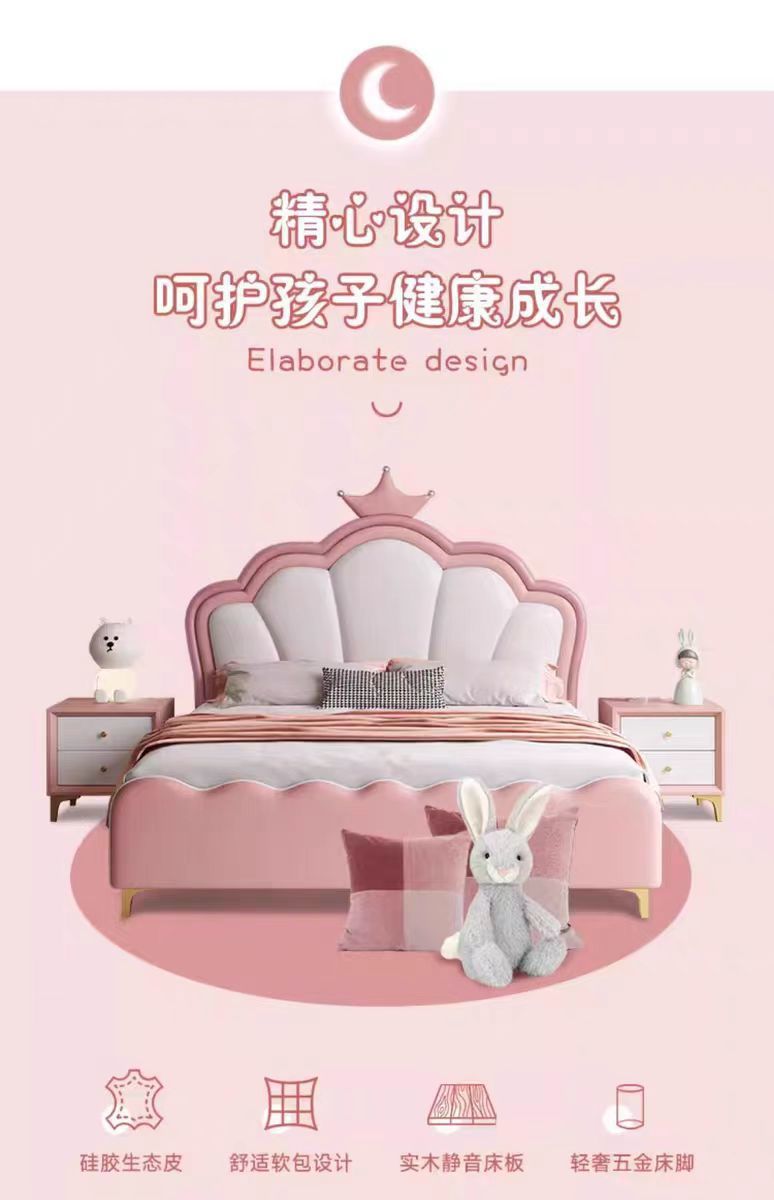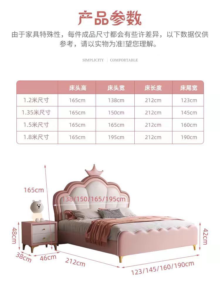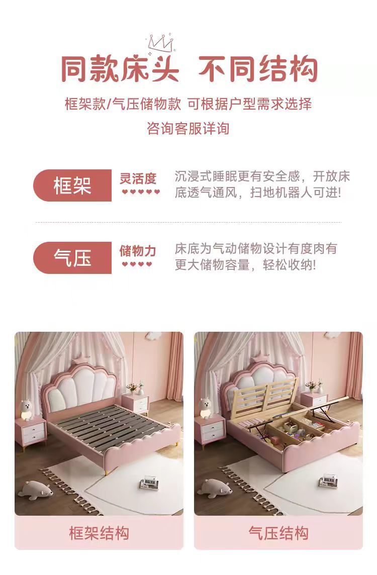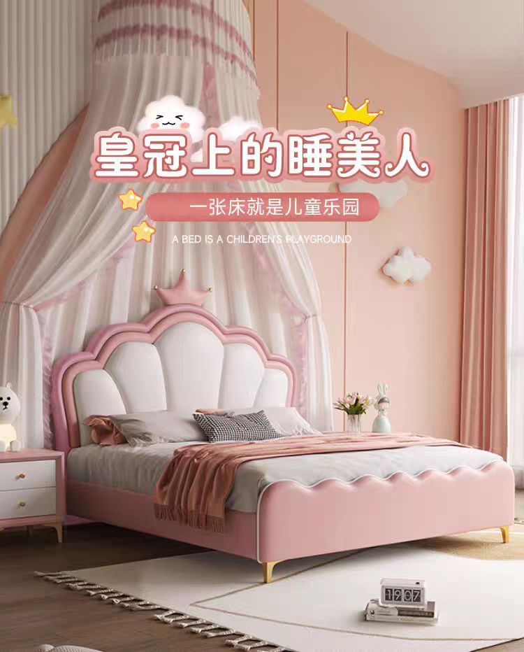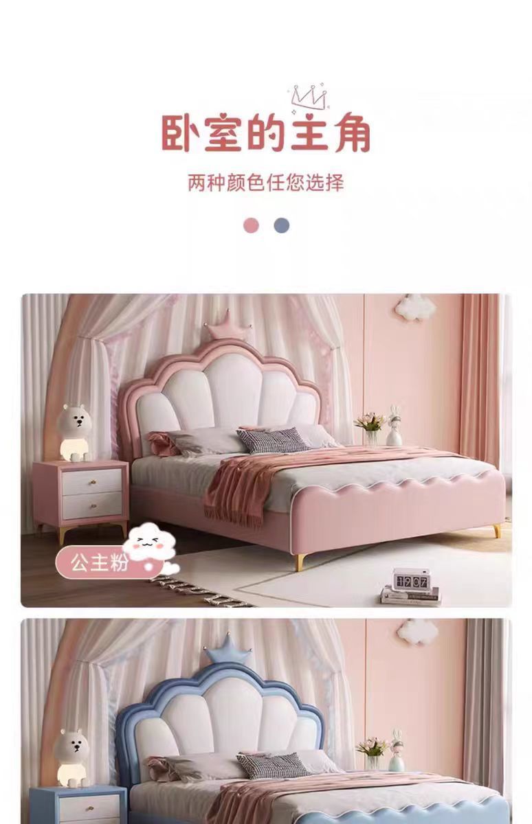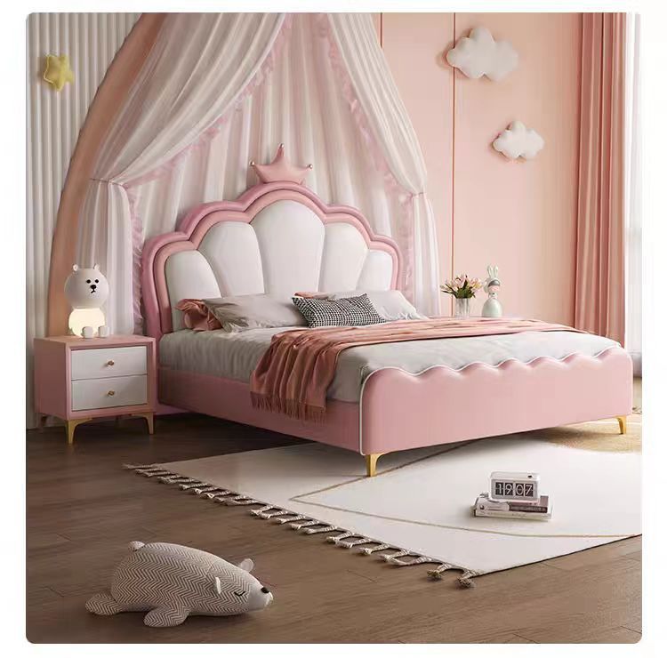 현대 간단한 어린이 침대 소녀 크라운 공주 침대 침실 작은 아파트 1.5 m 홈