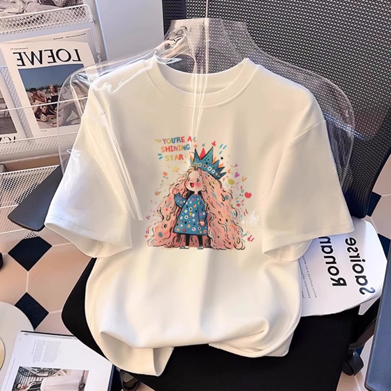 면 반소매 티셔츠 여자 여름 2025 새로운 도착 느슨한 라운드 넥 올 매치 프린트 어깨 반소매 티셔츠 탑인스토어 가기