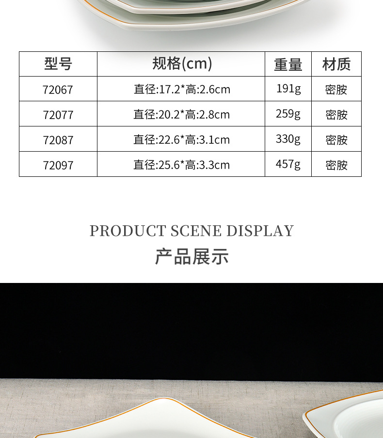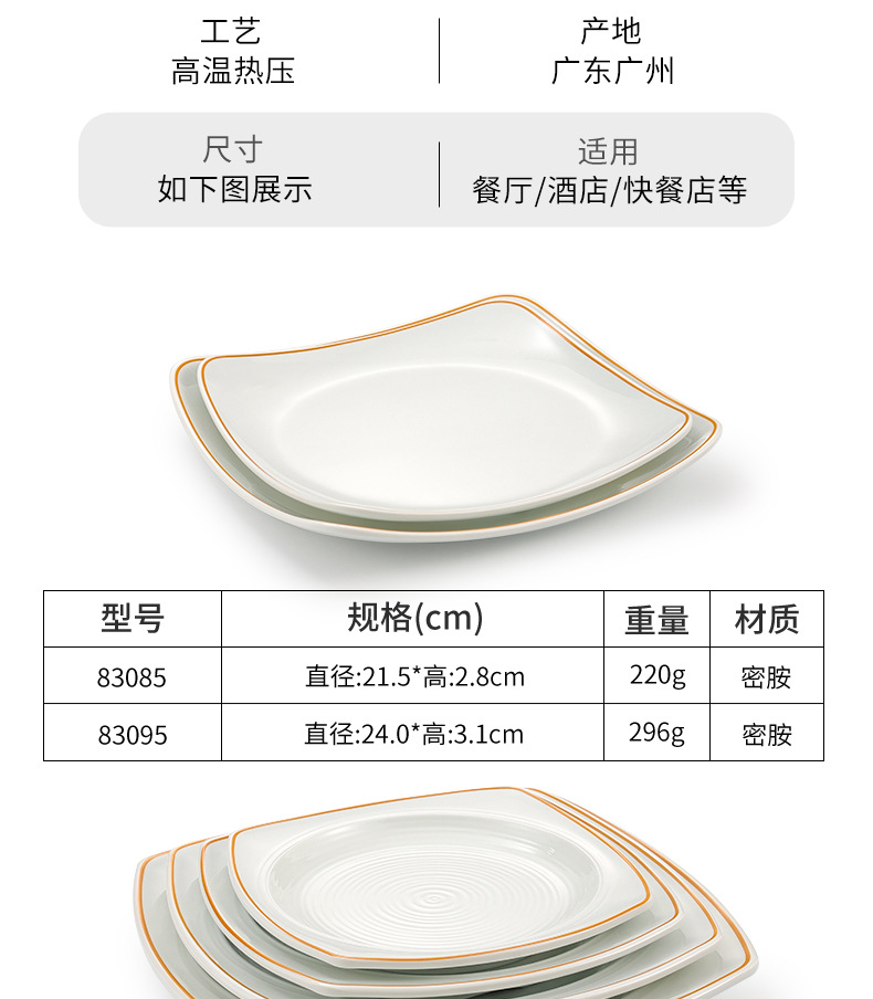 멜라민 사각 접시 10개 세트, 창의적인 레스토랑, 호텔, 밥그릇, 호텔 냉채 접시, 상업용 평평한 접시 식기 세트