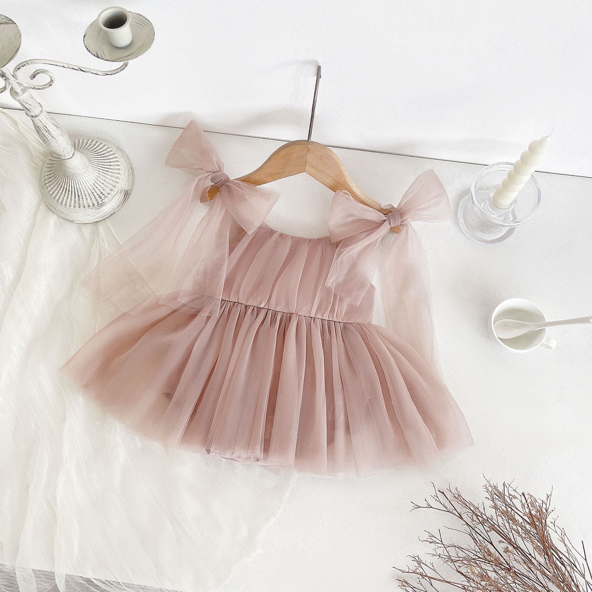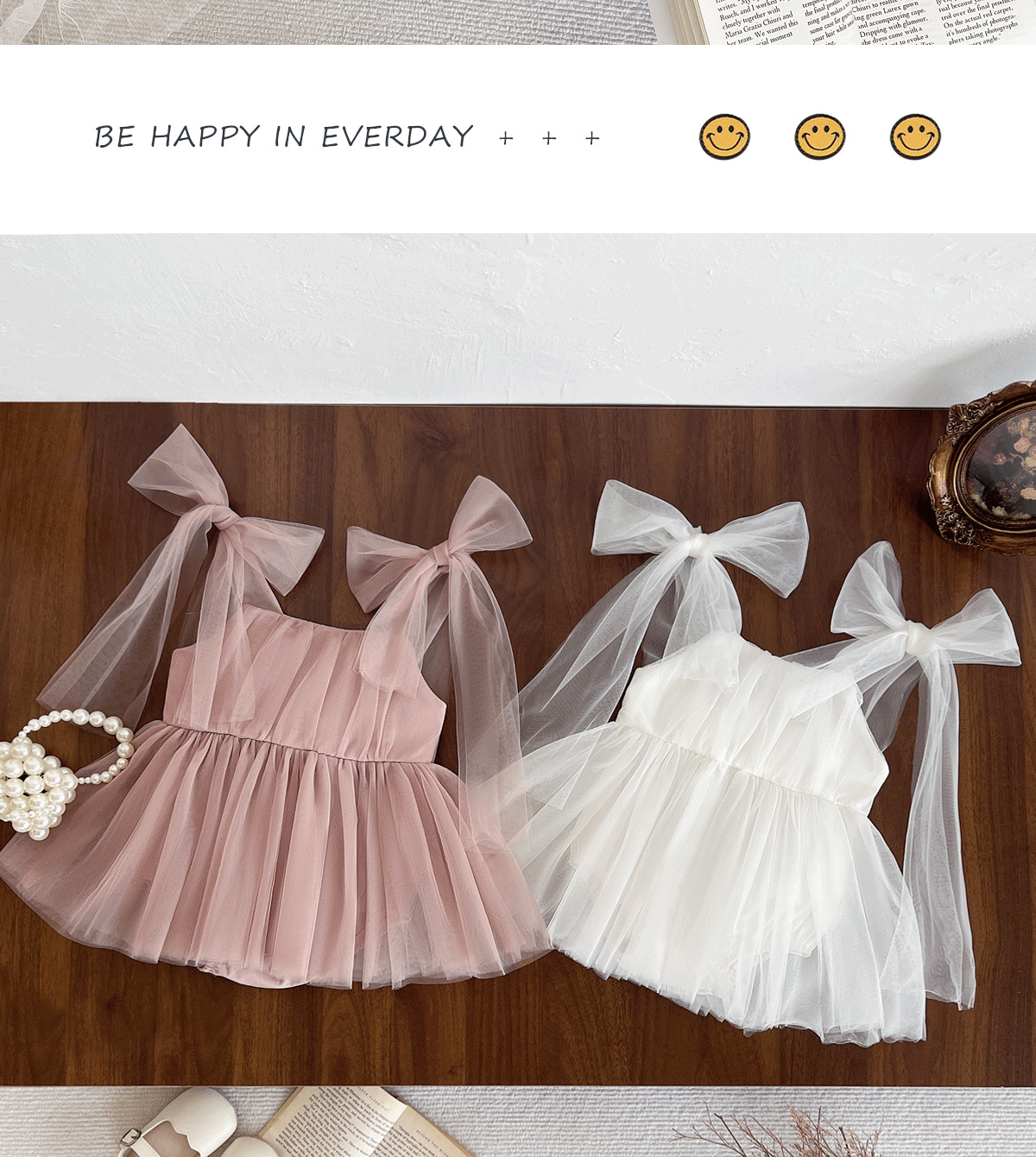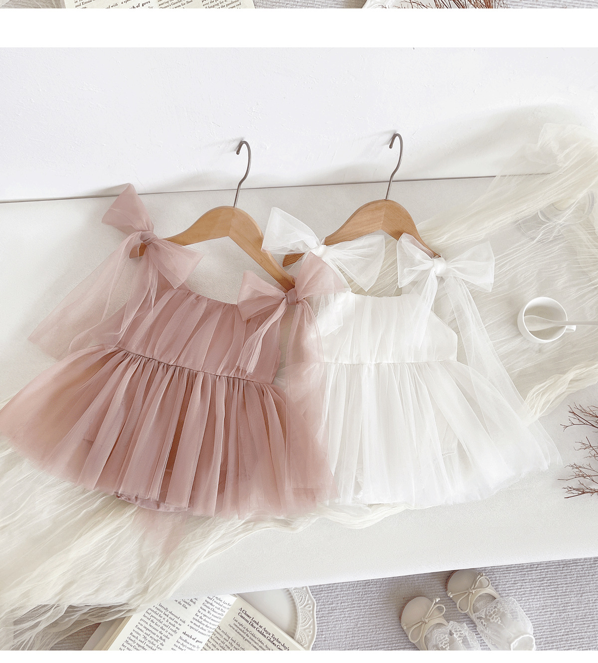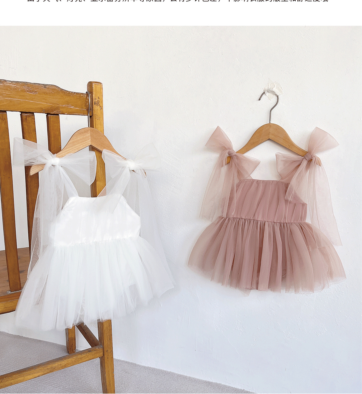 Ins2025 여름 아기 소녀 민소매 가방 방귀 하 옷 아기 메쉬 공주 치마 신생아 100 일 사진 원피스스토어 가기