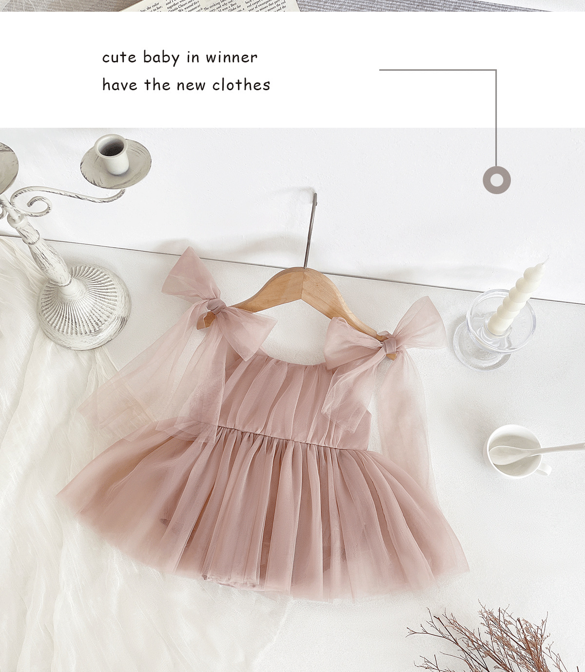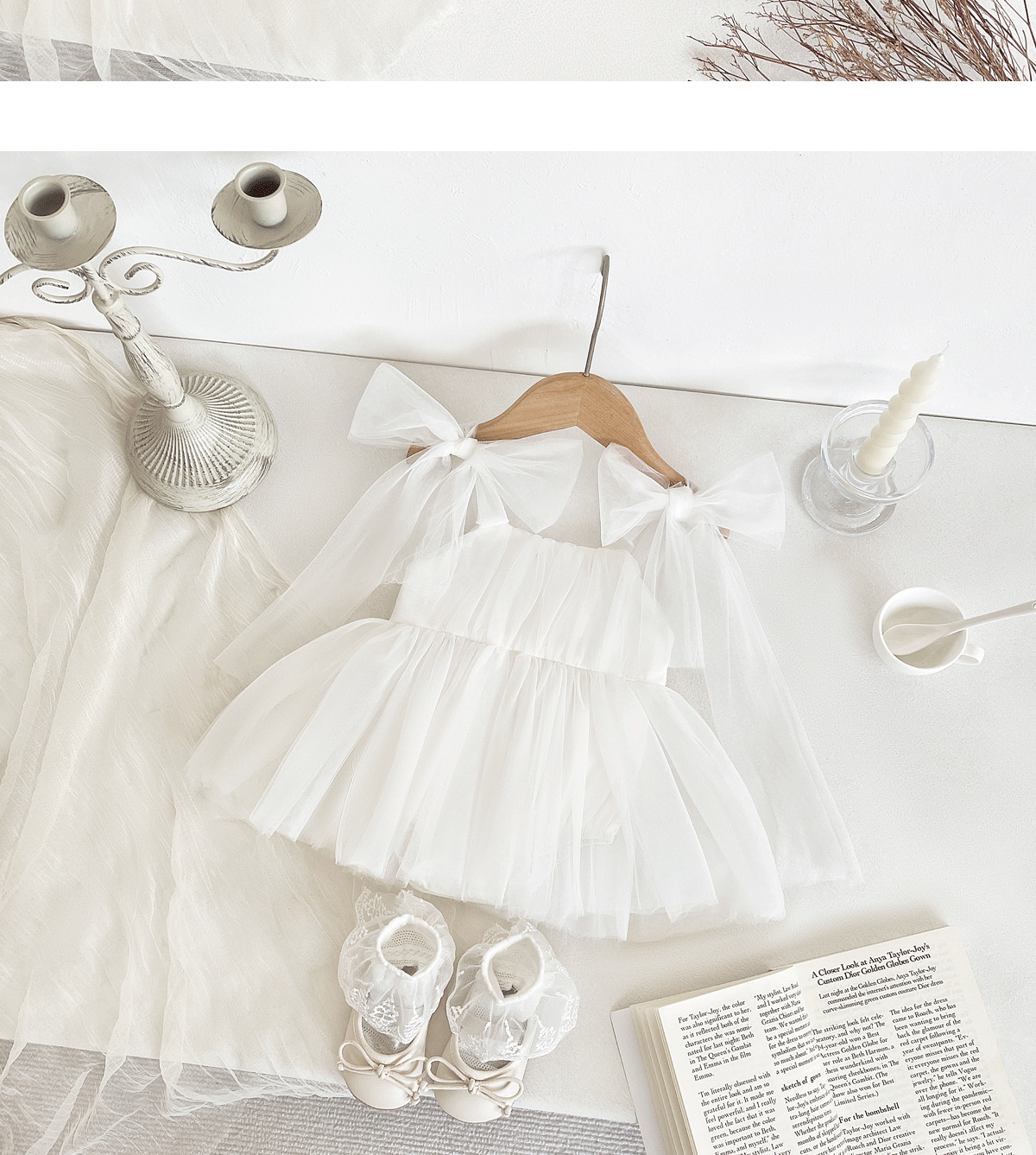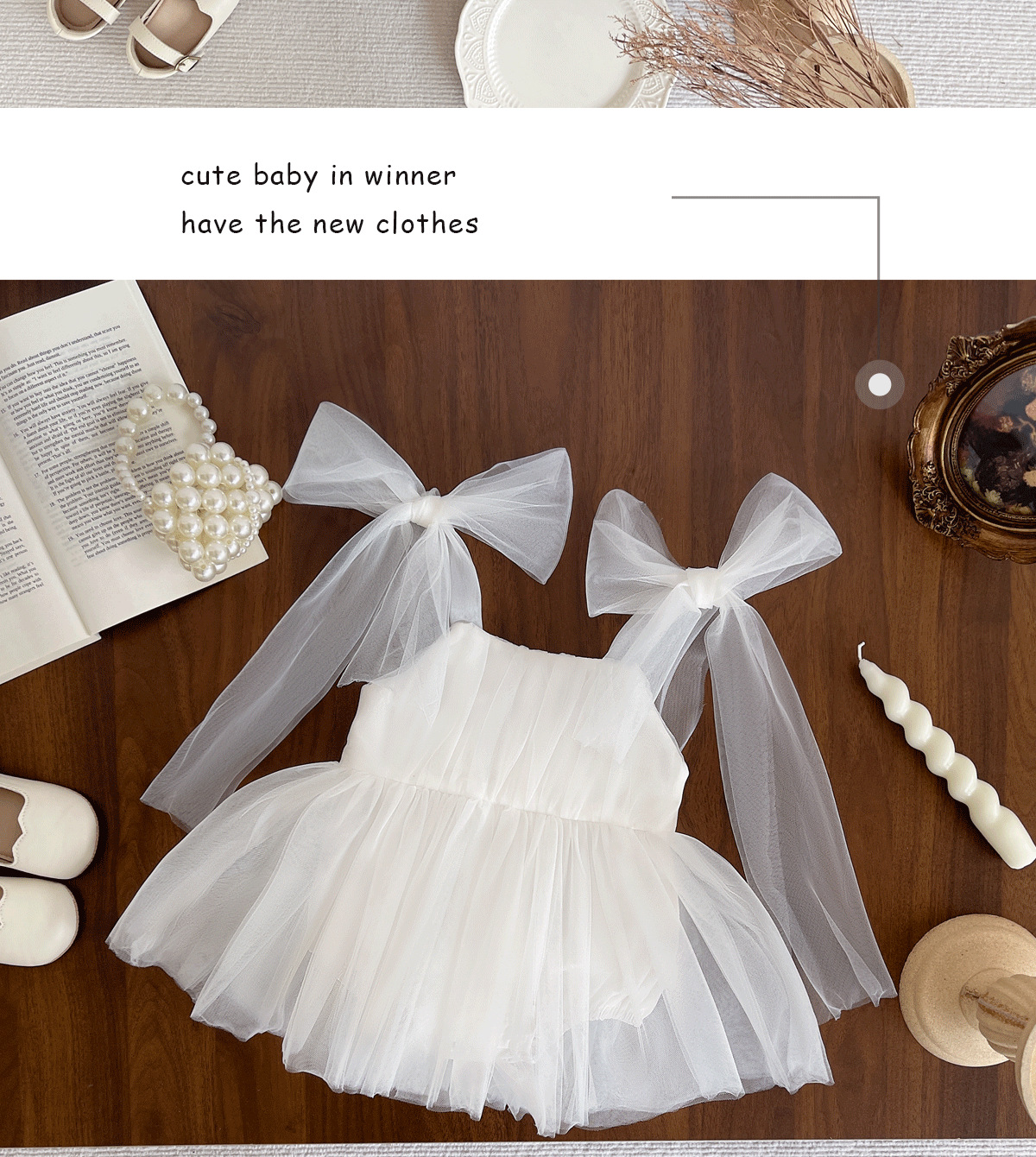 Ins2025 여름 아기 소녀 민소매 가방 방귀 하 옷 아기 메쉬 공주 치마 신생아 100 일 사진 원피스스토어 가기