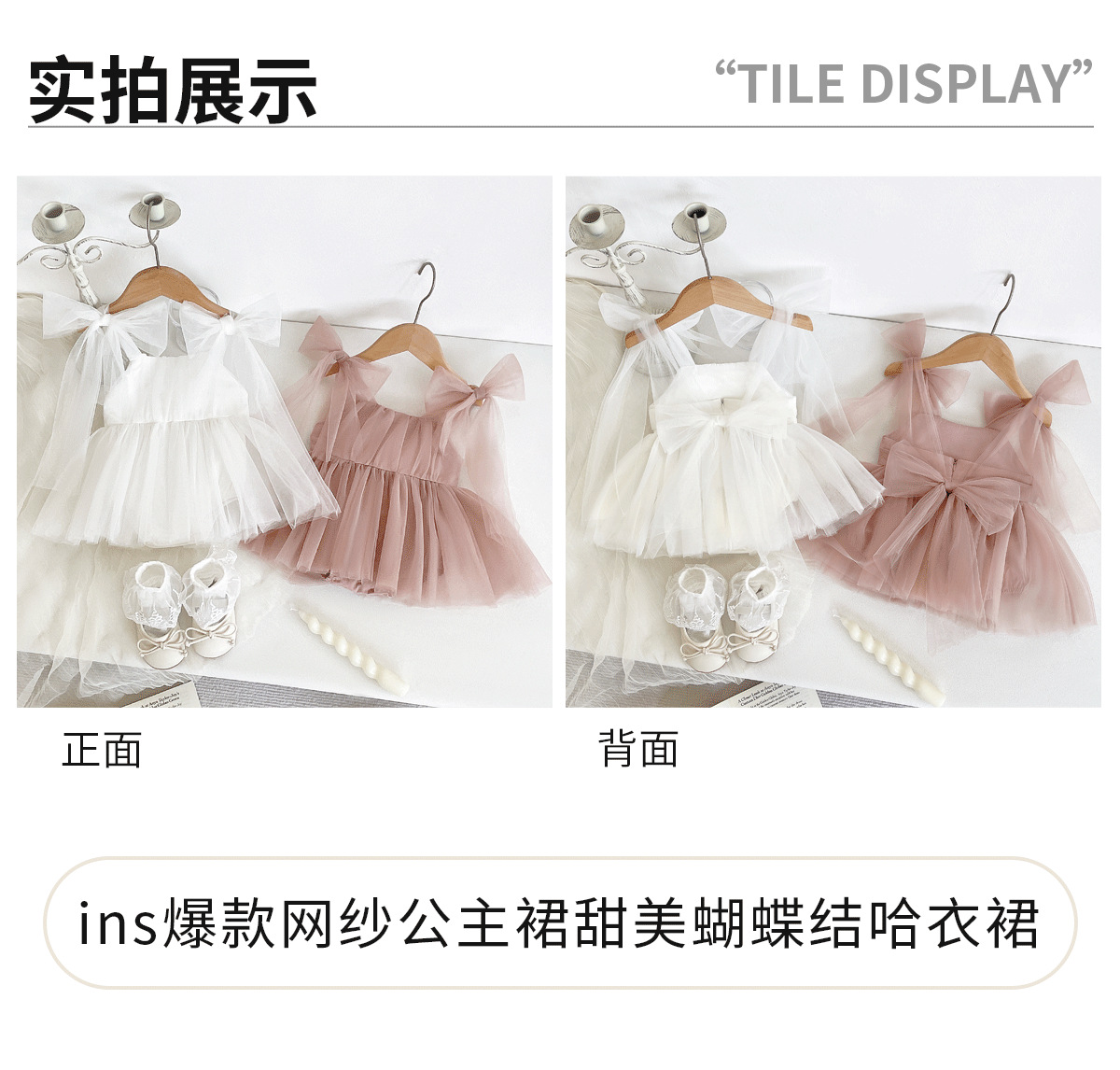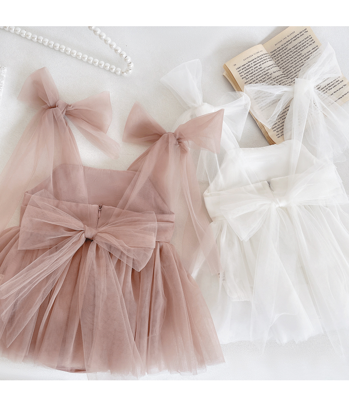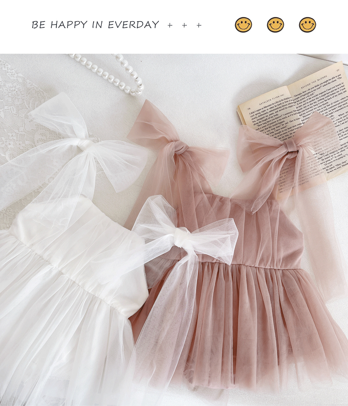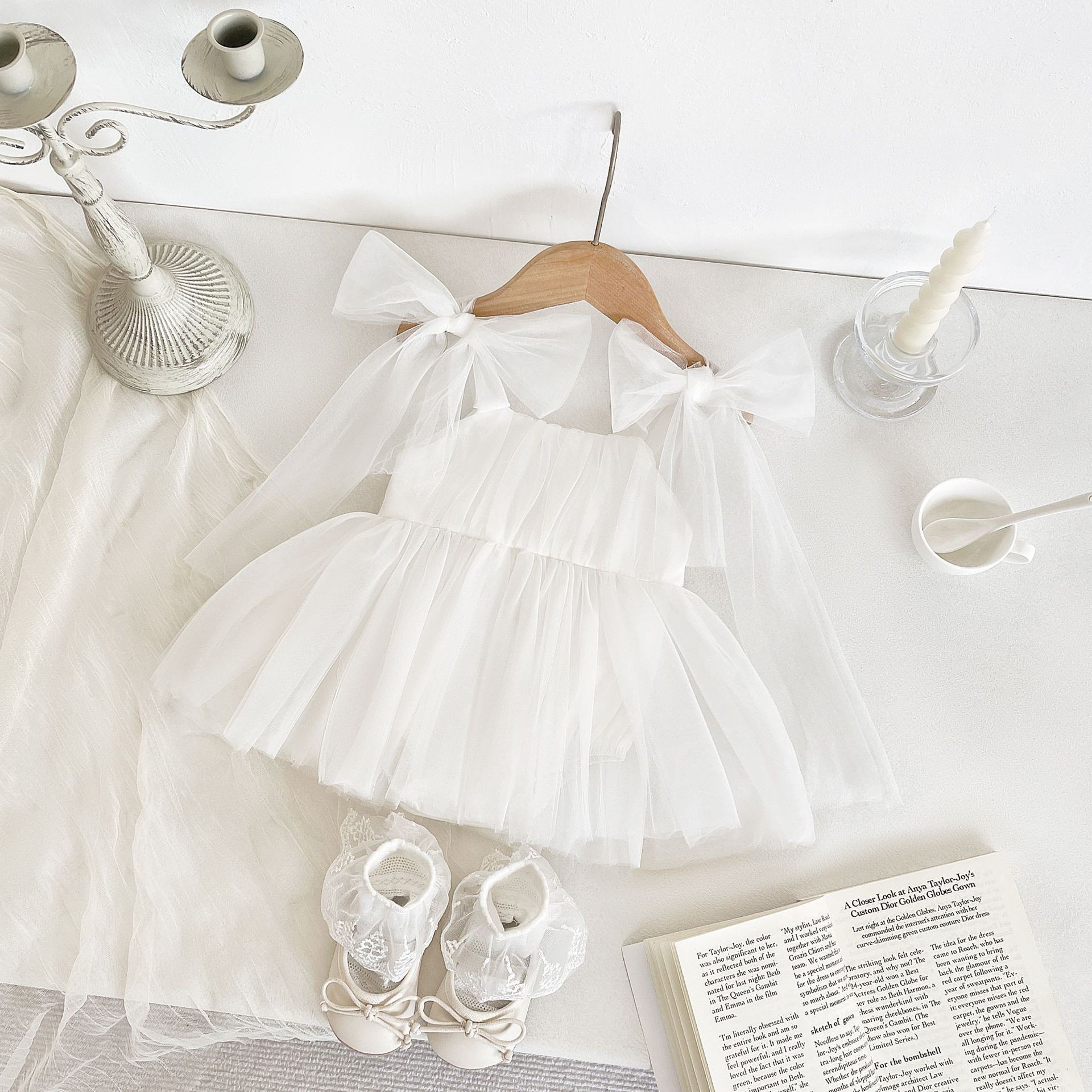 Ins2025 여름 아기 소녀 민소매 가방 방귀 하 옷 아기 메쉬 공주 치마 신생아 100 일 사진 원피스스토어 가기