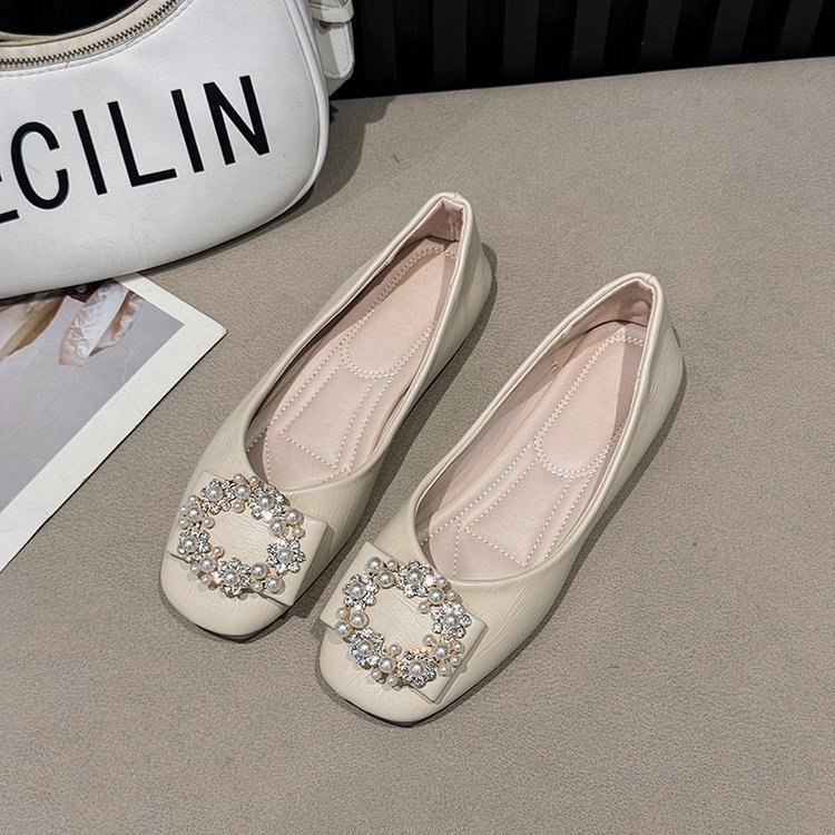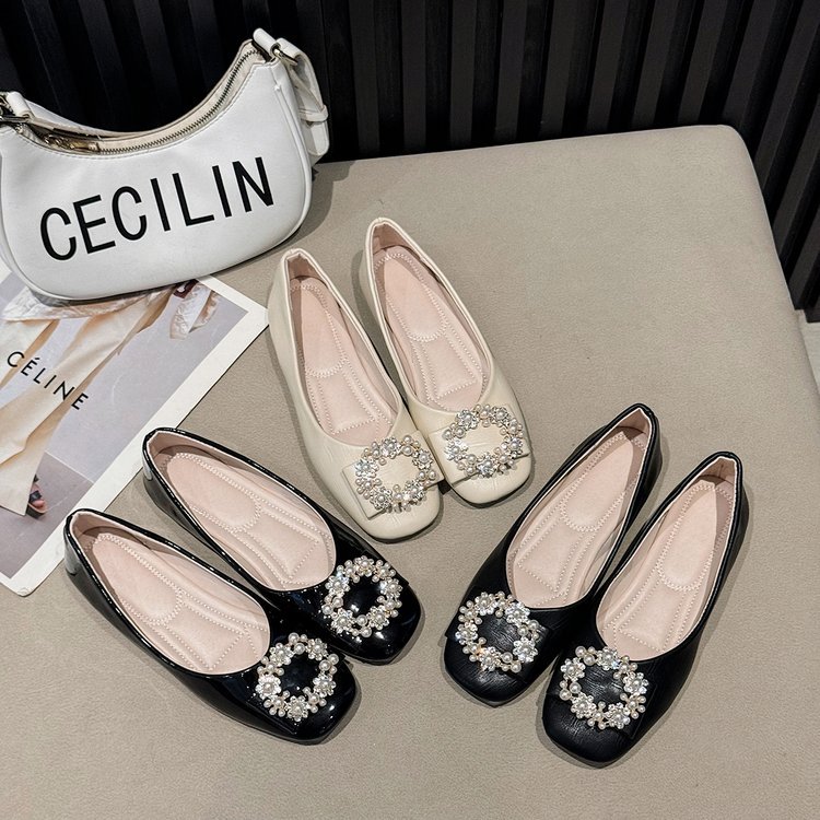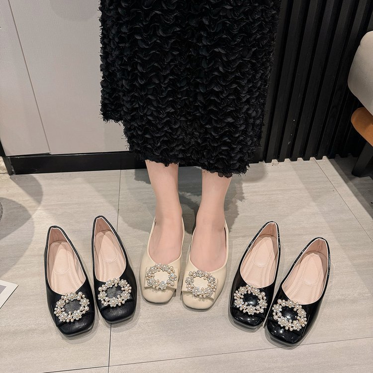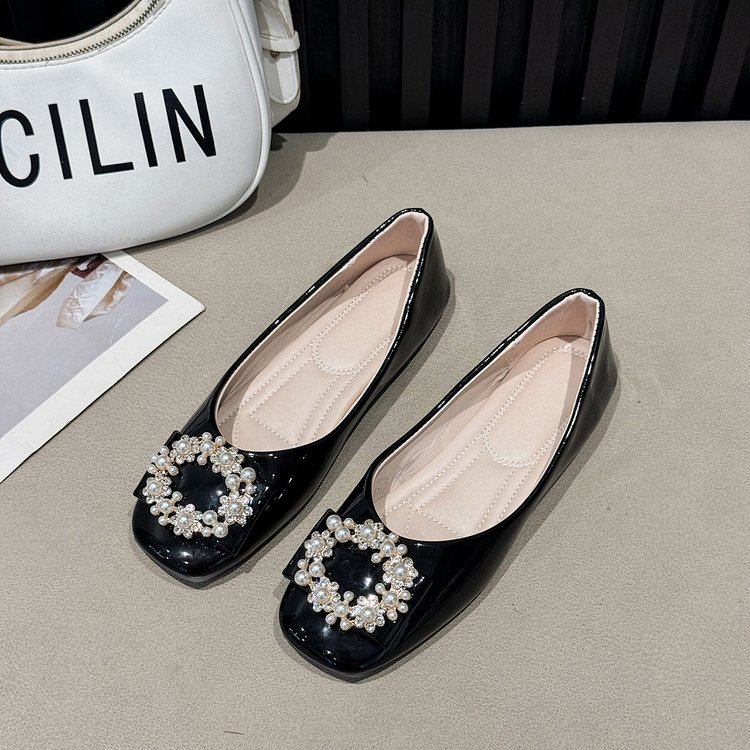 프랑스 하이 엔드 스타일 싱글 레이어 신발 여성 2025 봄 새로운 플랫 슈즈 스퀘어 발가락 입 요정 레이디 슈즈 소프트 하단 빈 신발스토어 가기