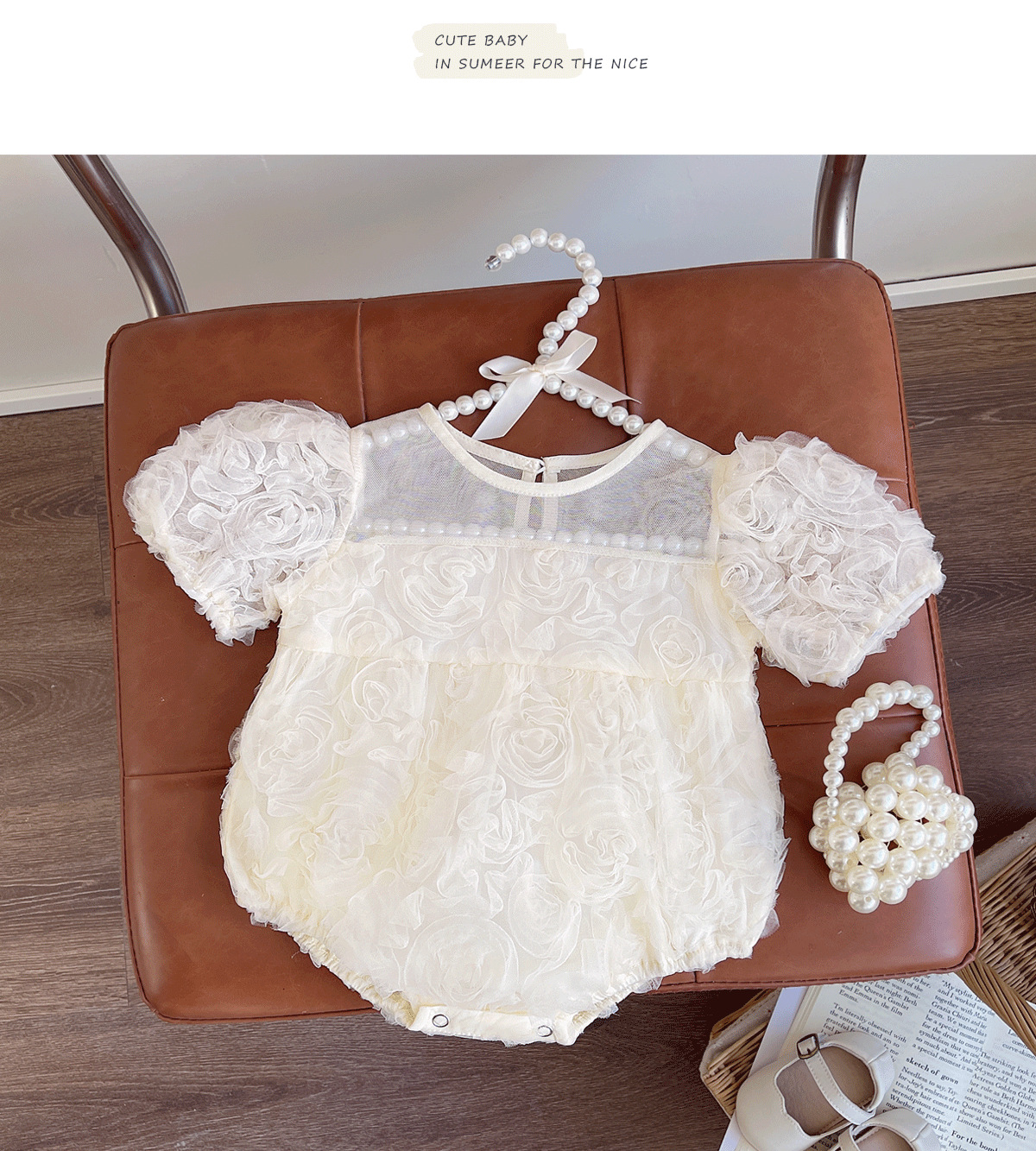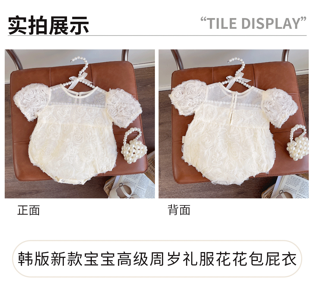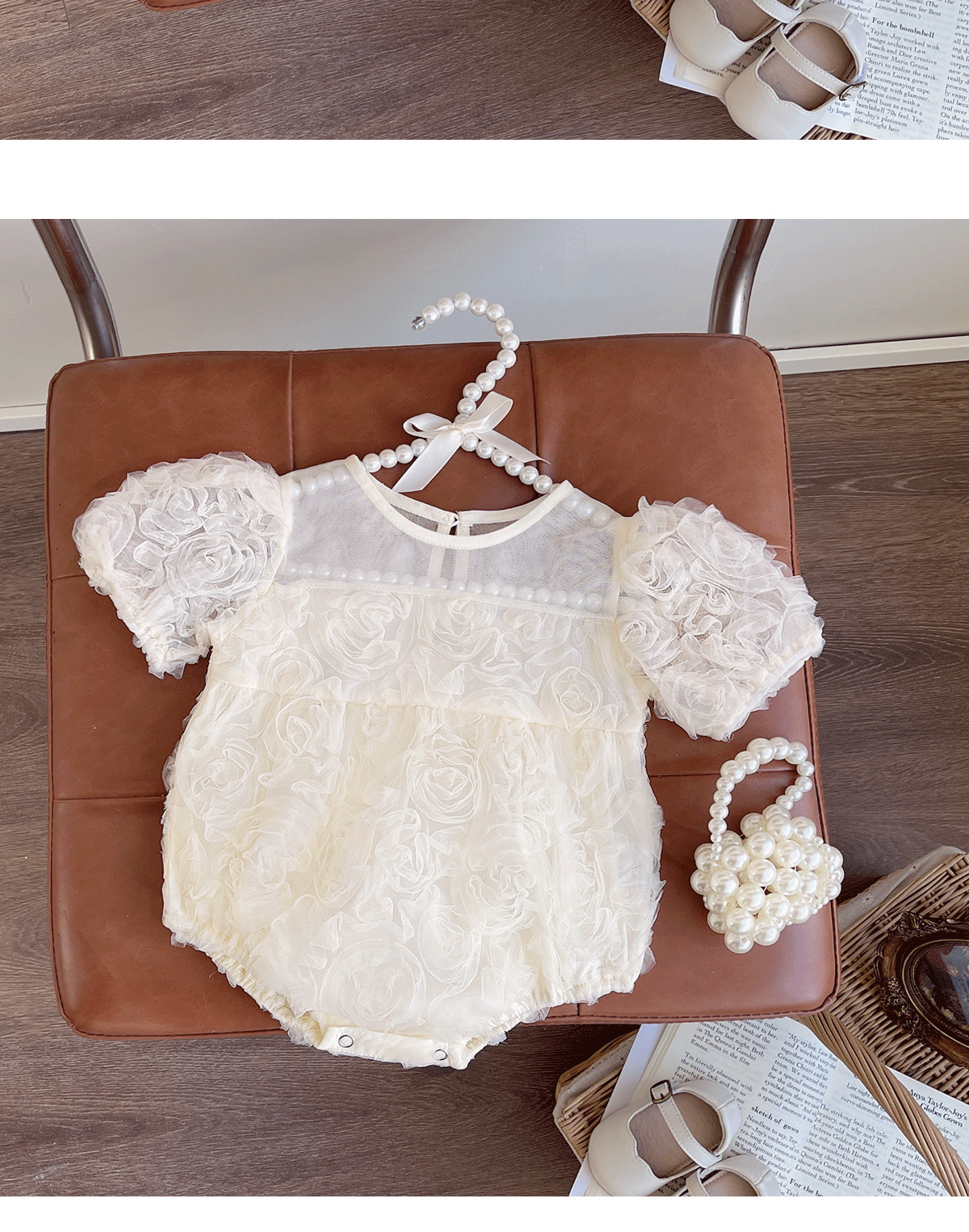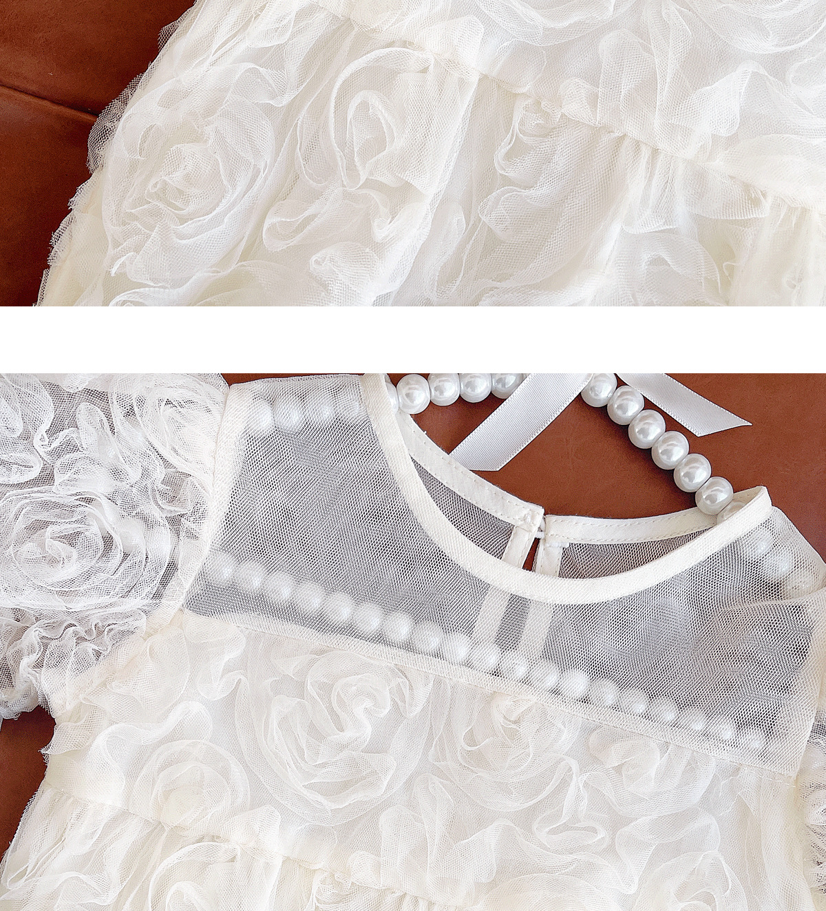 한국 스타일 Ins 여자 아기 스타일 3 차원 꽃 메쉬 퍼프 소매 원피스 아기와 유아 귀여운 공주 원피스스토어 가기