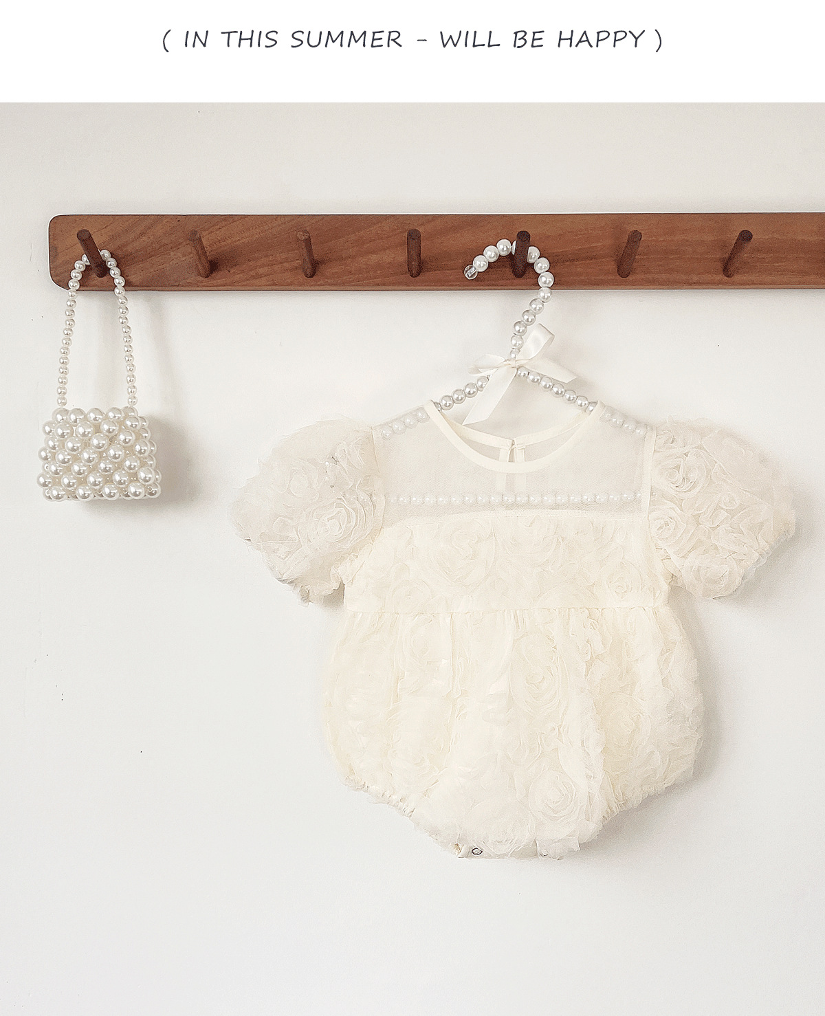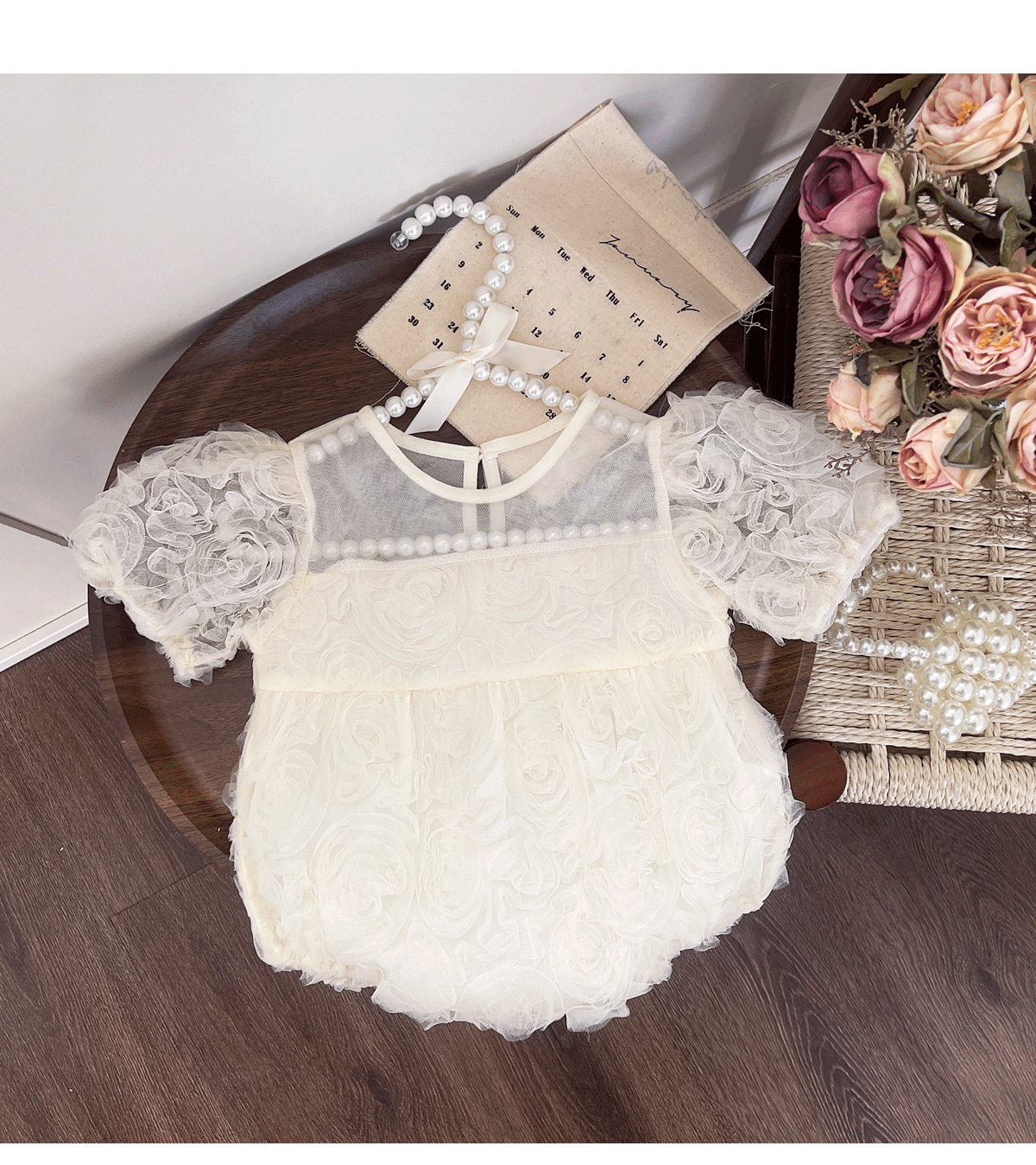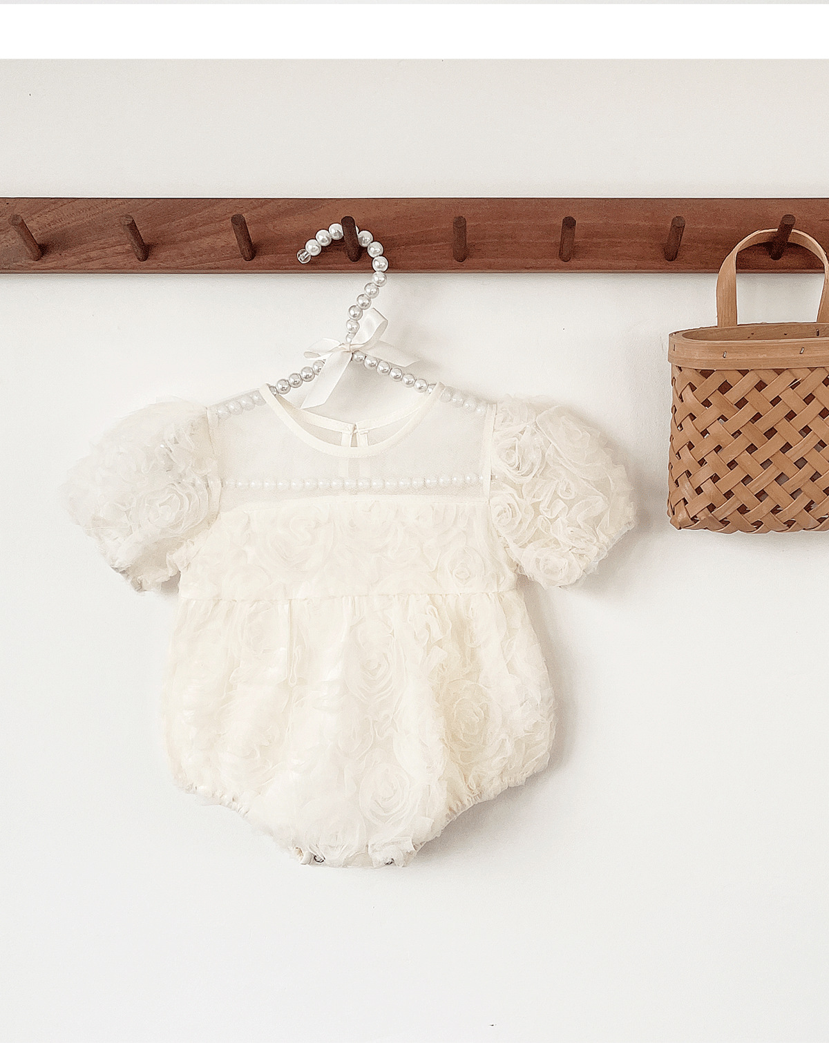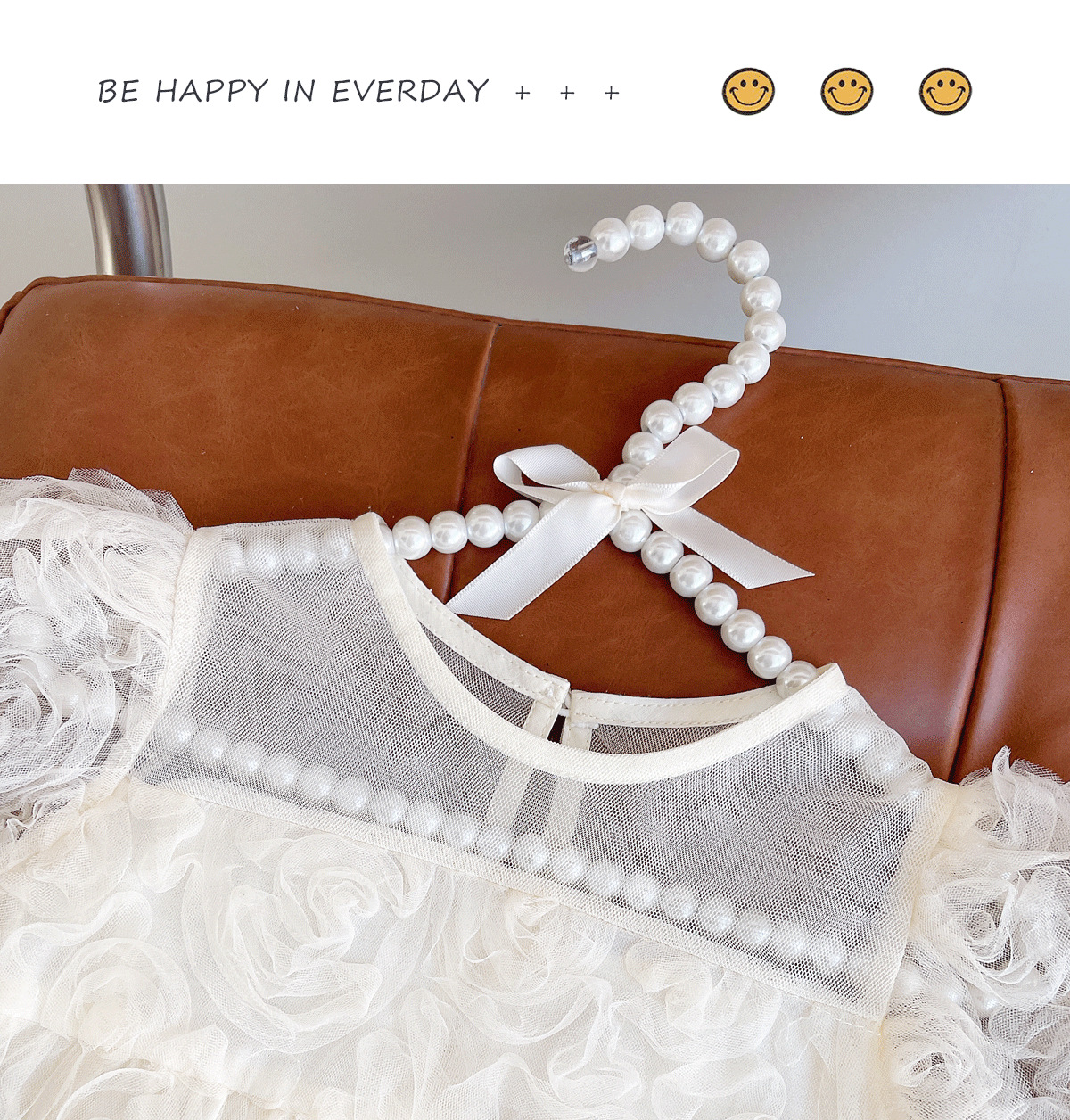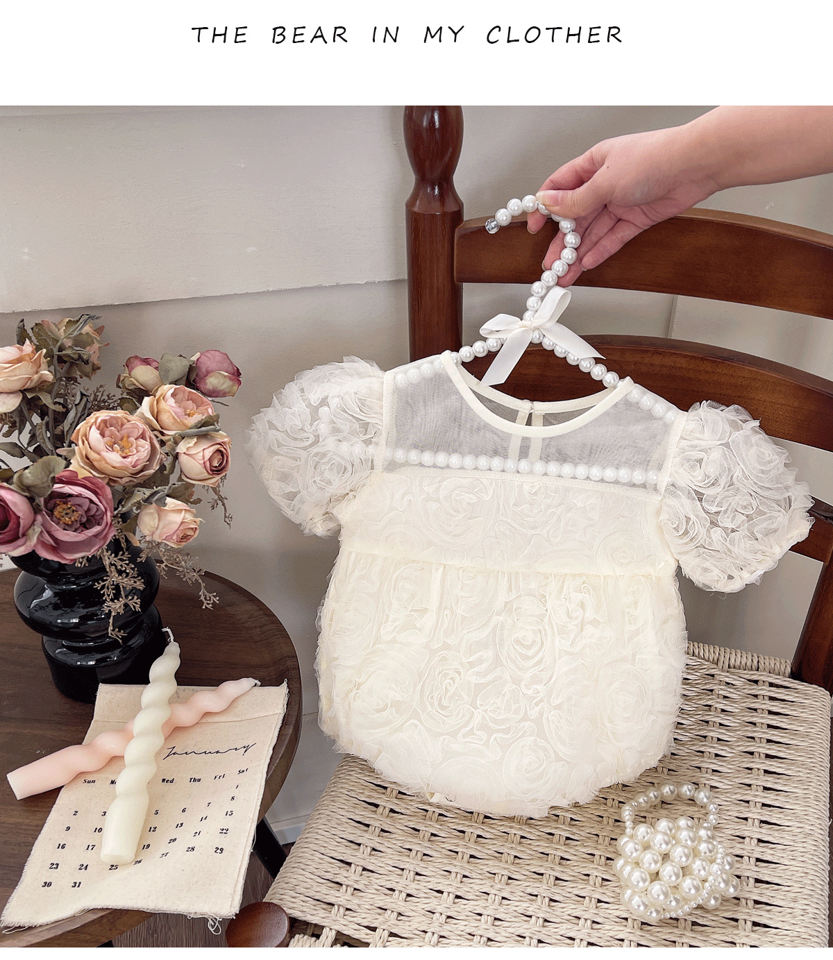 한국 스타일 Ins 여자 아기 스타일 3 차원 꽃 메쉬 퍼프 소매 원피스 아기와 유아 귀여운 공주 원피스스토어 가기