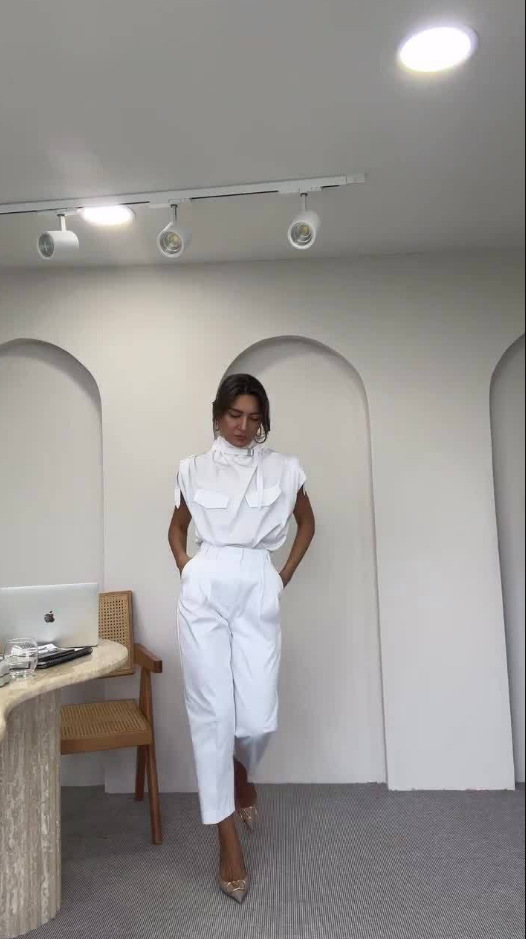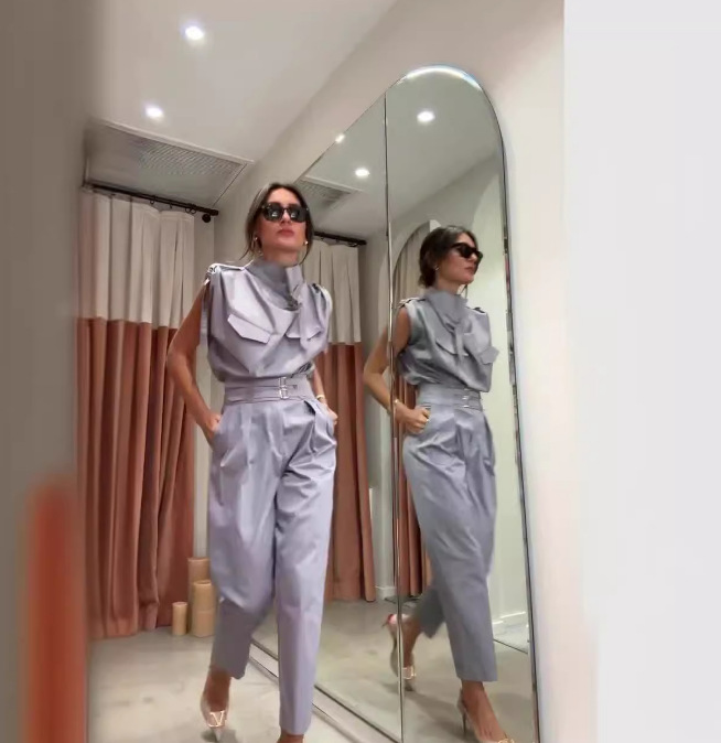 2025 여름 국경 유럽 및 미국 대외 무역 여성 U-칼라 민소매 솔리드 컬러 와이드 레그 팬츠 기질 통근 패션 세트스토어 가기