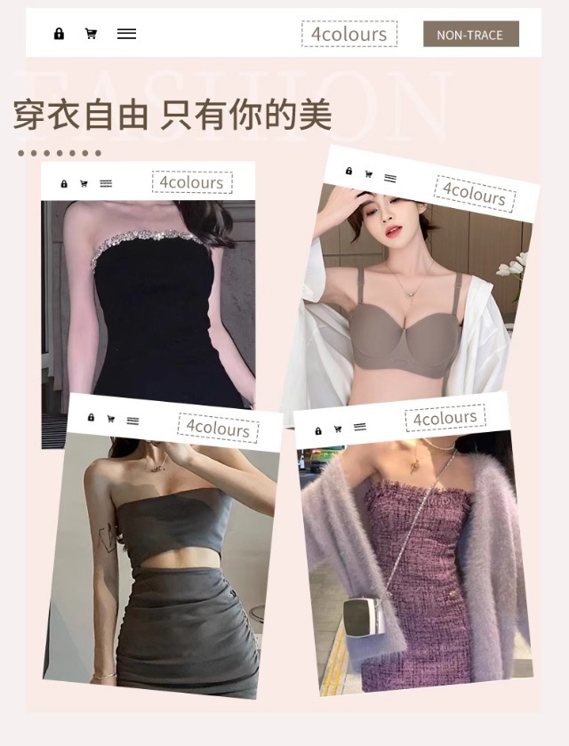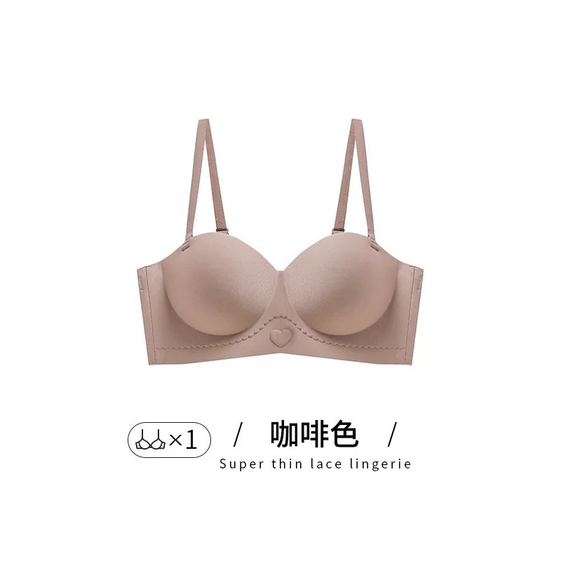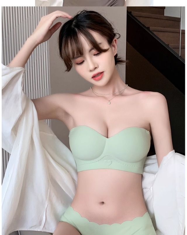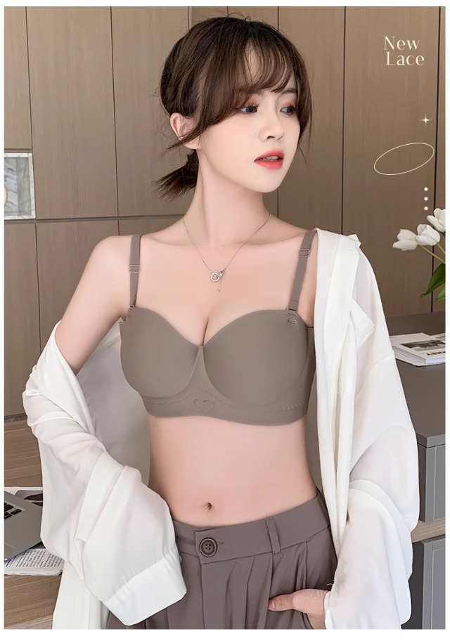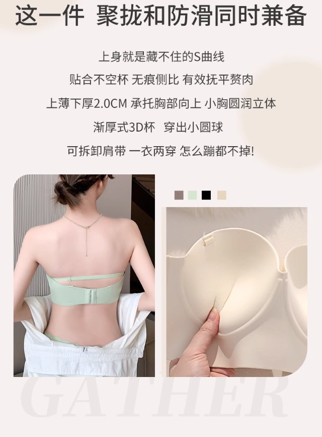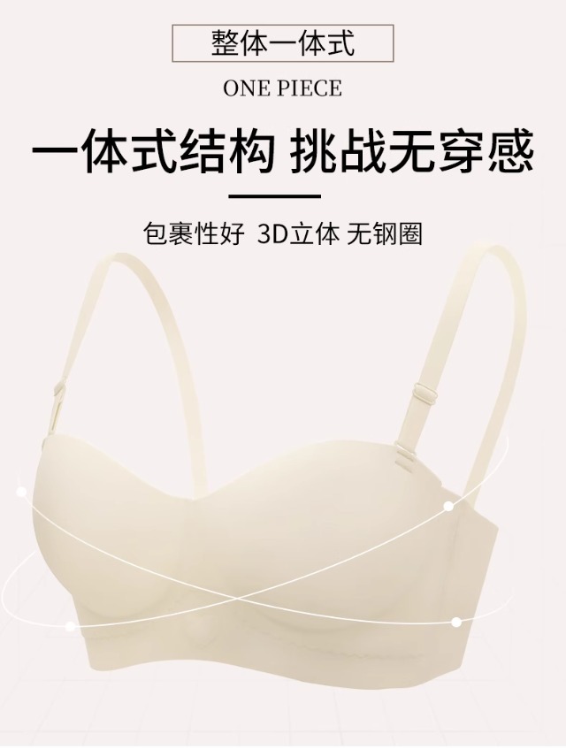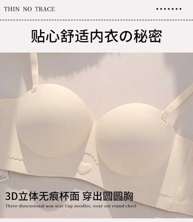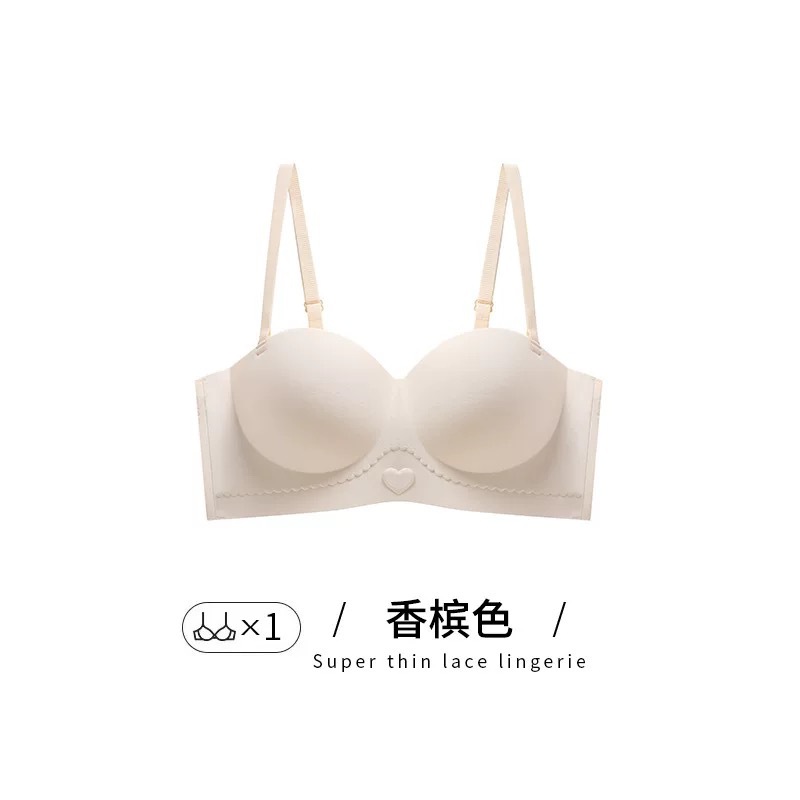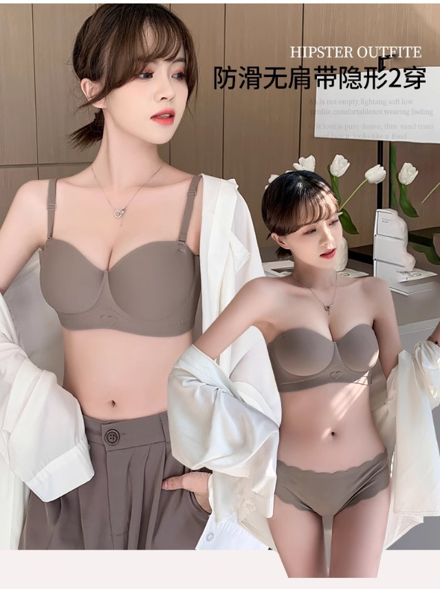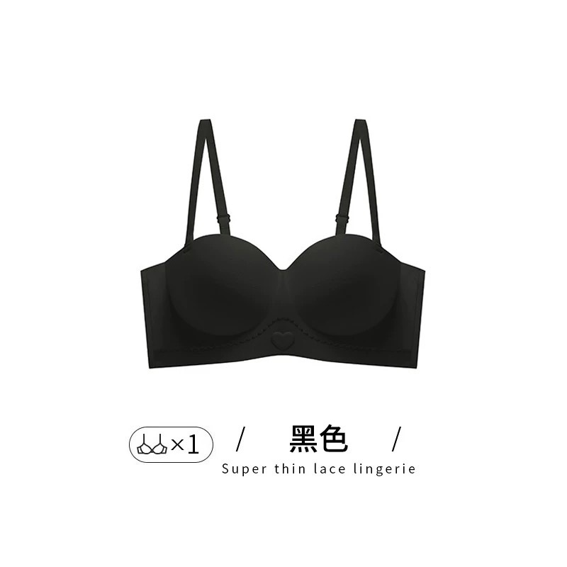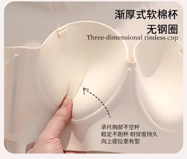 Traceless 속옷 여성의 작은 가슴 골짜기 끈이없는 하프 컵 두꺼운 Parammary 유방 비 스트랩 비 슬립 비 스틸 링 브라