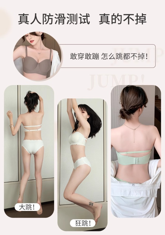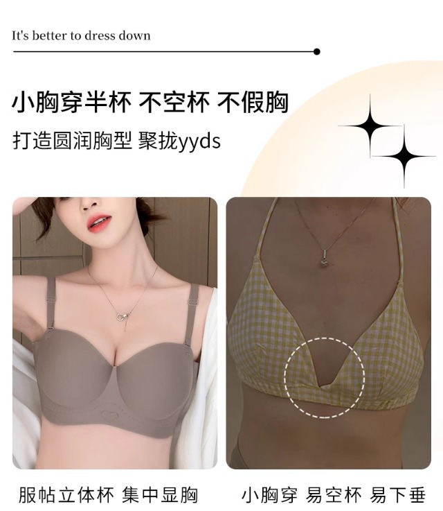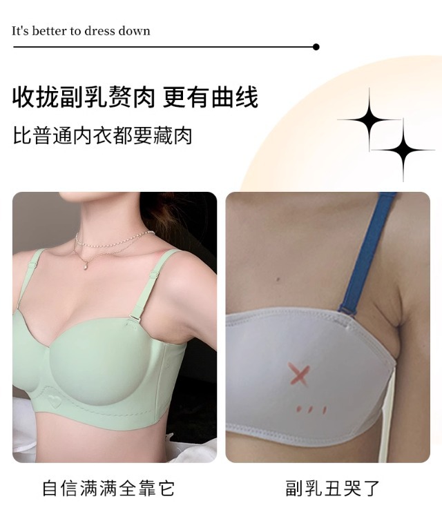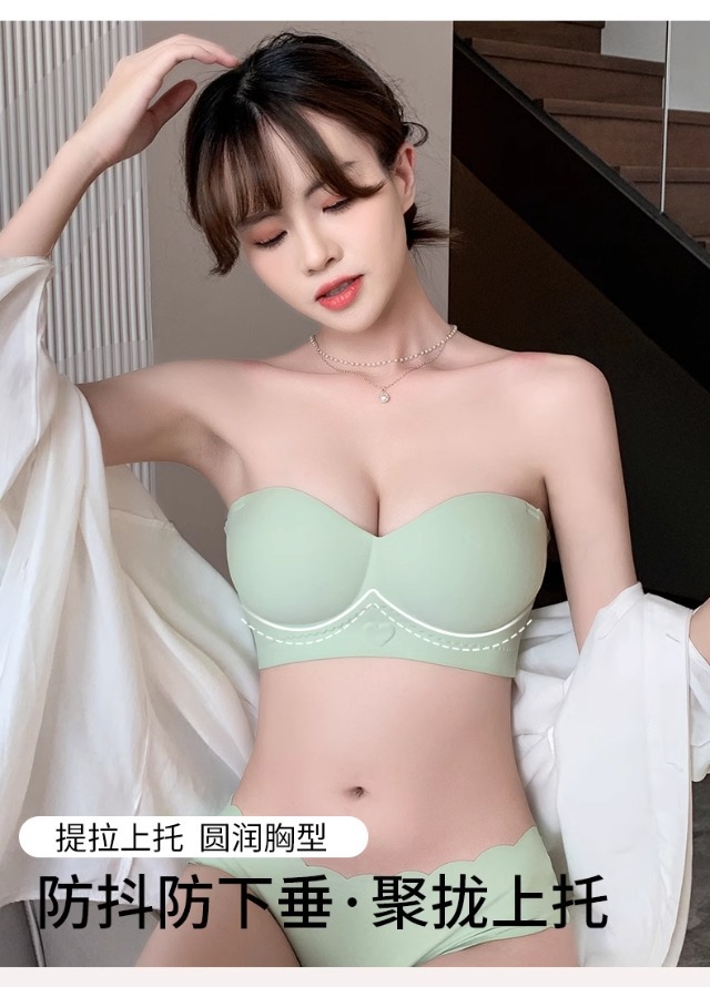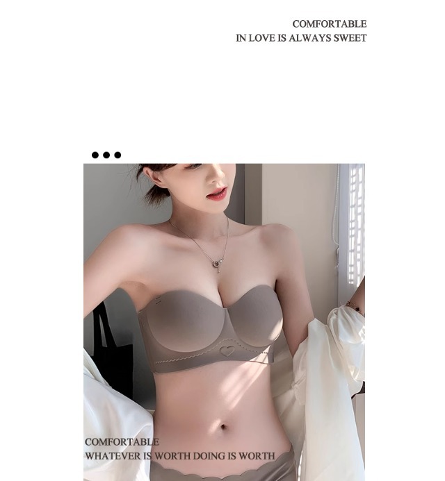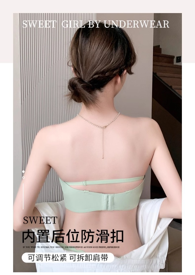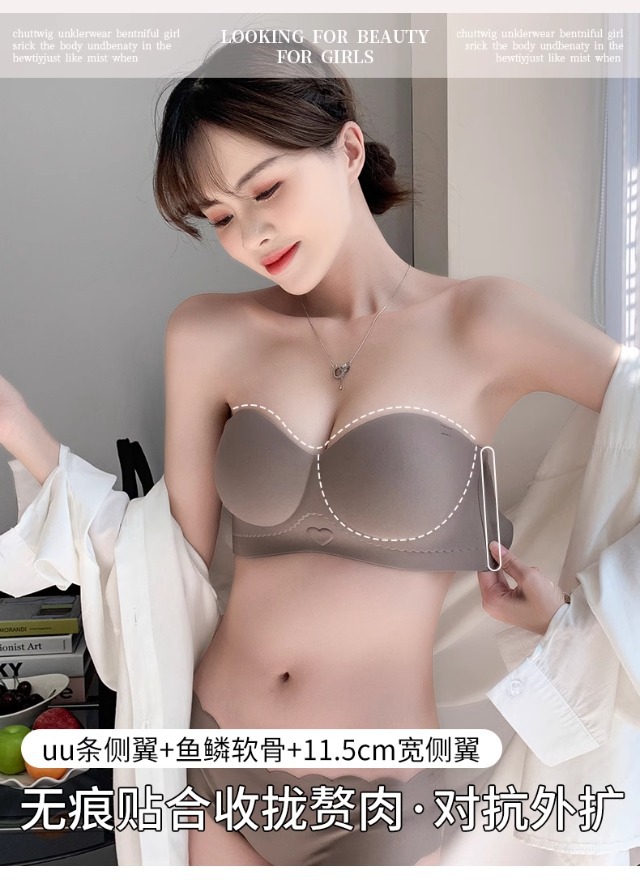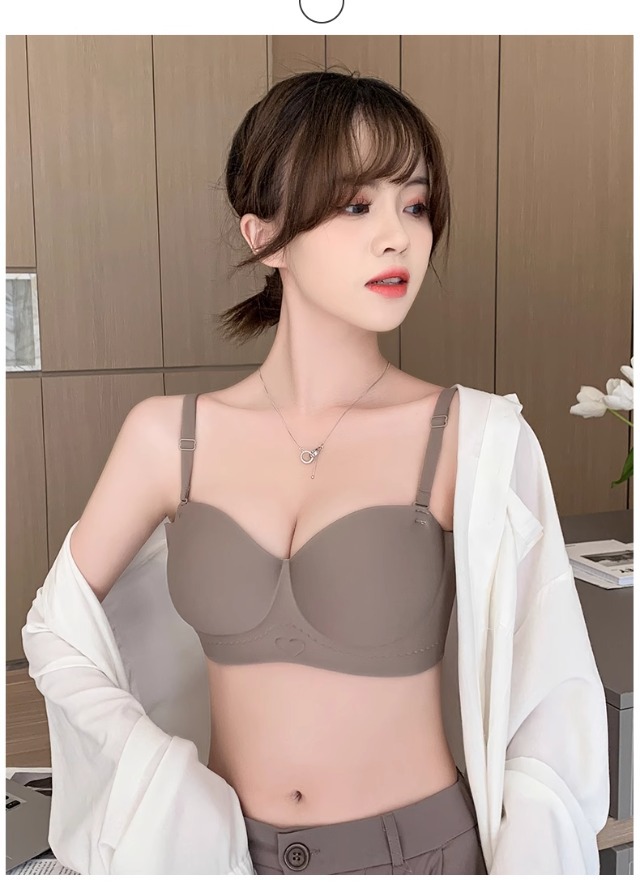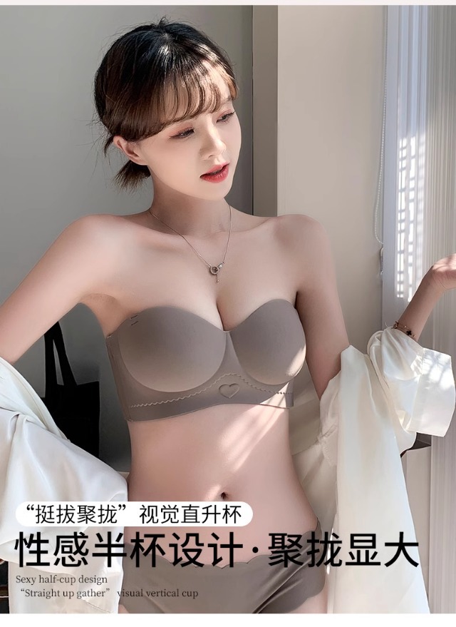 Traceless 속옷 여성의 작은 가슴 골짜기 끈이없는 하프 컵 두꺼운 Parammary 유방 비 스트랩 비 슬립 비 스틸 링 브라스토어 가기