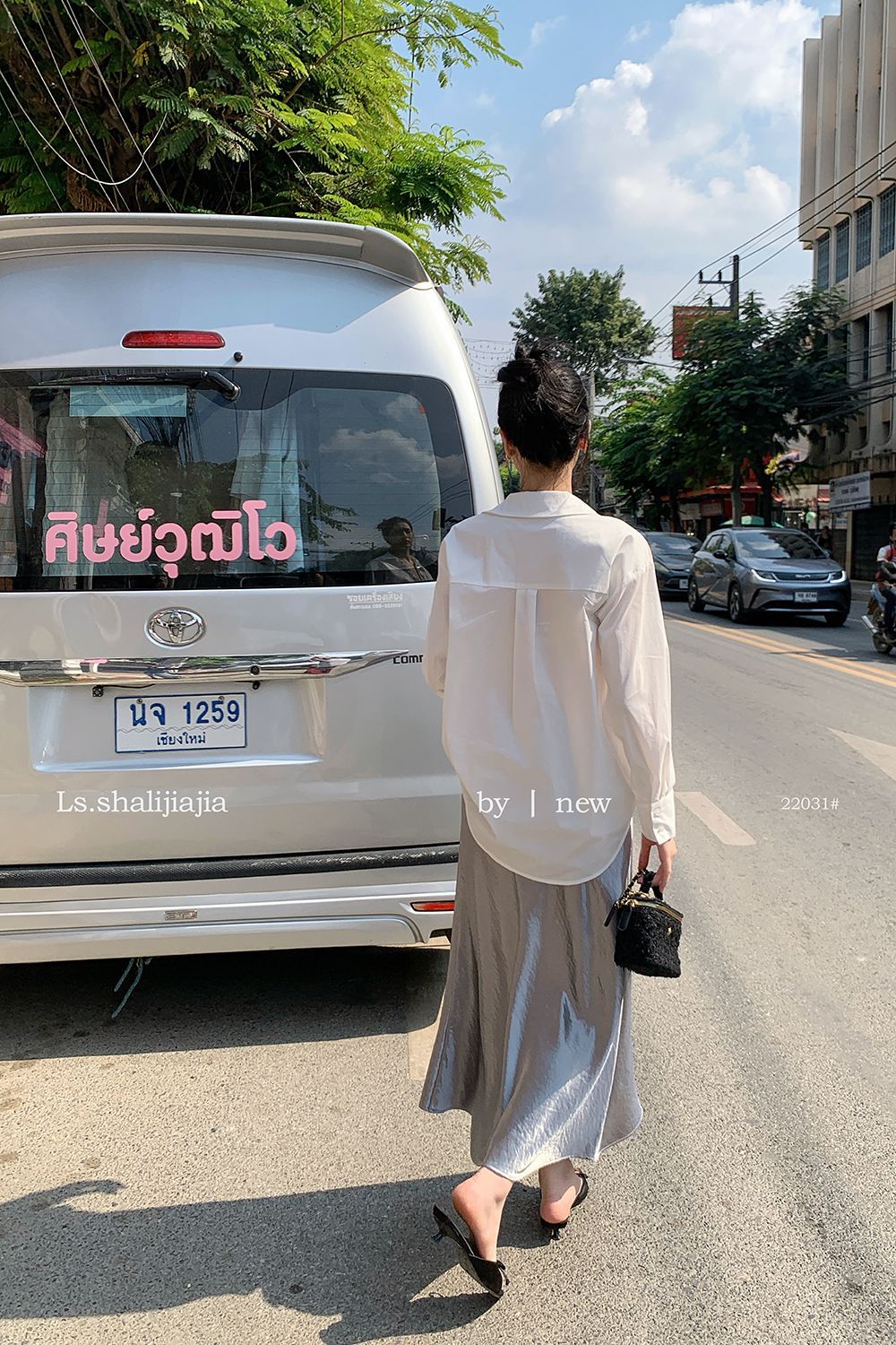 봄과 여름 2025 새로운 프랑스 스타일 절묘한 하이 엔드 우아한 U 칼라 구슬 꽃 셔츠 느슨한 간단한 패션 상단스토어 가기