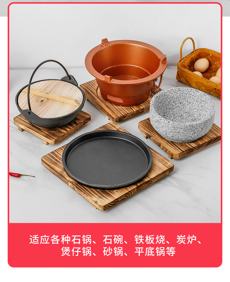 철판 우드 보드 열 절연 바베큐 돌 그릇 돌 냄비 굽기 판 나무 패드 숯 연소 판 캐서롤 트레이 상업용 플레이트스토어 가기