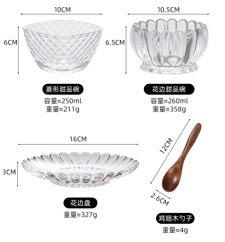 • 둥근 평면 투명 그릇 + 트레이 + 스푼