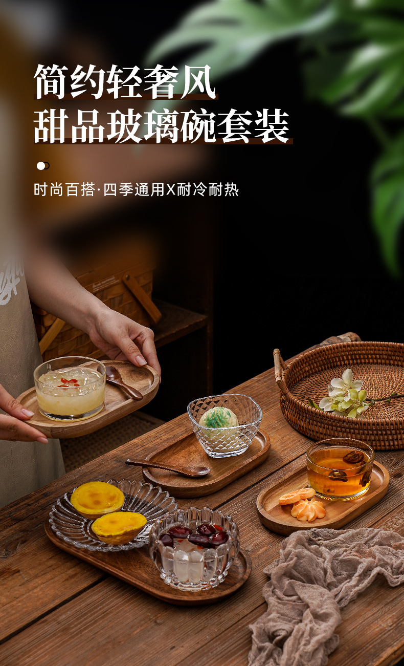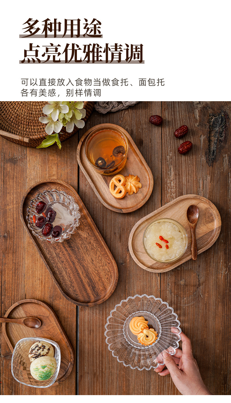 2023 새로운 아침 식사 그릇 스푼 라이트 럭셔리 나무 트레이 사워 컵 애프터눈 티 살라 보울 디저트 그릇 세트스토어 가기