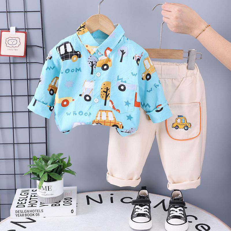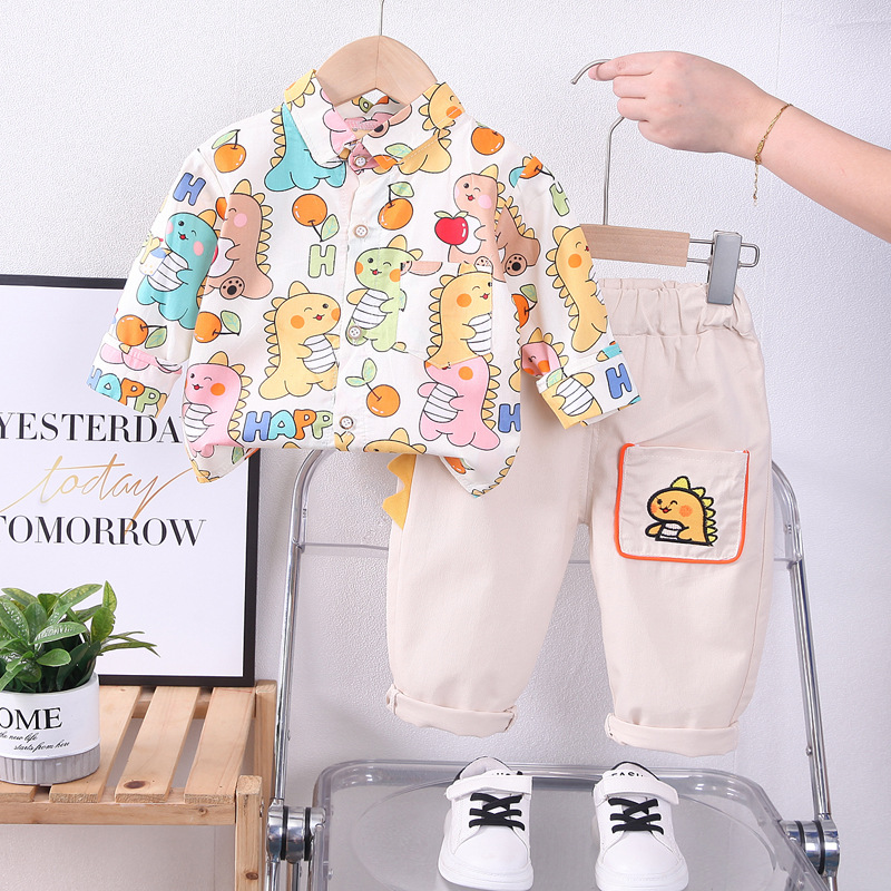 국경 간 아동복 셔츠 얇은 봄 2025 남학생과 여학생 세트 1-4 세 3 만화 옷 투피스 도매스토어 가기