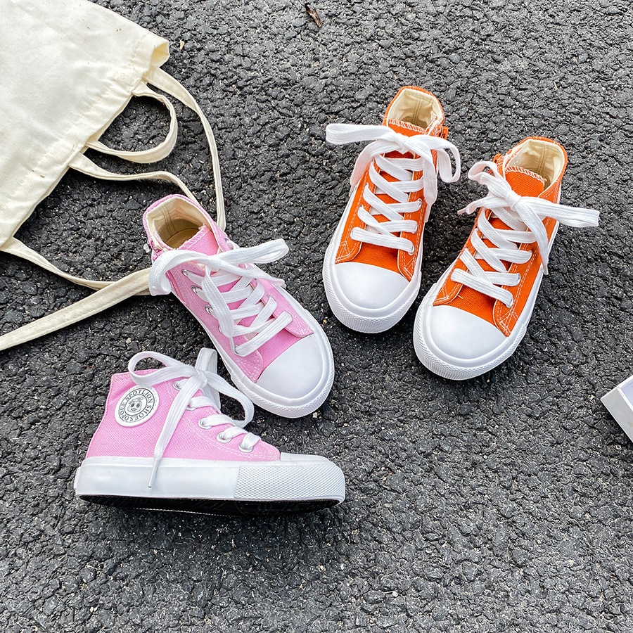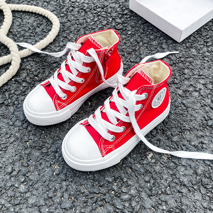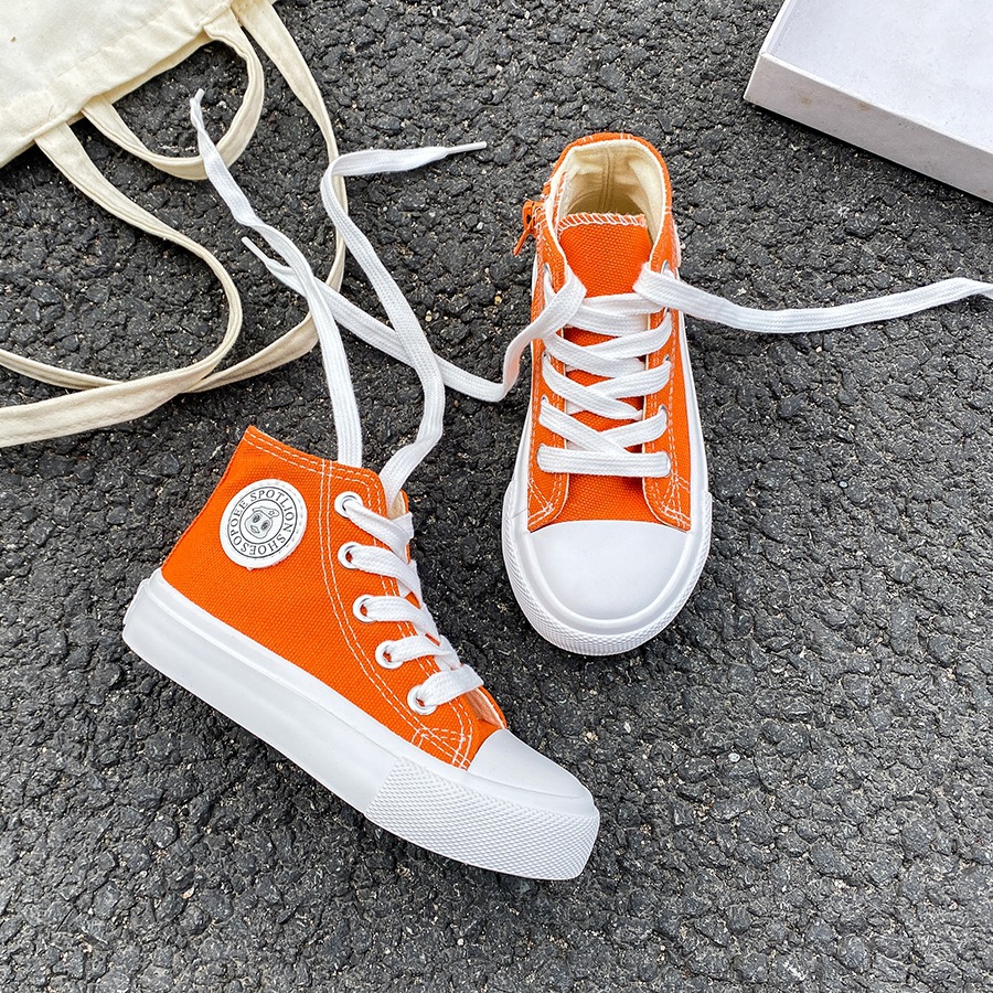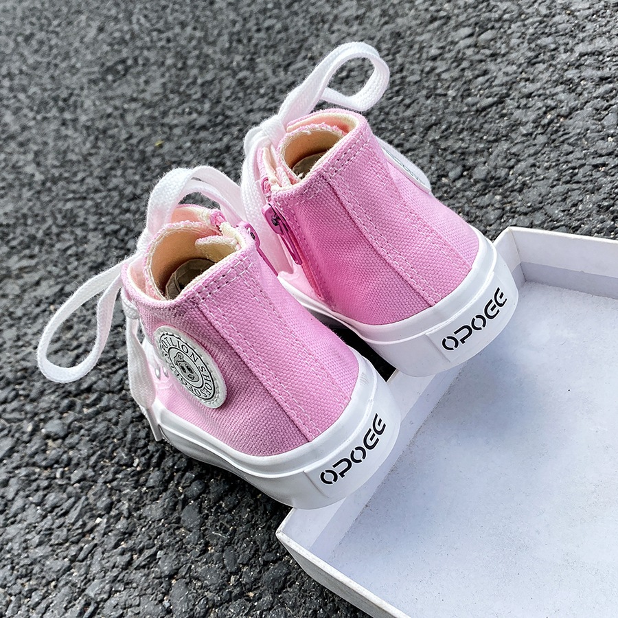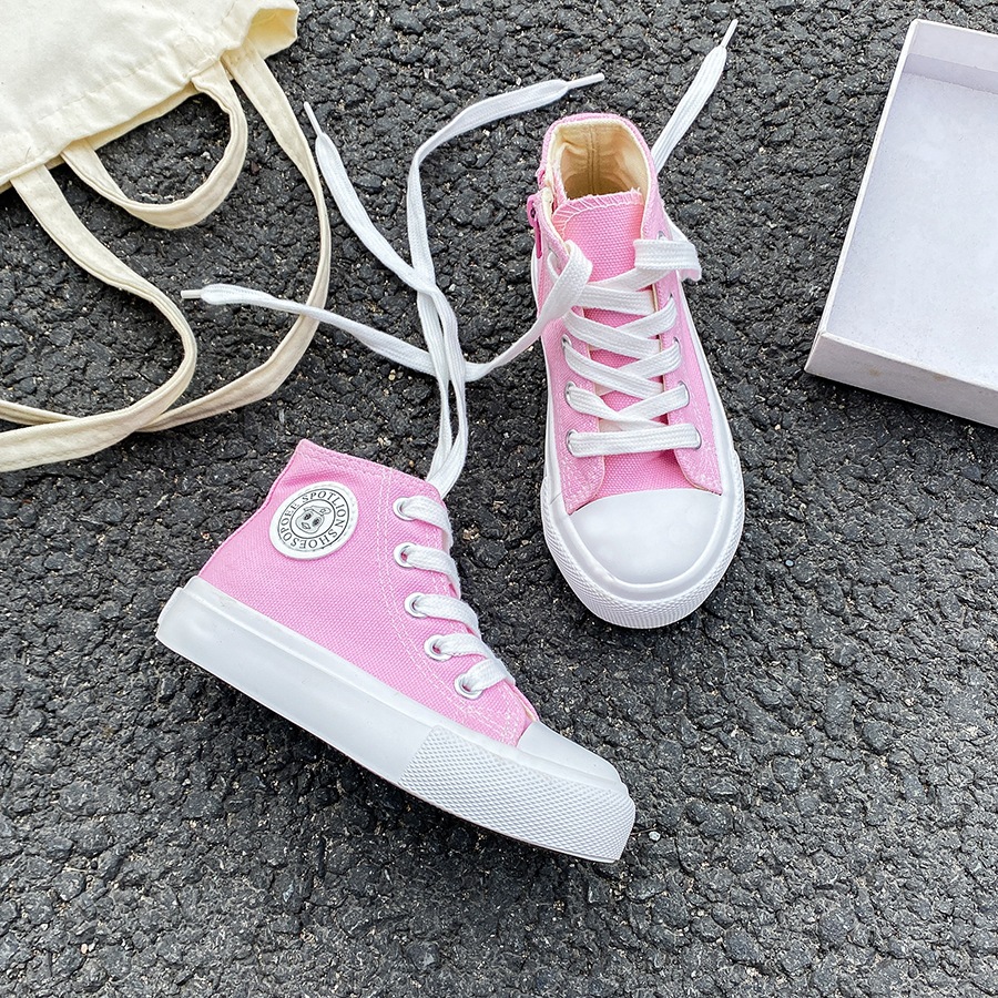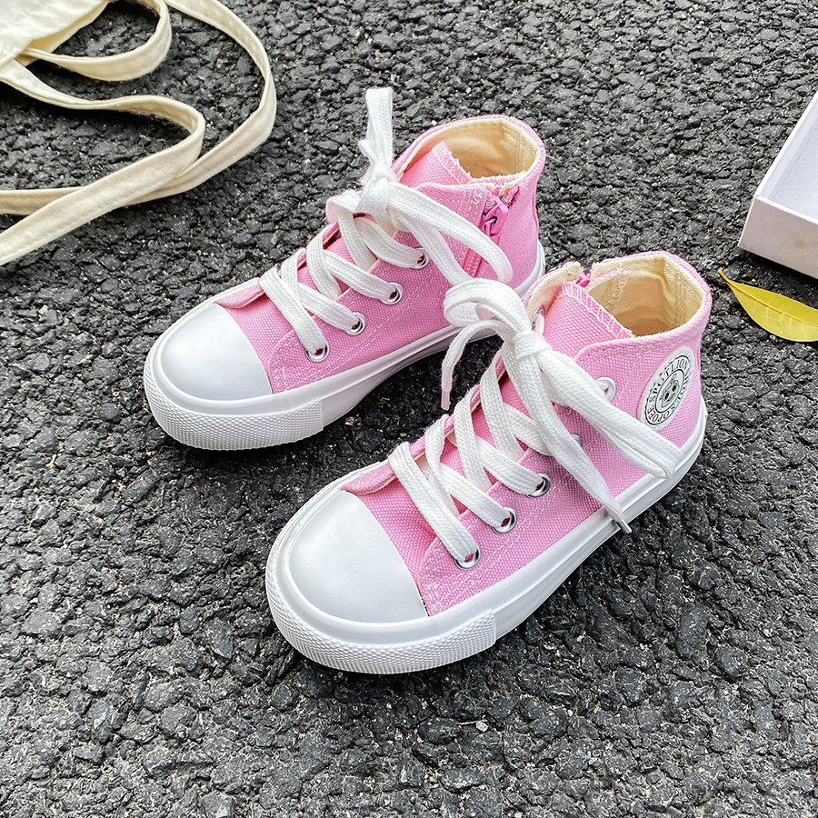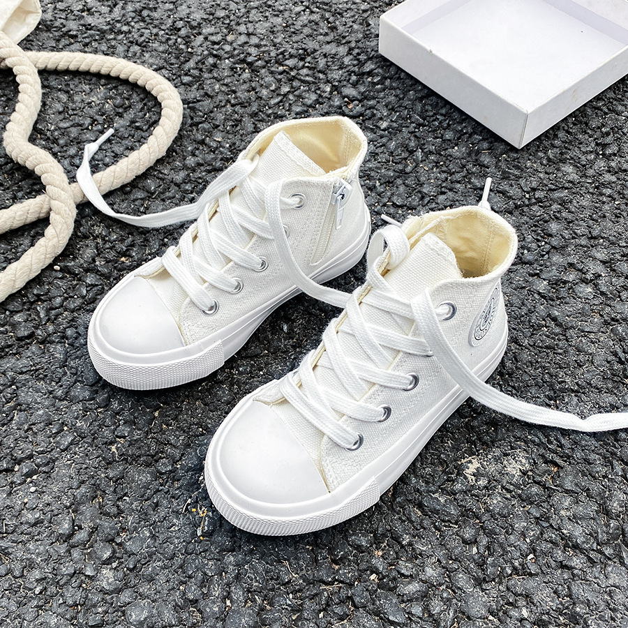 2025 봄 패션 어린이 사이드 지퍼 신발 여자 한국 편안한 캐주얼 신발 소년 하이 캔버스 신발스토어 가기