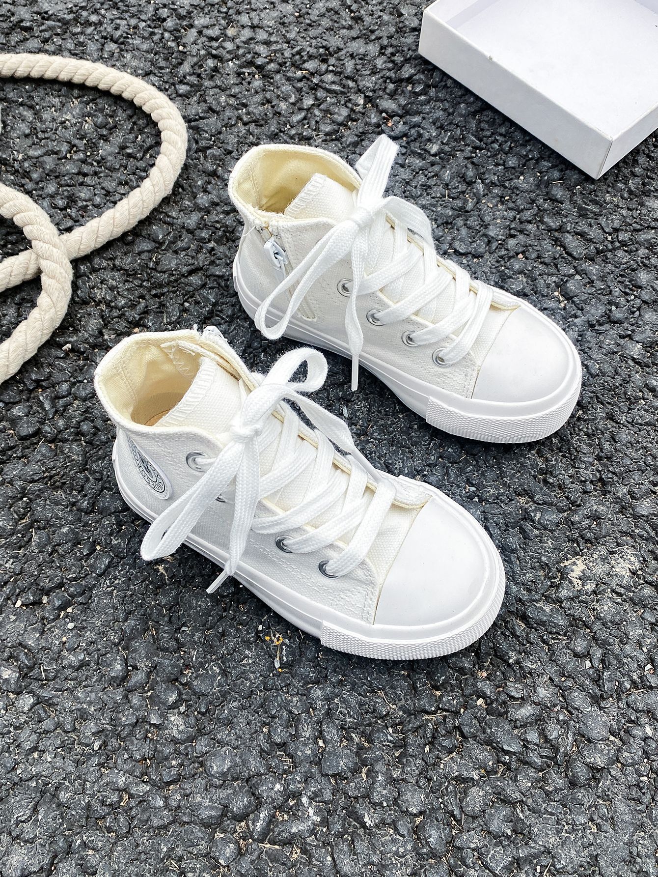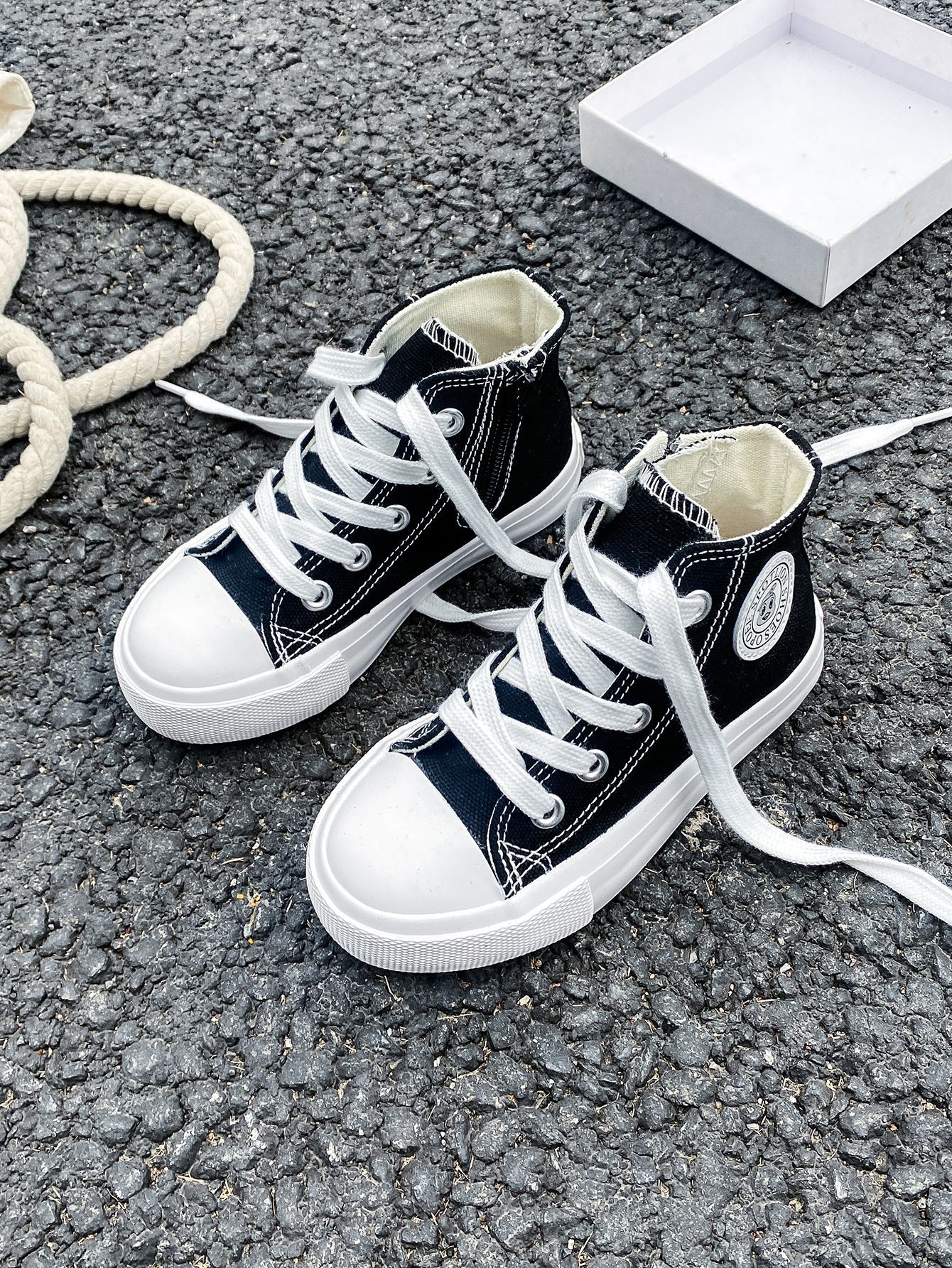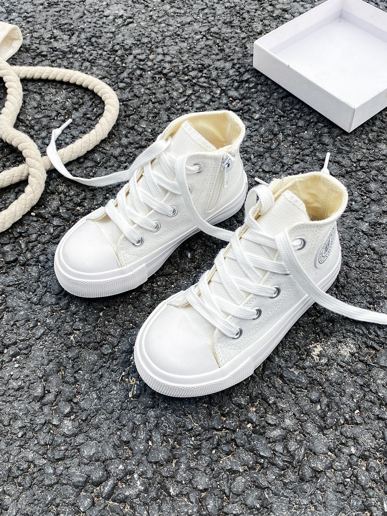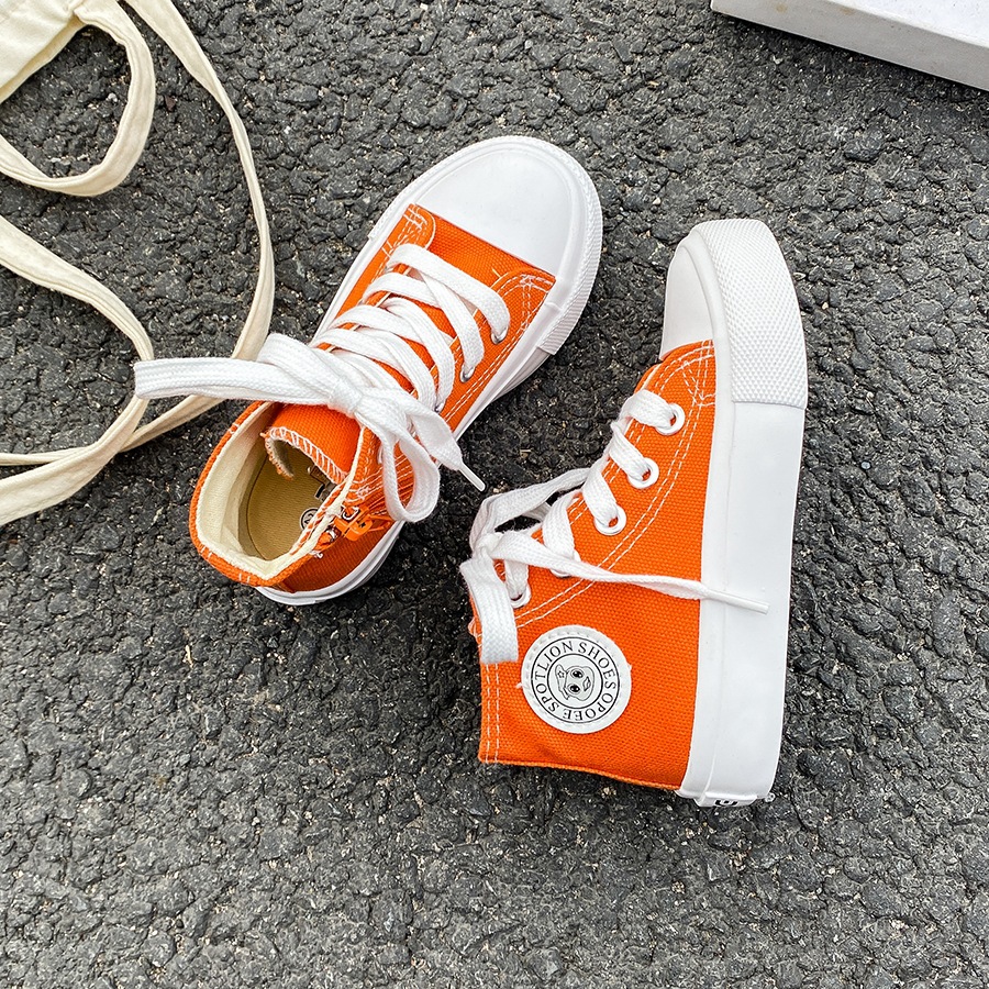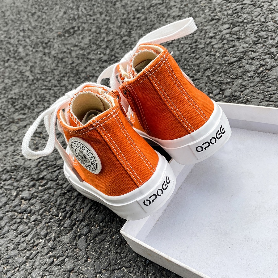 2025 봄 패션 어린이 사이드 지퍼 신발 여자 한국 편안한 캐주얼 신발 소년 하이 캔버스 신발스토어 가기