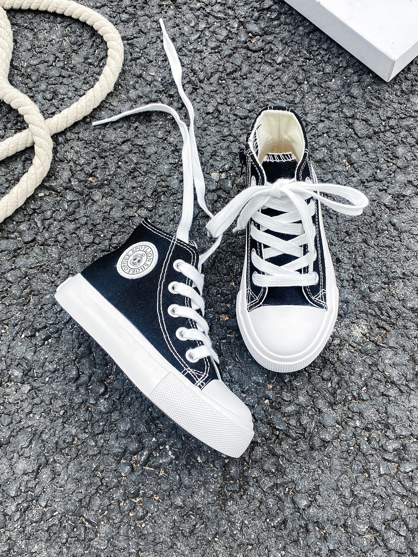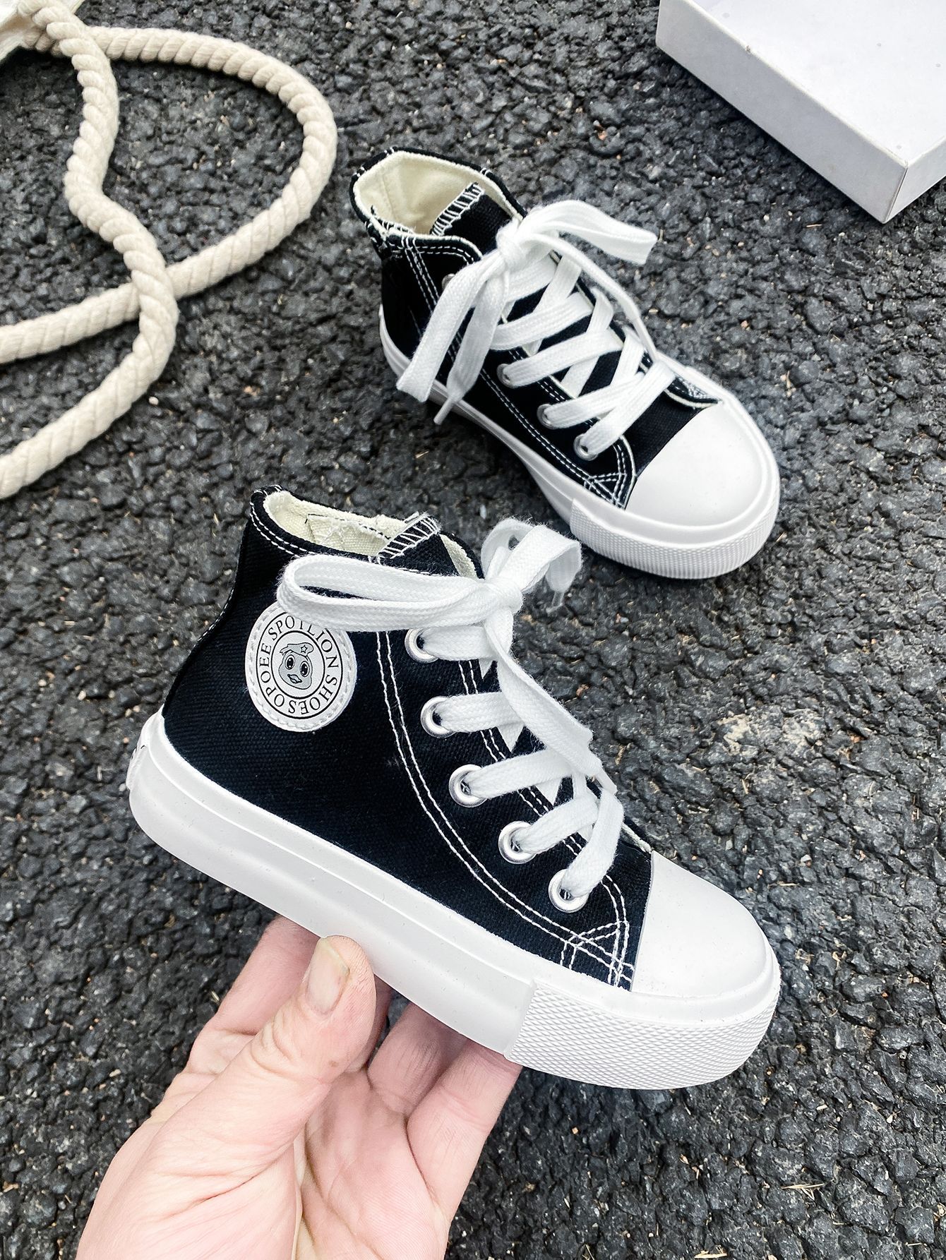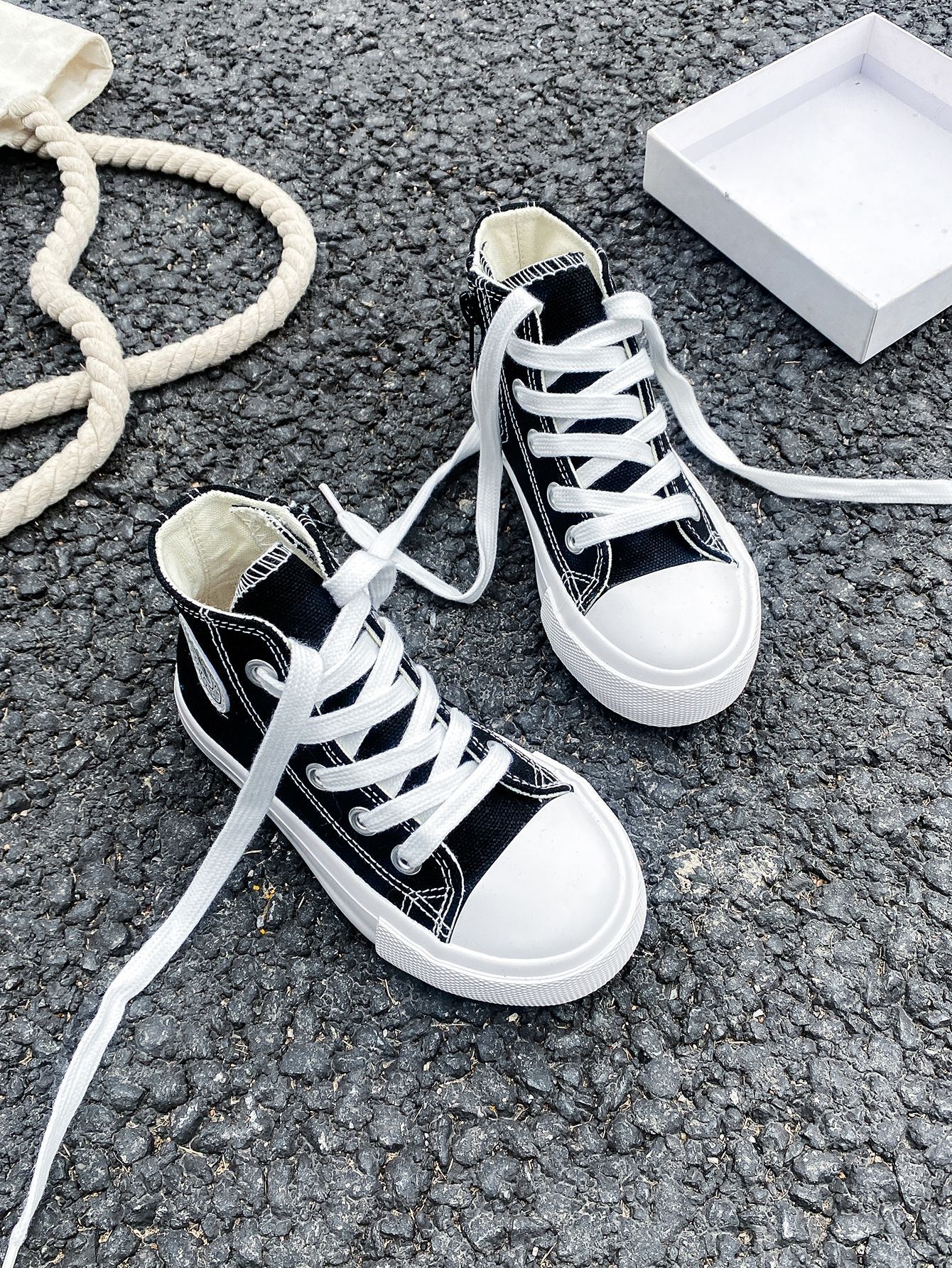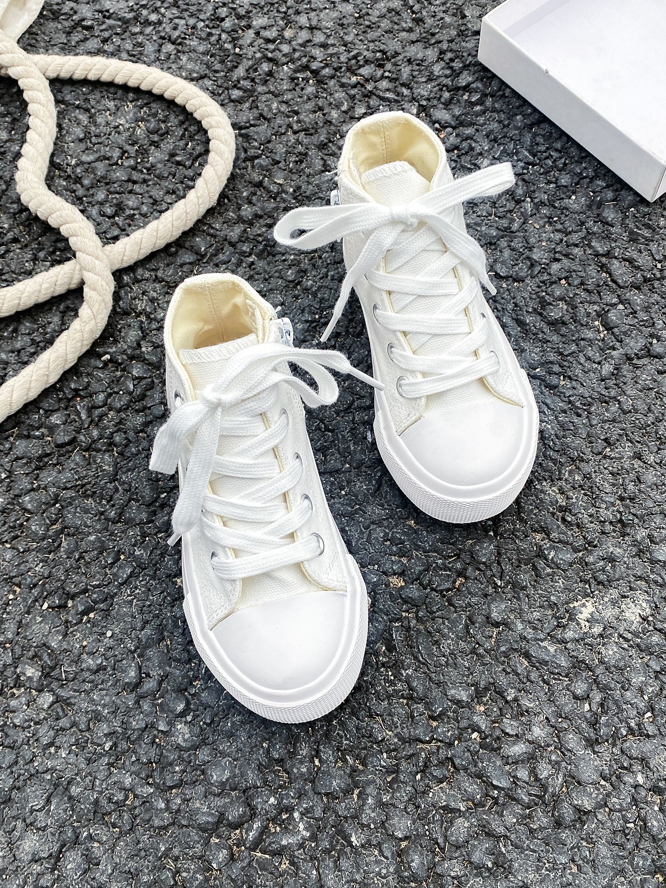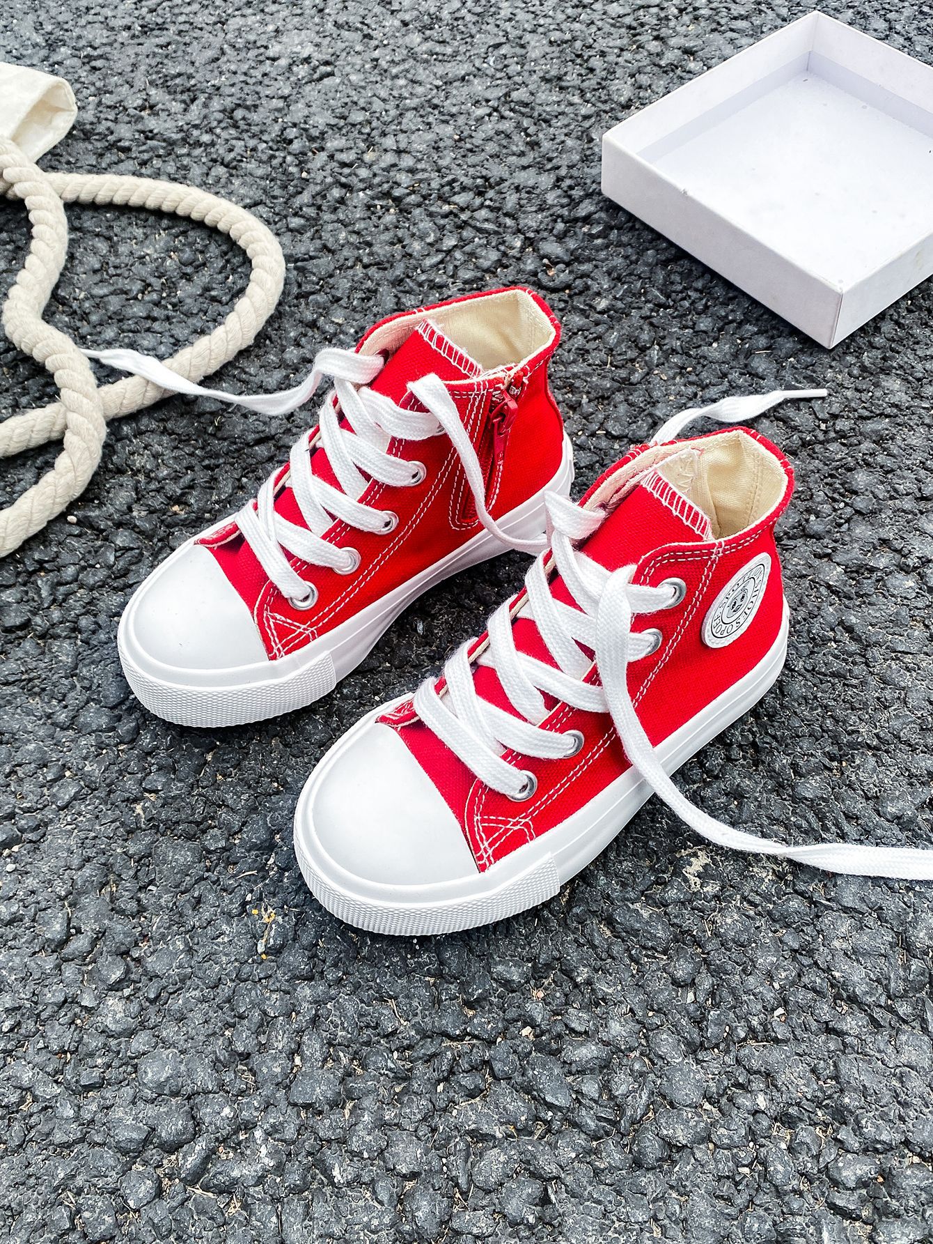 2025 봄 패션 어린이 사이드 지퍼 신발 여자 한국 편안한 캐주얼 신발 소년 하이 캔버스 신발스토어 가기