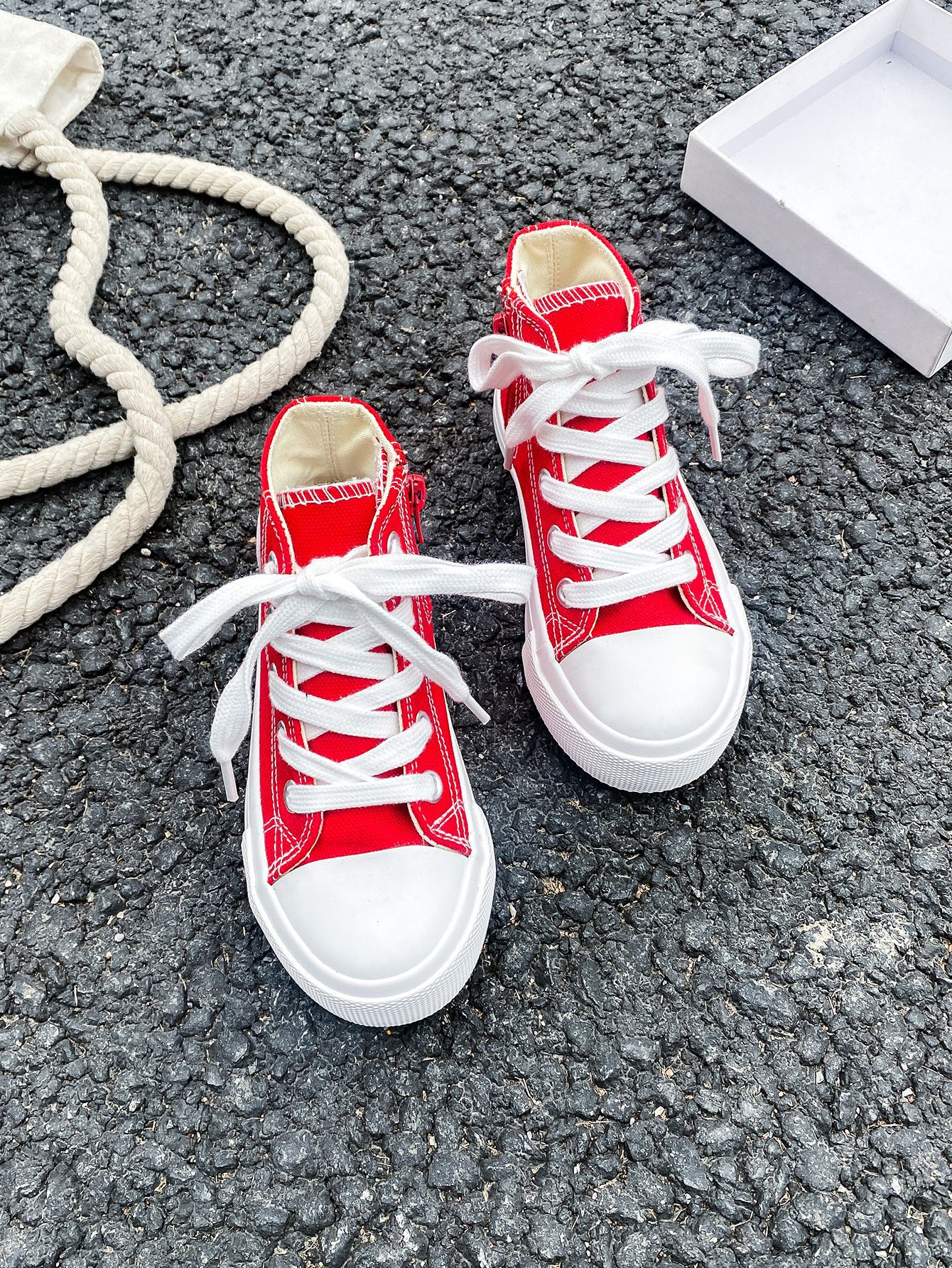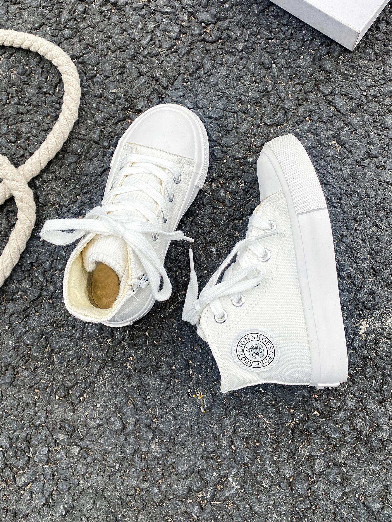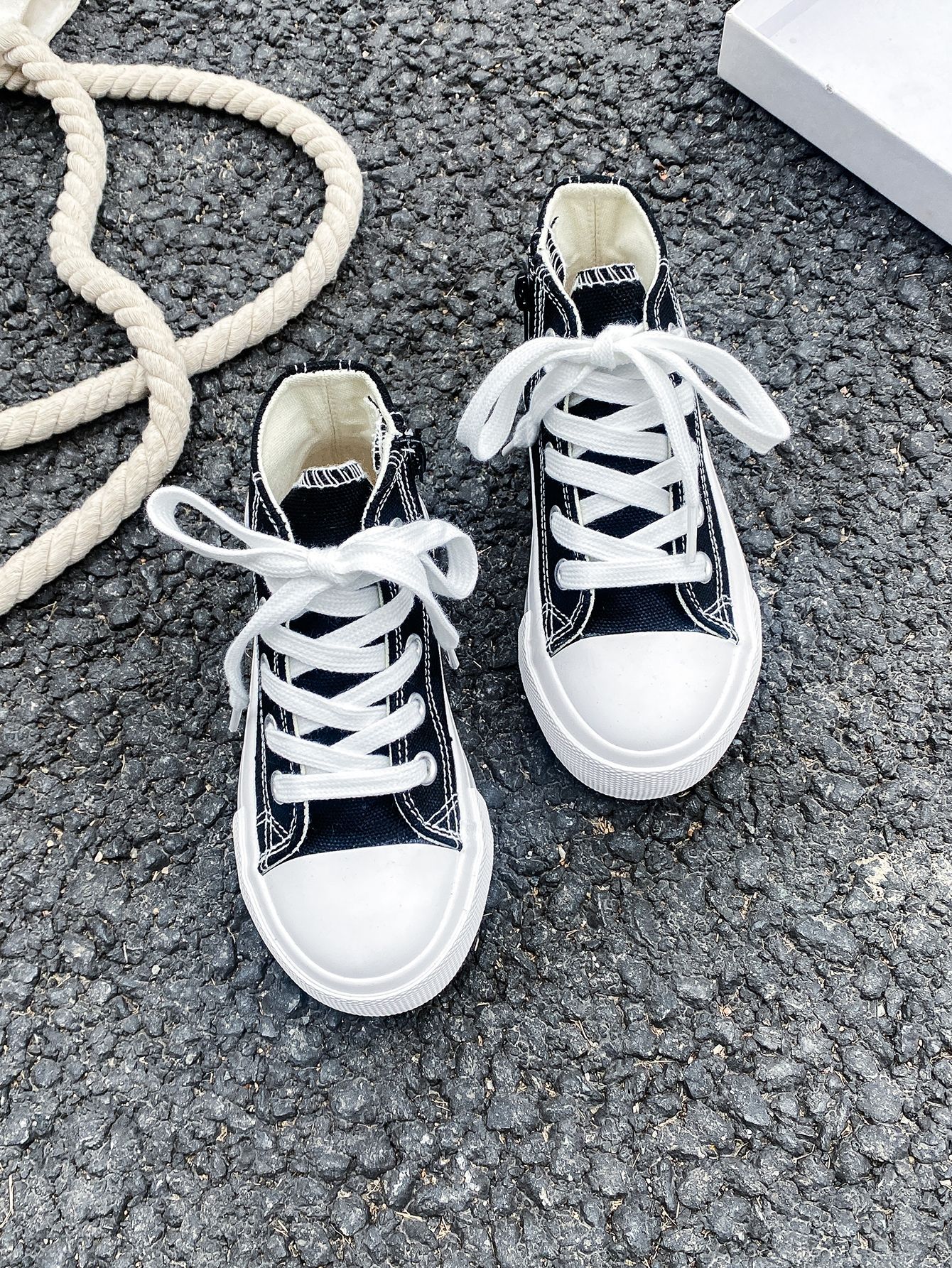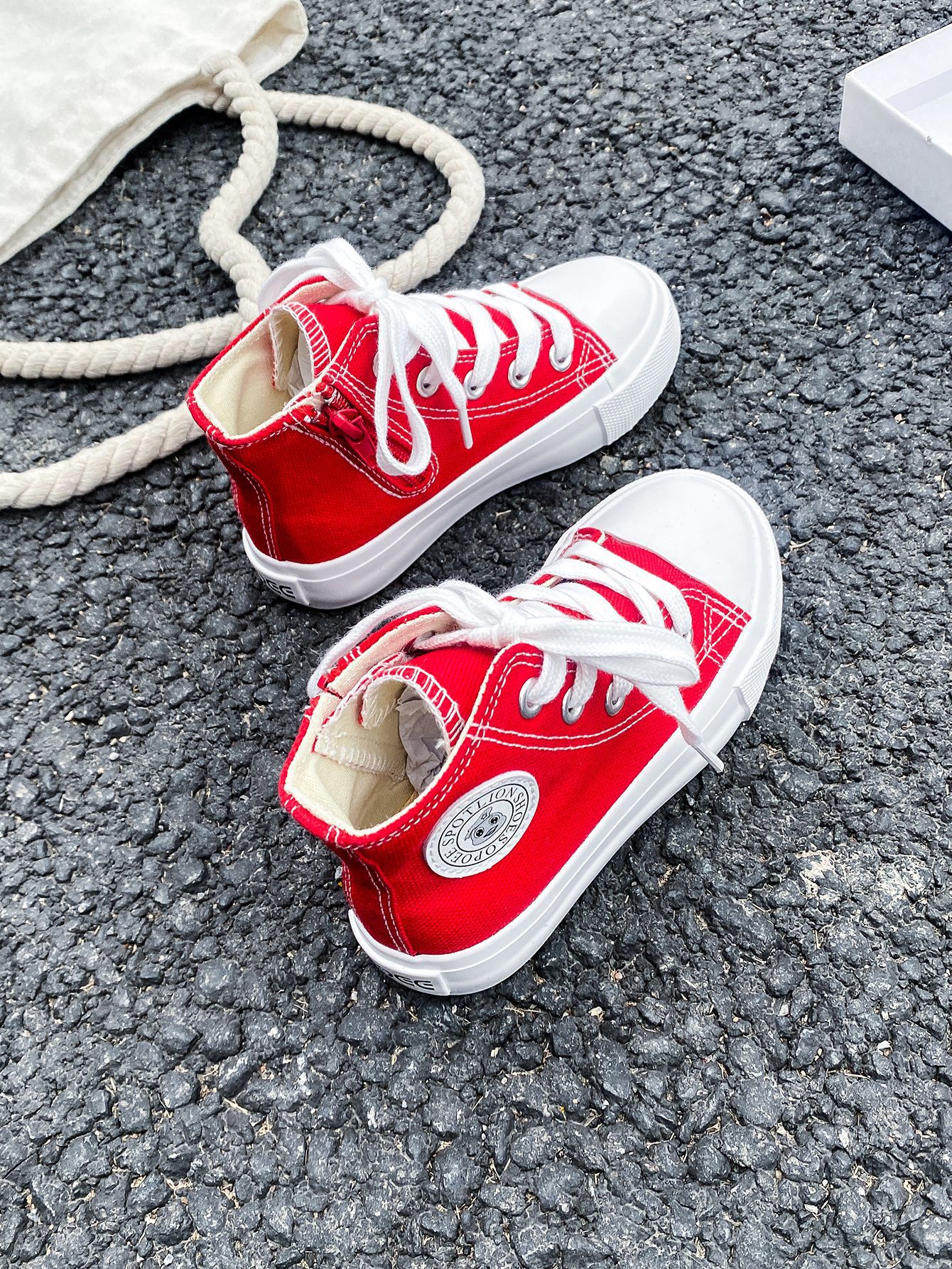 2025 봄 패션 어린이 사이드 지퍼 신발 여자 한국 편안한 캐주얼 신발 소년 하이 캔버스 신발스토어 가기