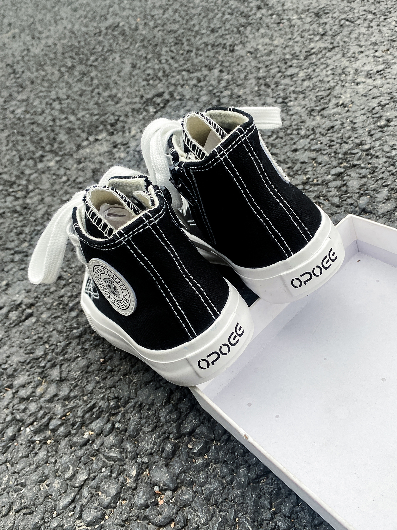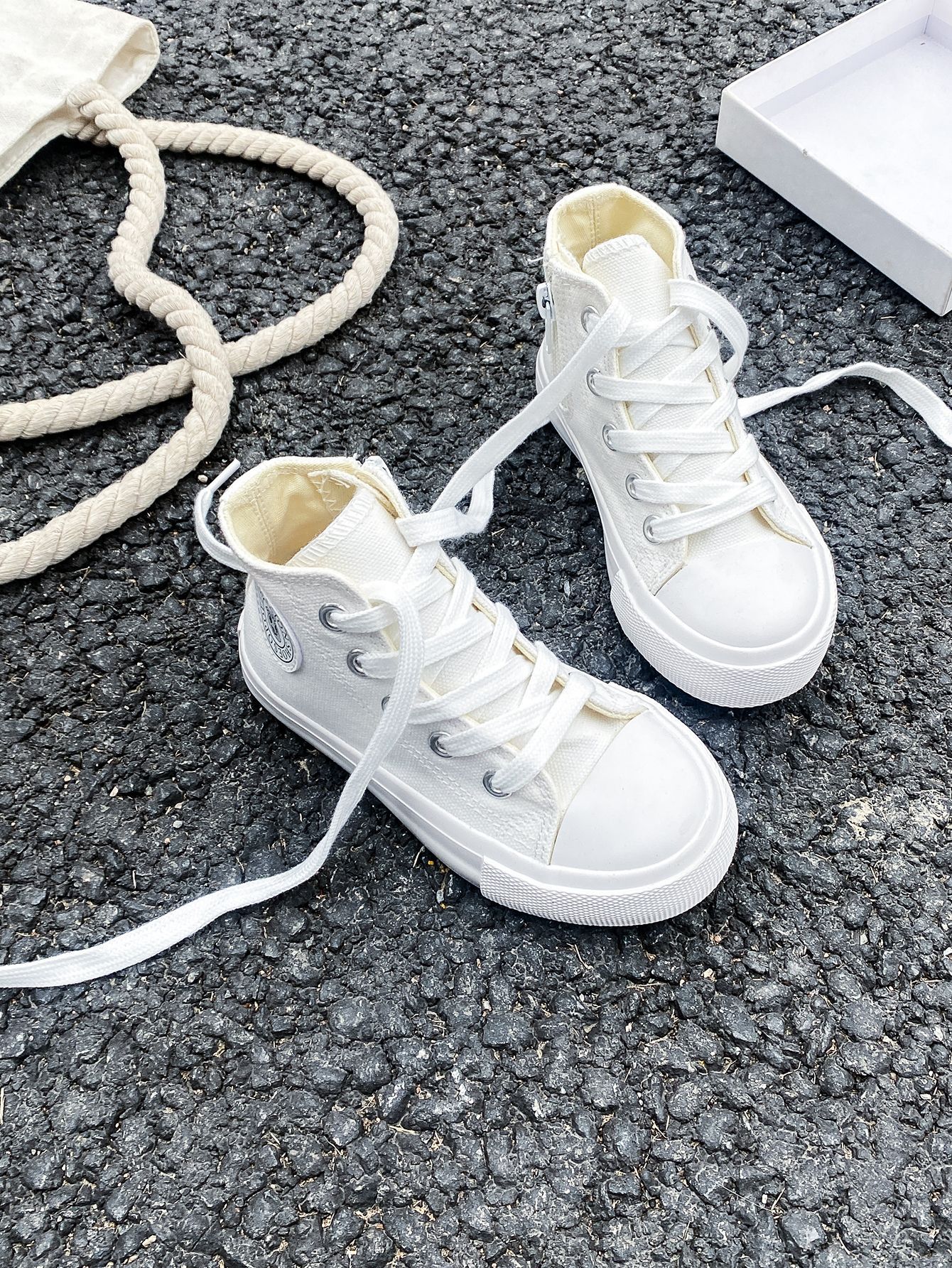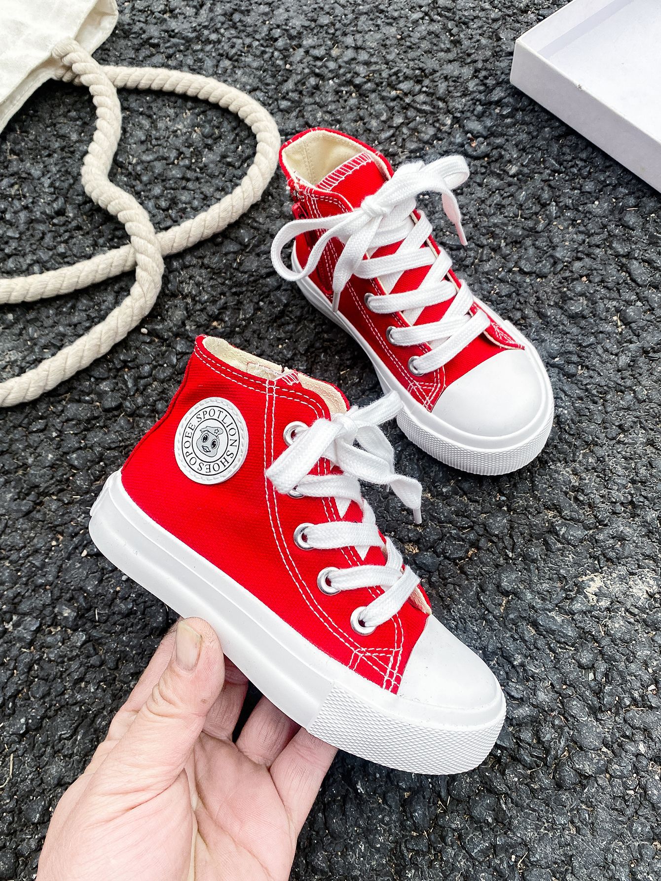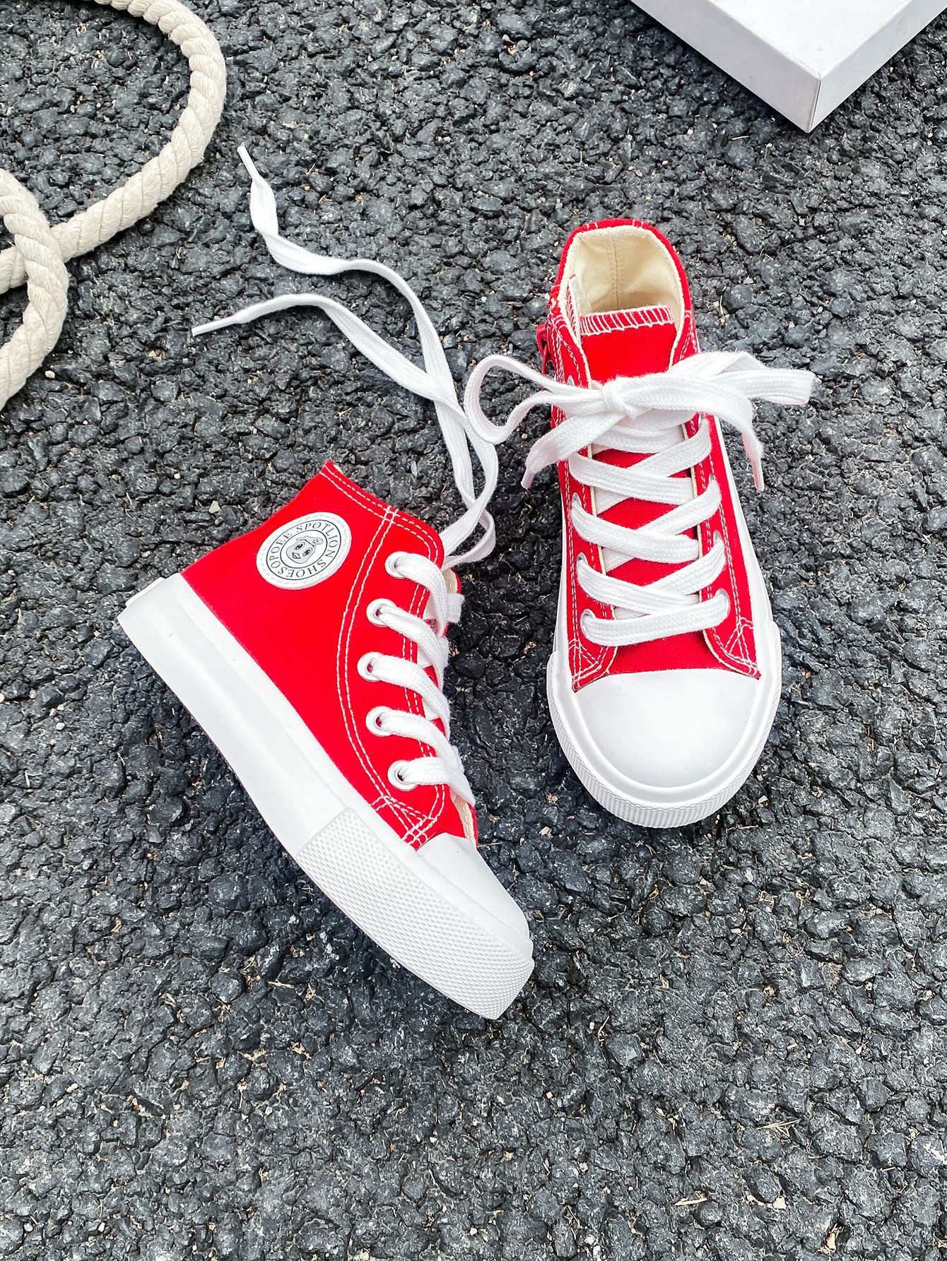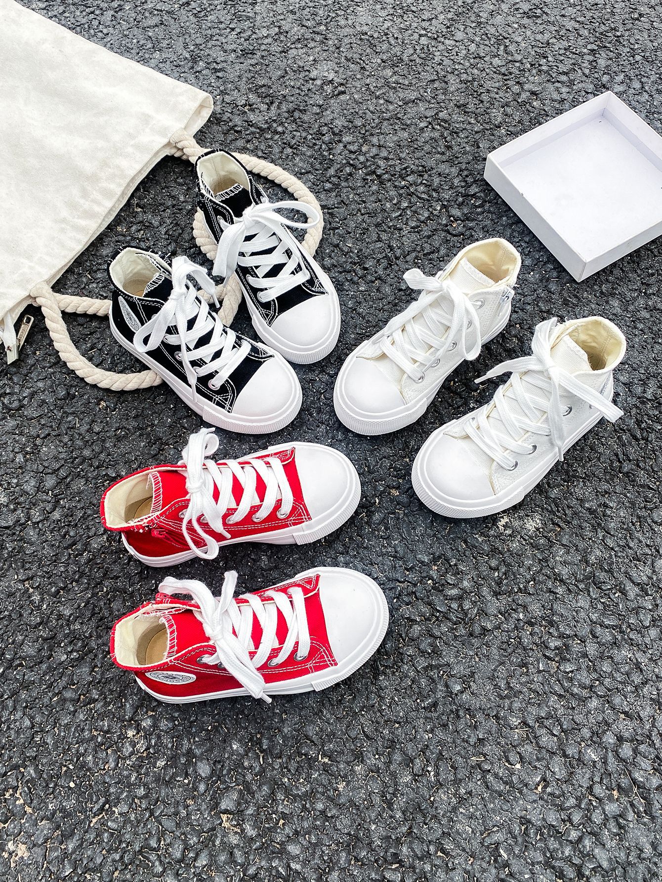 2025 봄 패션 어린이 사이드 지퍼 신발 여자 한국 편안한 캐주얼 신발 소년 하이 캔버스 신발스토어 가기